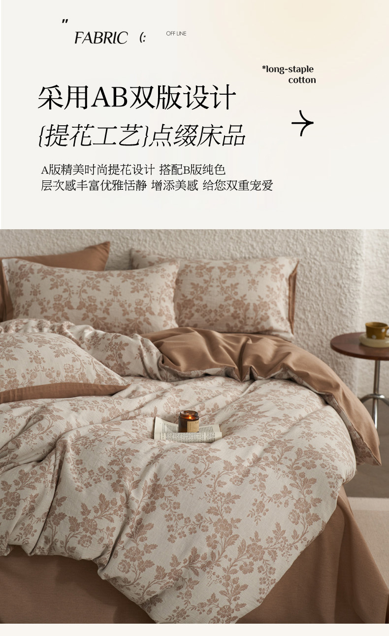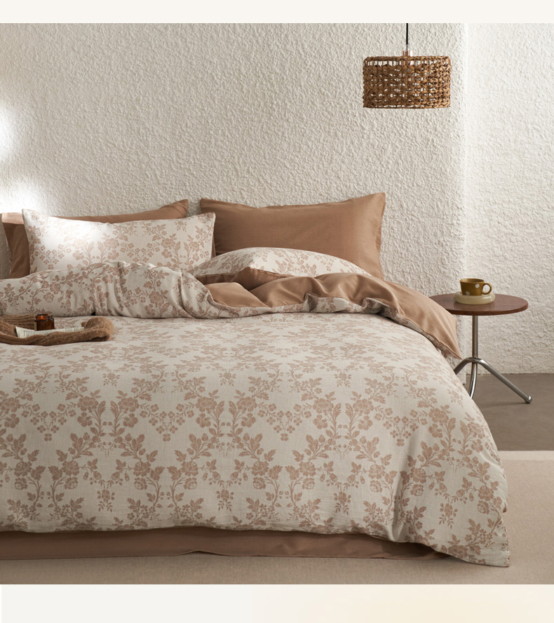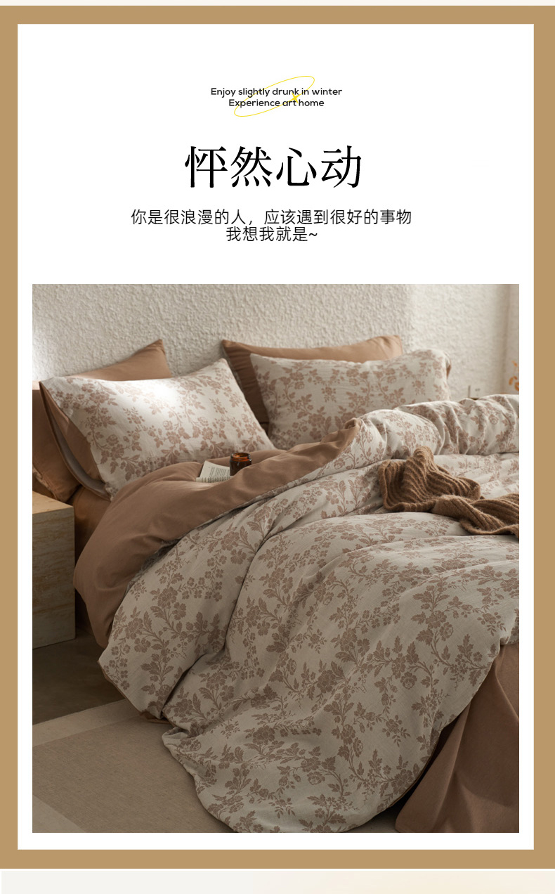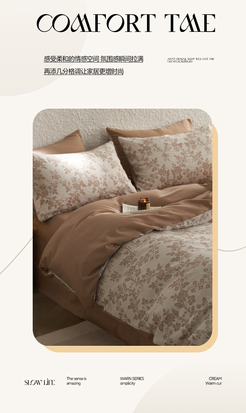 当前位置: 91家纺网 > 商品网购 > 床品套件 > 四件套 > 普通磨毛四件套 > 慕尚家纺 2025新款磨毛提花双层纱四件套 清雅咖