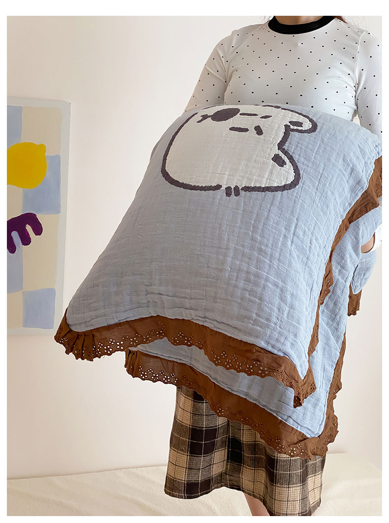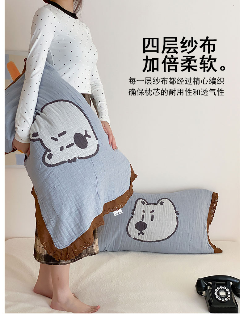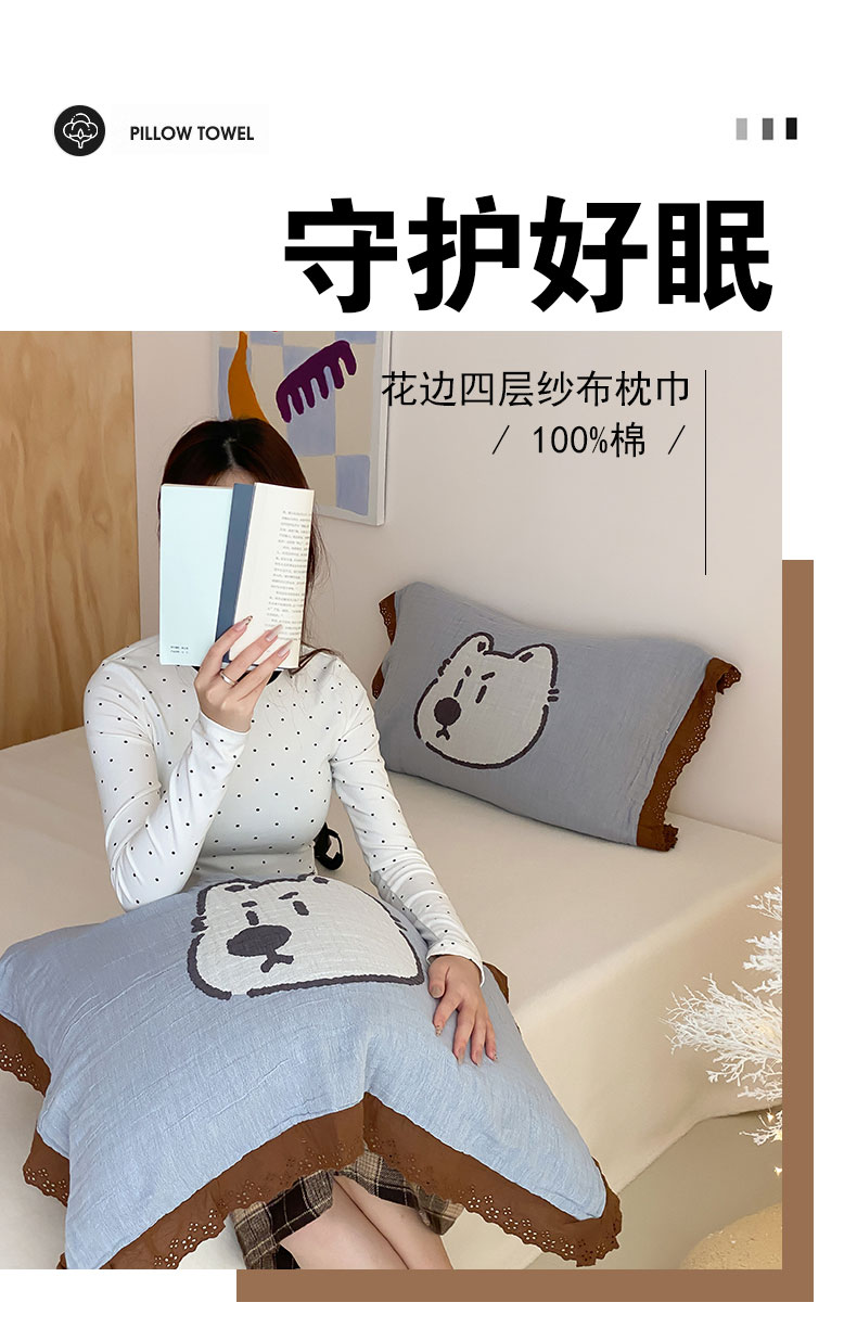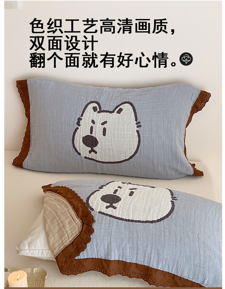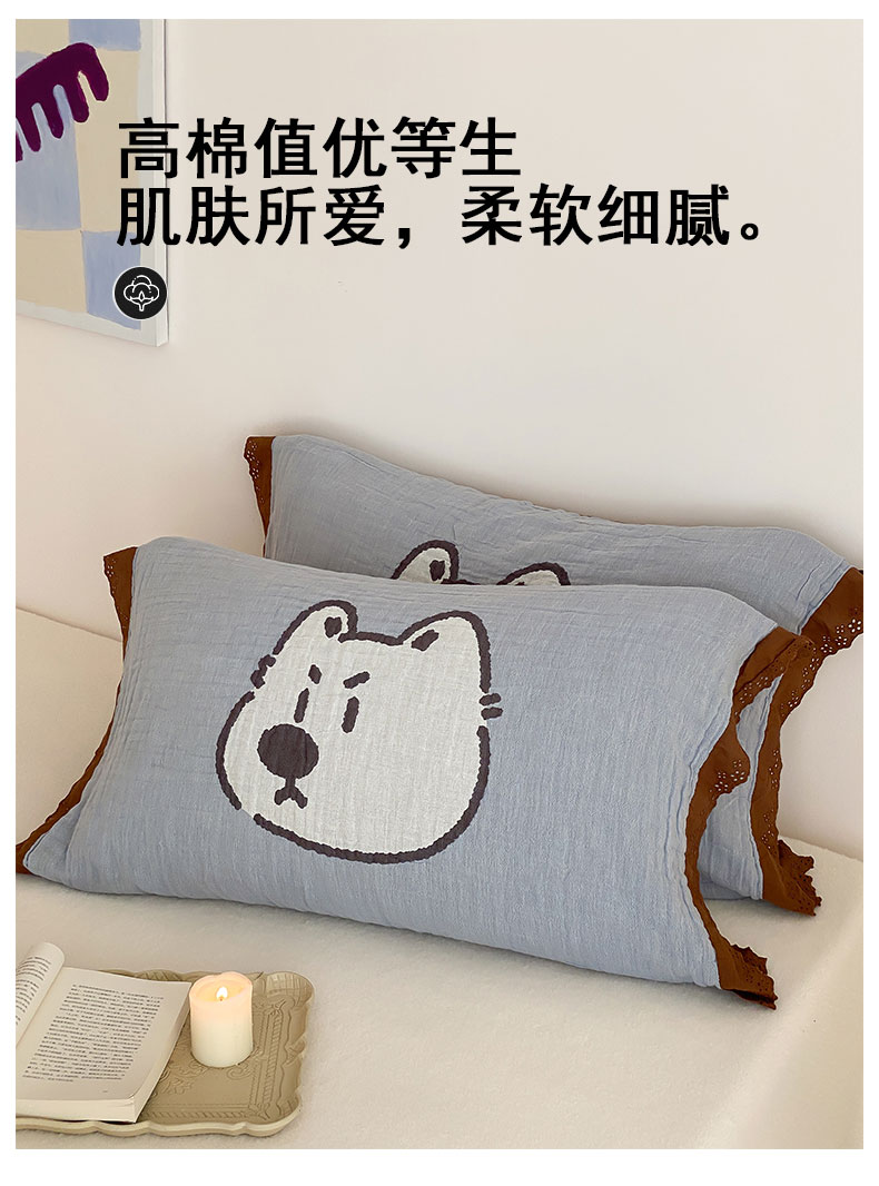 当前位置: 91家纺网 > 商品网购 > 床上用品 > 枕巾 > 麻依 2024新款纯棉花边款四层纱布枕巾一对装55*80cm 小奶狗