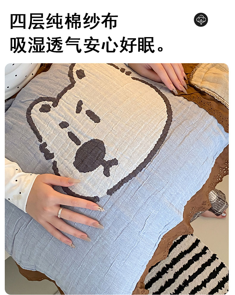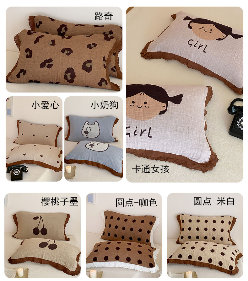(总)麻依 2025新款安心棉枕巾四层全棉纱布枕头皮,布朗兔,彩虹点点,点点蝴蝶结-粉,点点蝴蝶结-米白,搞怪猫,韩系小樱桃,焦糖草莓,兰溪,漫语,木栖,天猫精灵,小波点,组合图