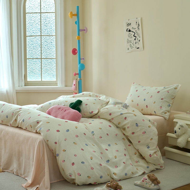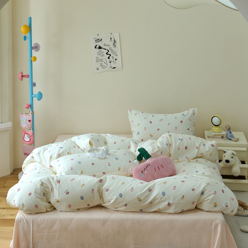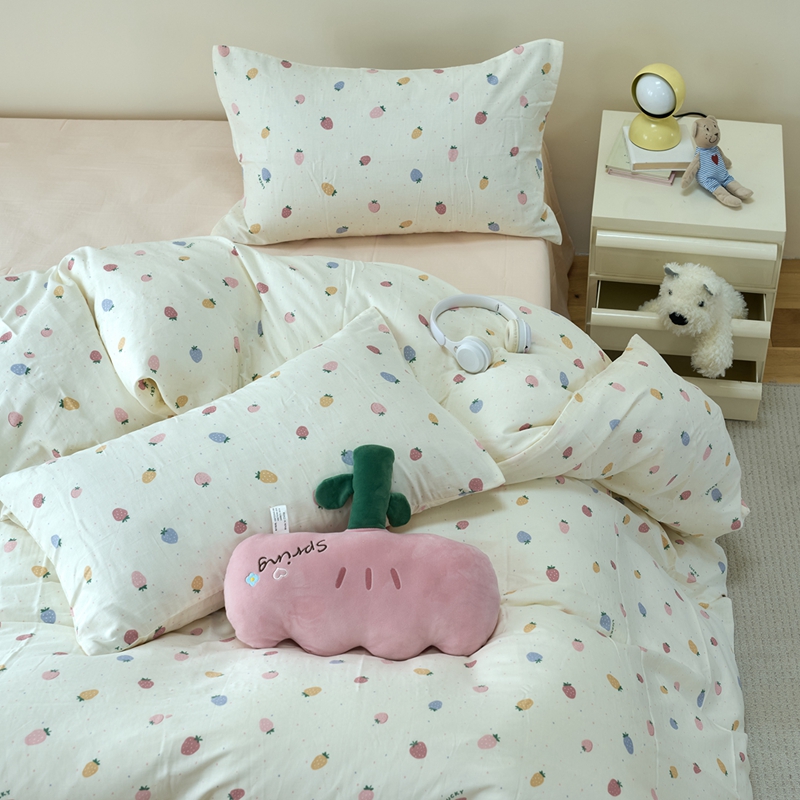 洋铭区(原狠狠爱) 2024新款无边全棉双层纱四件套 甜美草莓