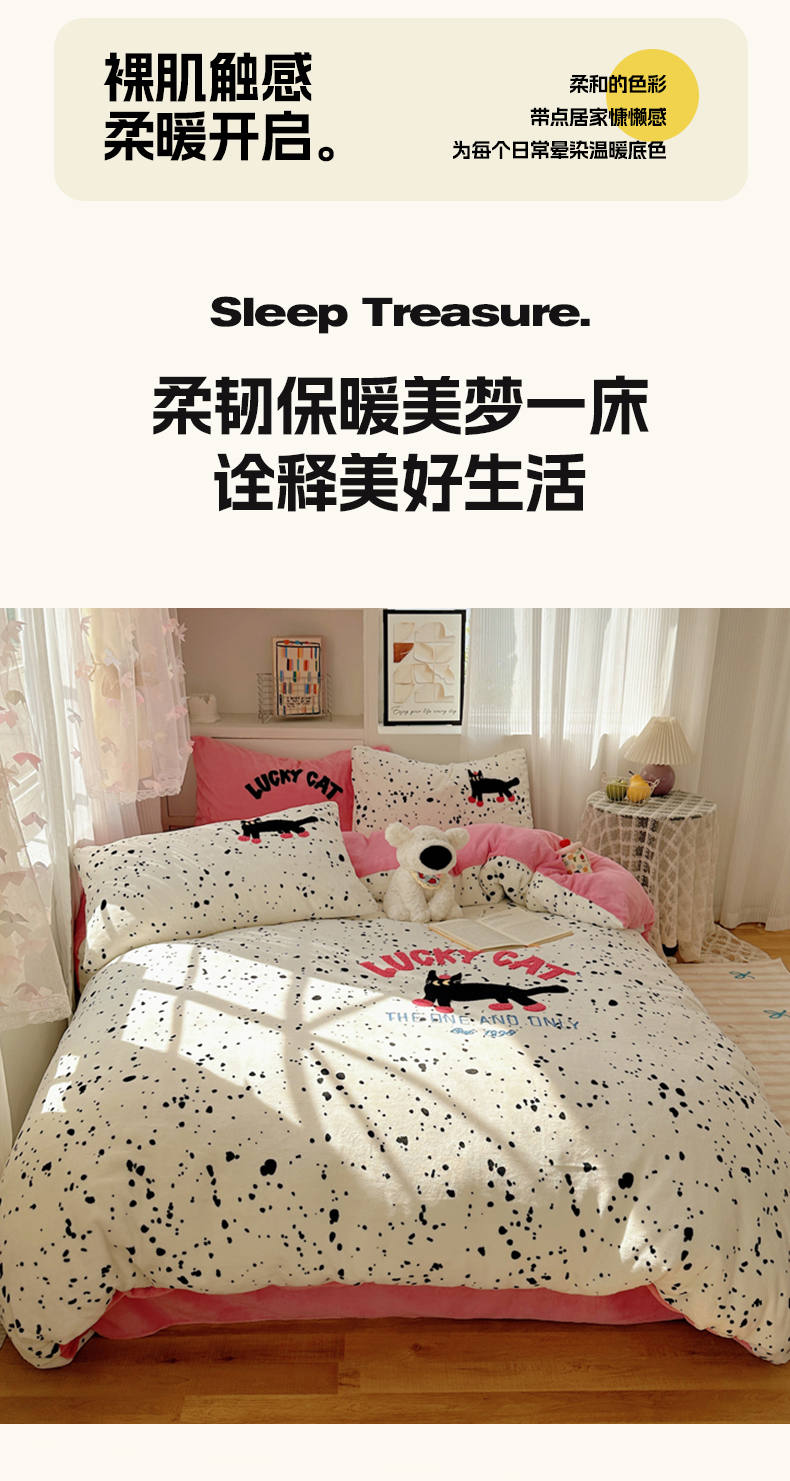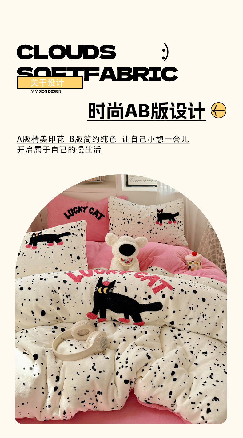当前位置: 91家纺网 > 商品网购 > 床品套件 > 四件套 > 牛奶绒四件套 > 繁花家居 2024新款卡通牛奶绒毛巾绣系列四件套 点点酷夜猫