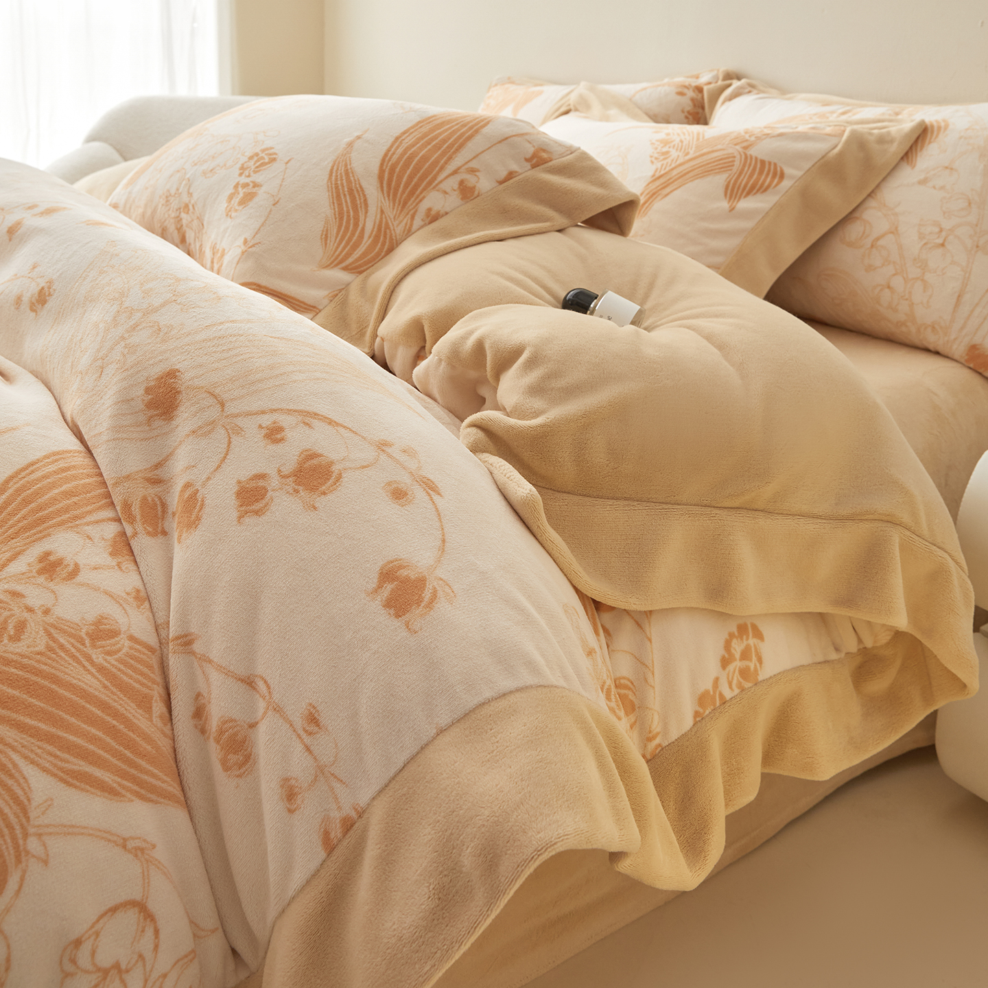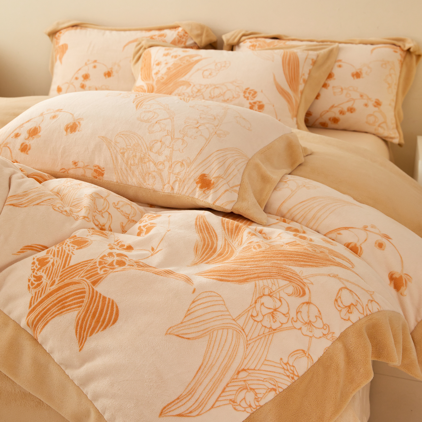商品名称:新方向 2025新款高克重240克A类全消光印花牛奶绒四件套-铃兰 铃兰-香槟