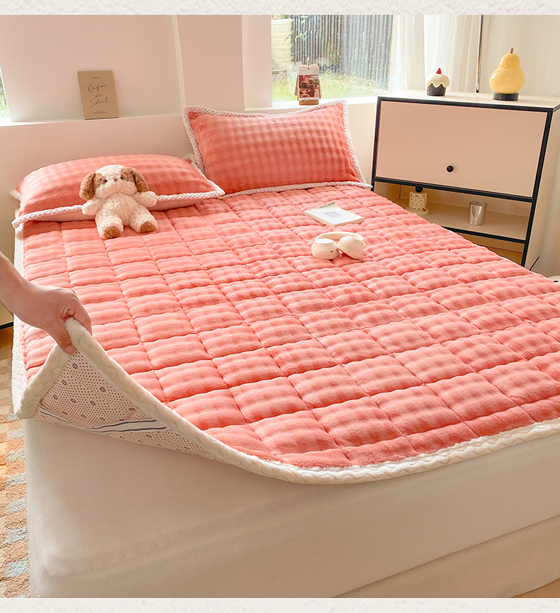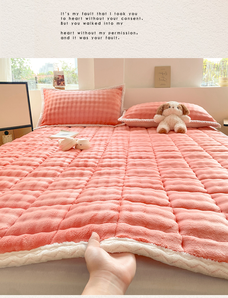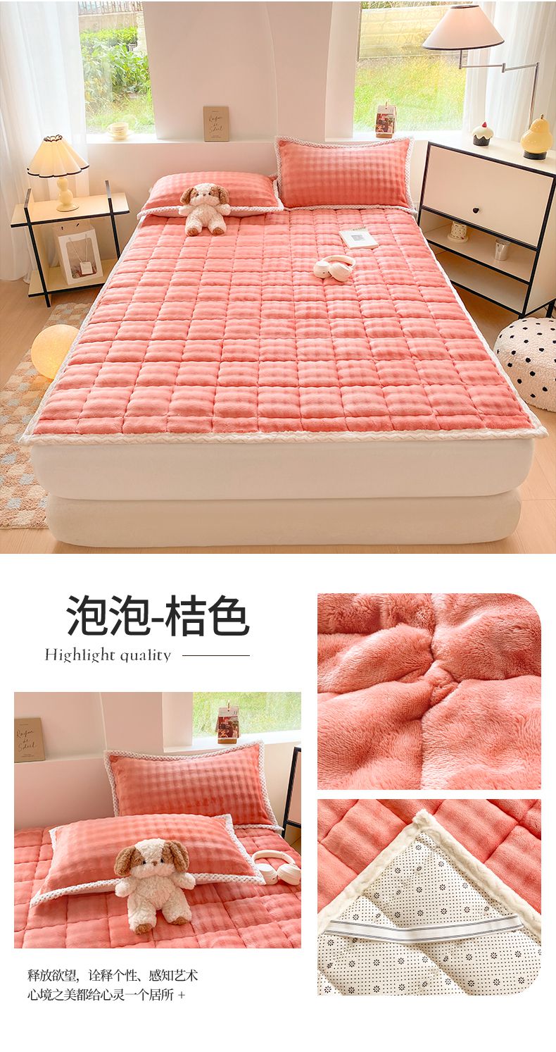 • 91家纺网 家纺一手货源 找家纺 东宇床垫 2024新款A类牛奶绒-泡泡绒夹棉床褥 泡泡-桔色