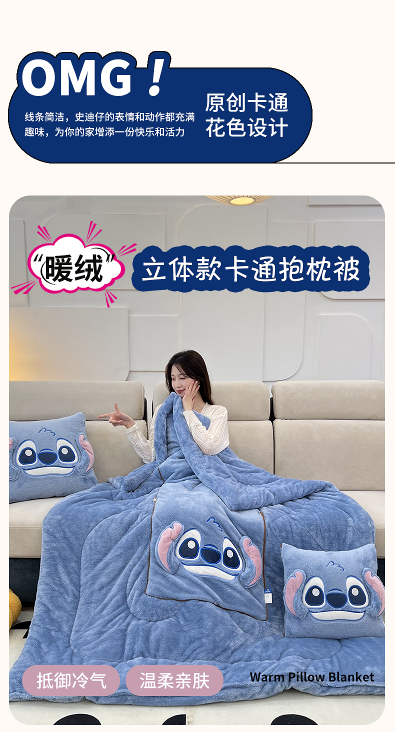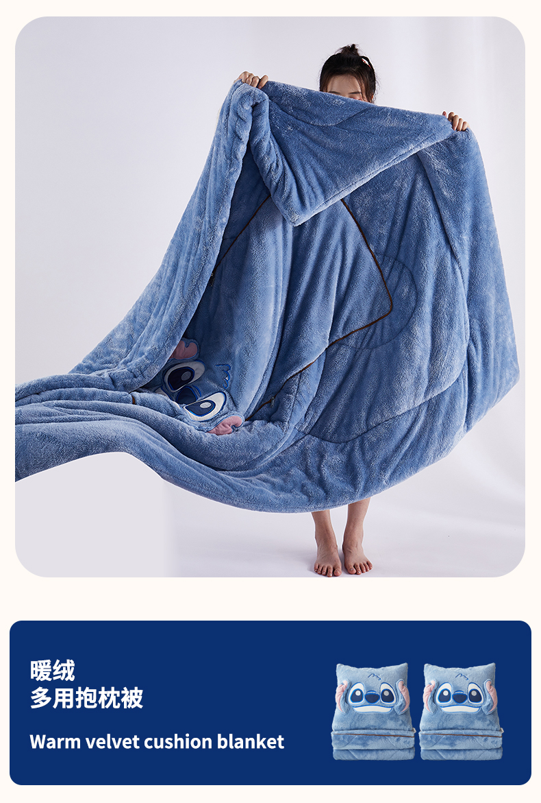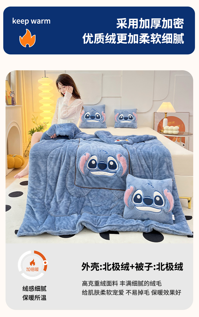商品名称:古本家居 2024新款北极绒立体卡通刺绣抱枕被 蓝仔仔