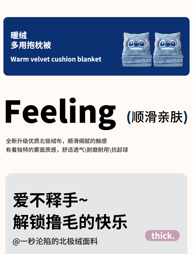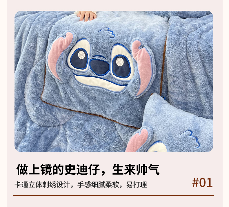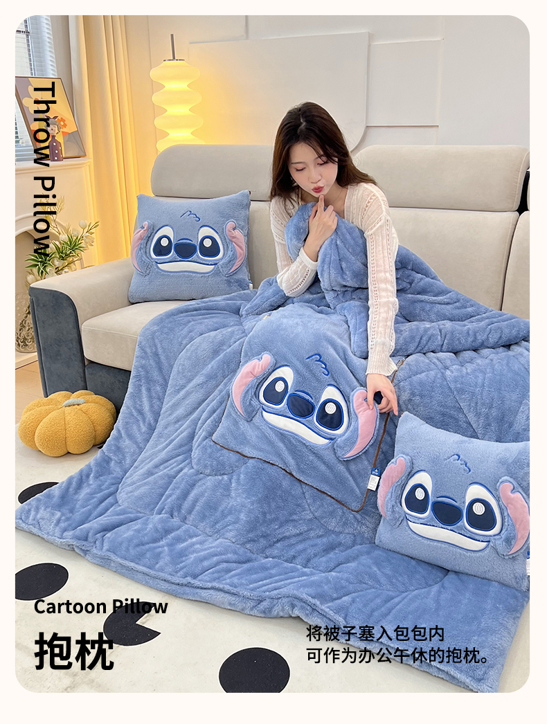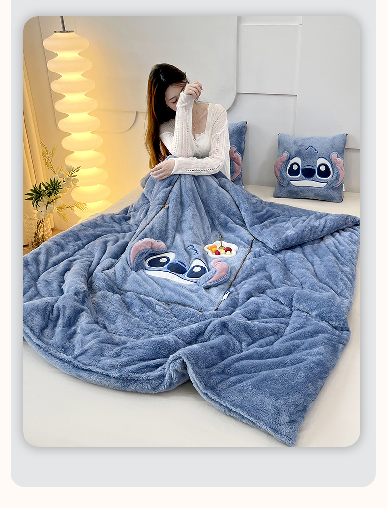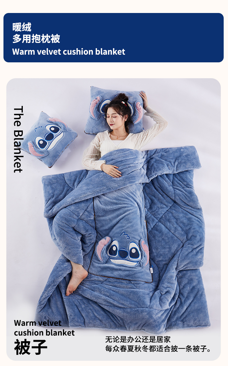 商品名称:古本家居 2024新款北极绒立体卡通刺绣抱枕被 蓝仔仔