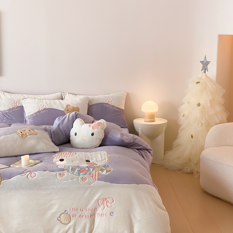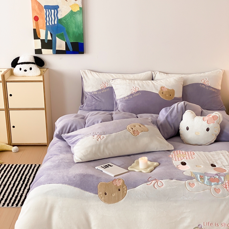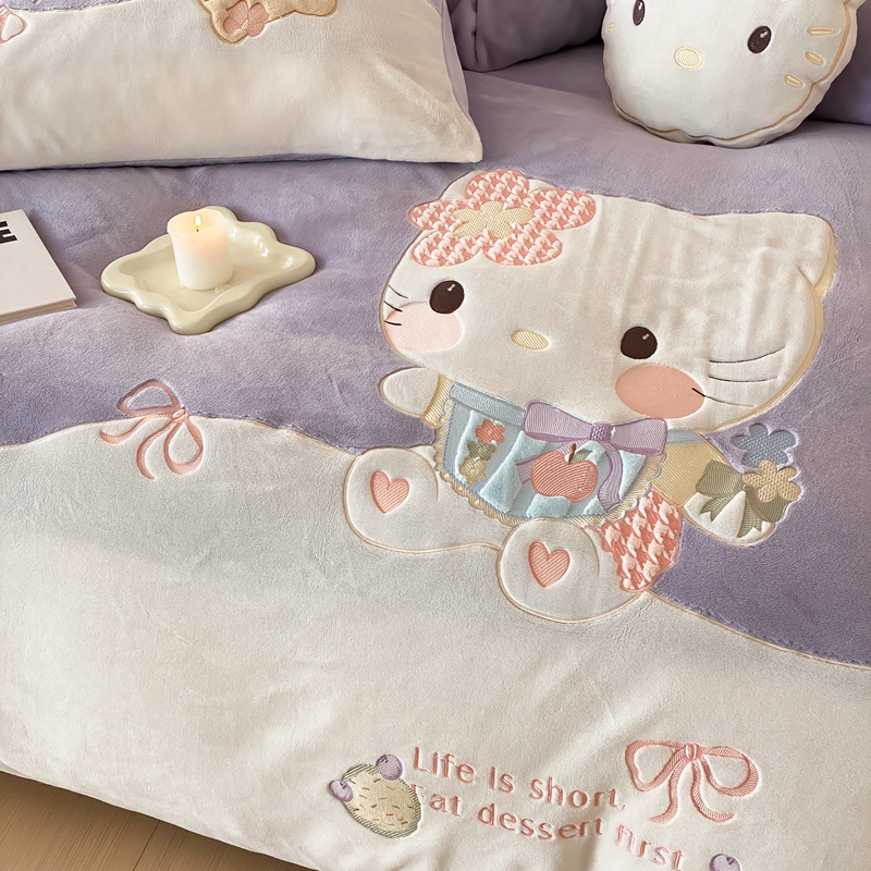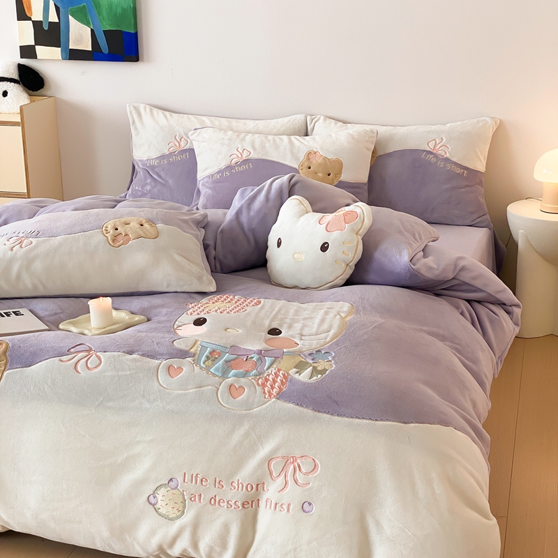 朗莎家纺 2024新款230g高克重贴布绣牛奶绒四件套 kt猫