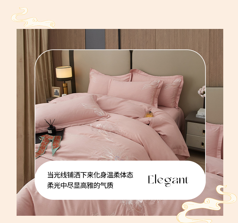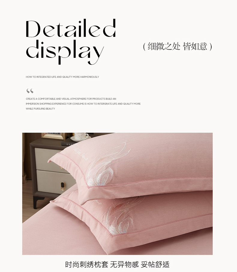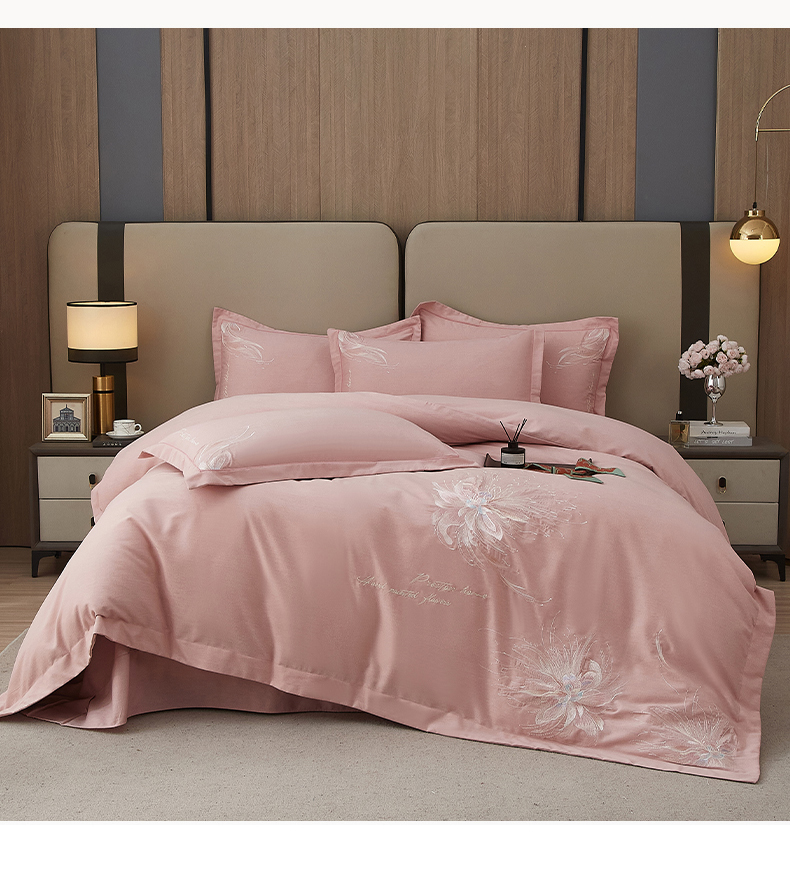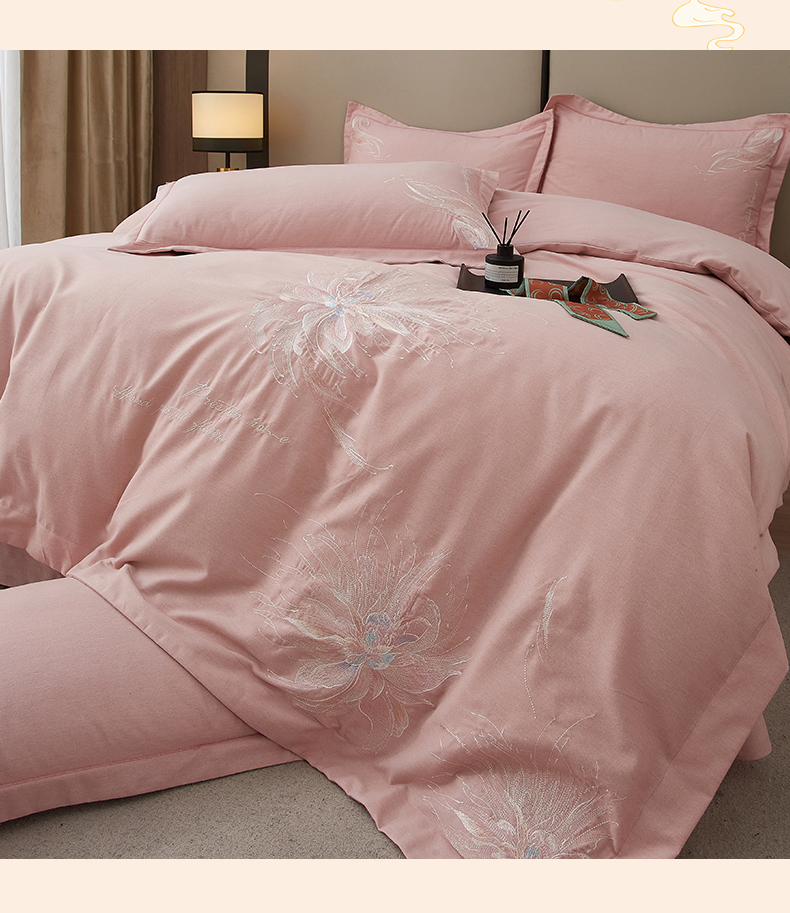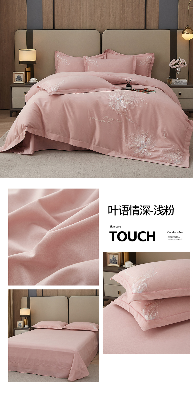 商品名称:金纱玉纺家纺 2024新款纯色加厚绣花工艺四件套 叶语情深-浅粉