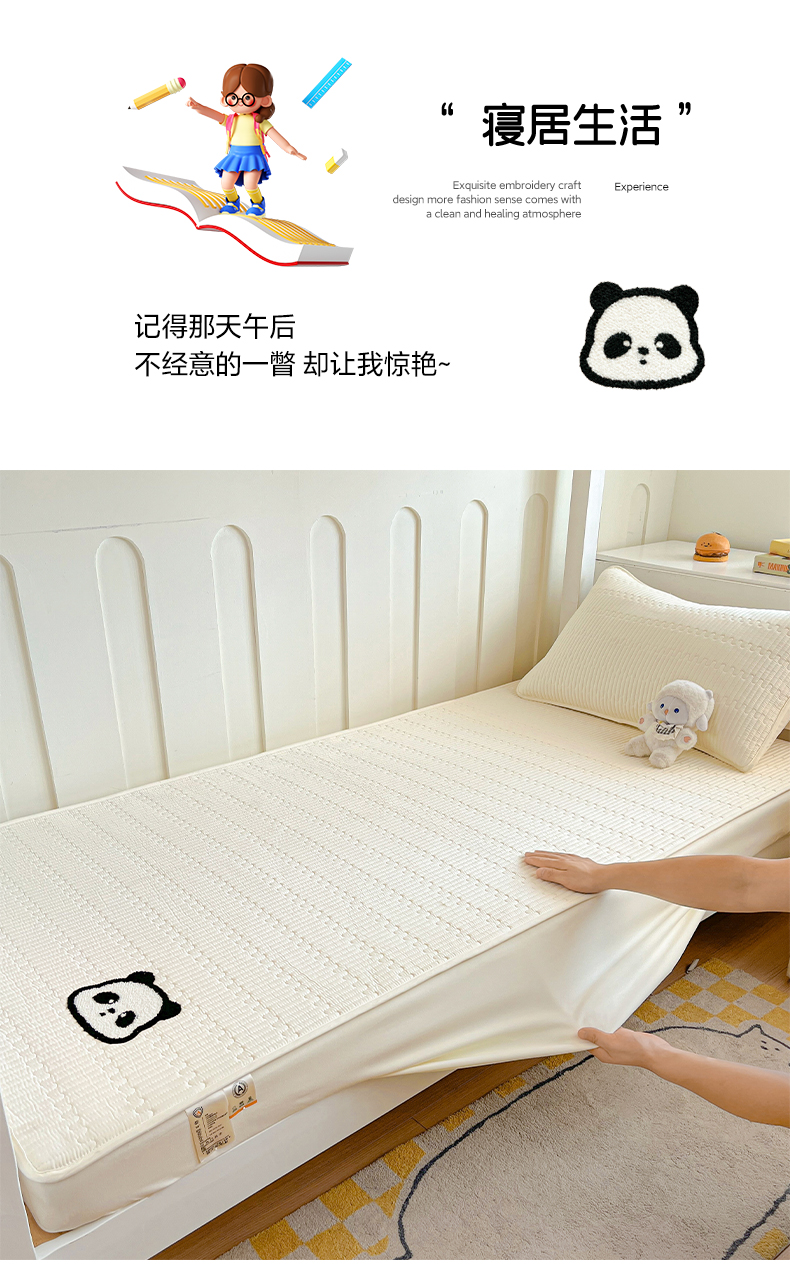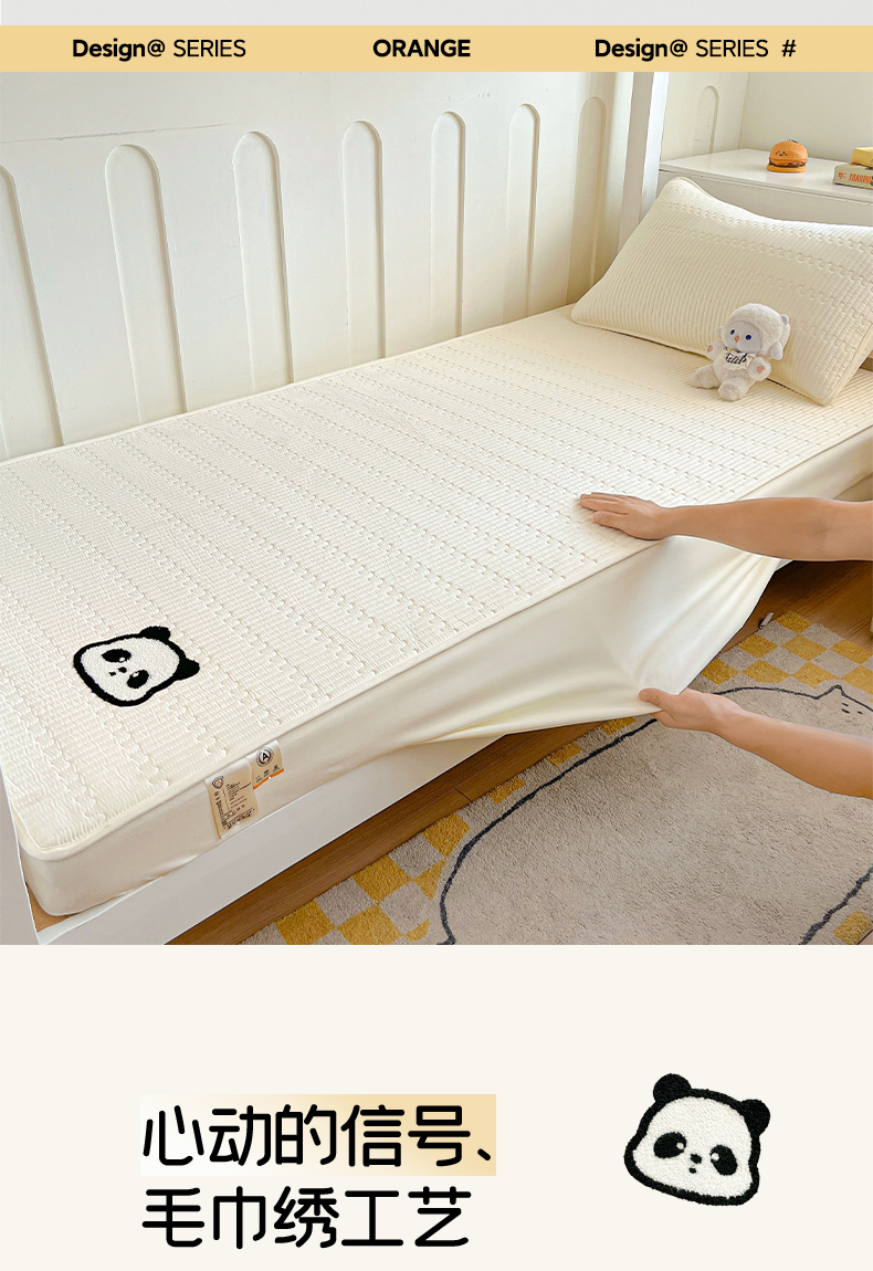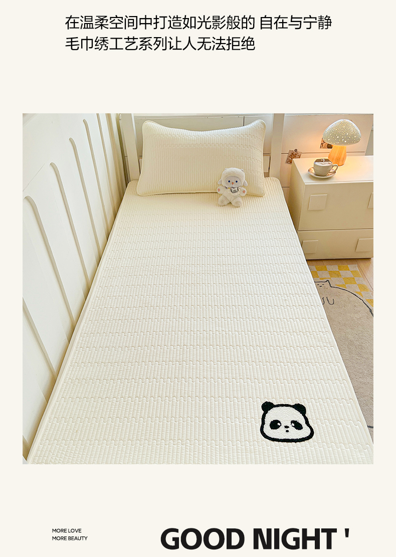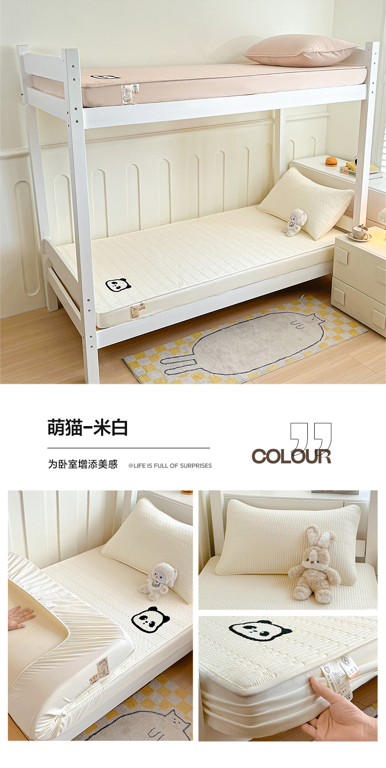 芬晴家纺 2024新款A类母婴级毛巾绣夹棉床笠-萌猫-学生款 萌猫-米白