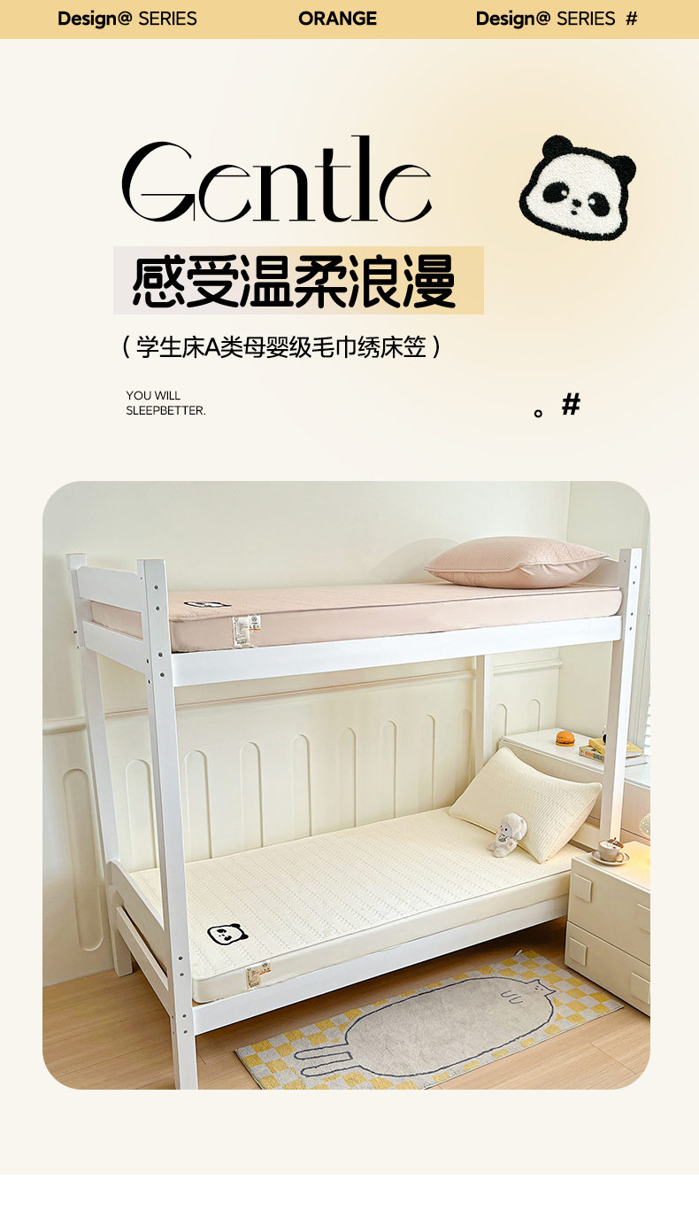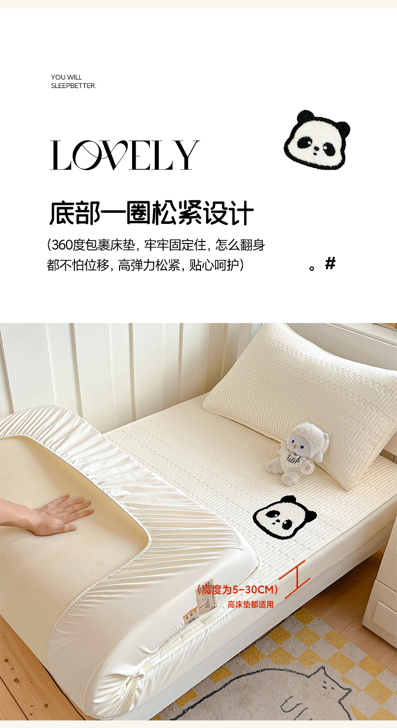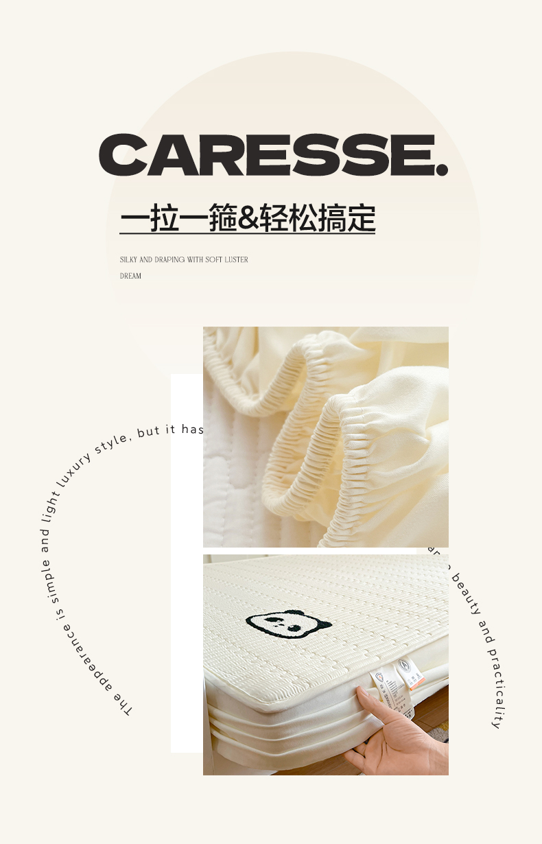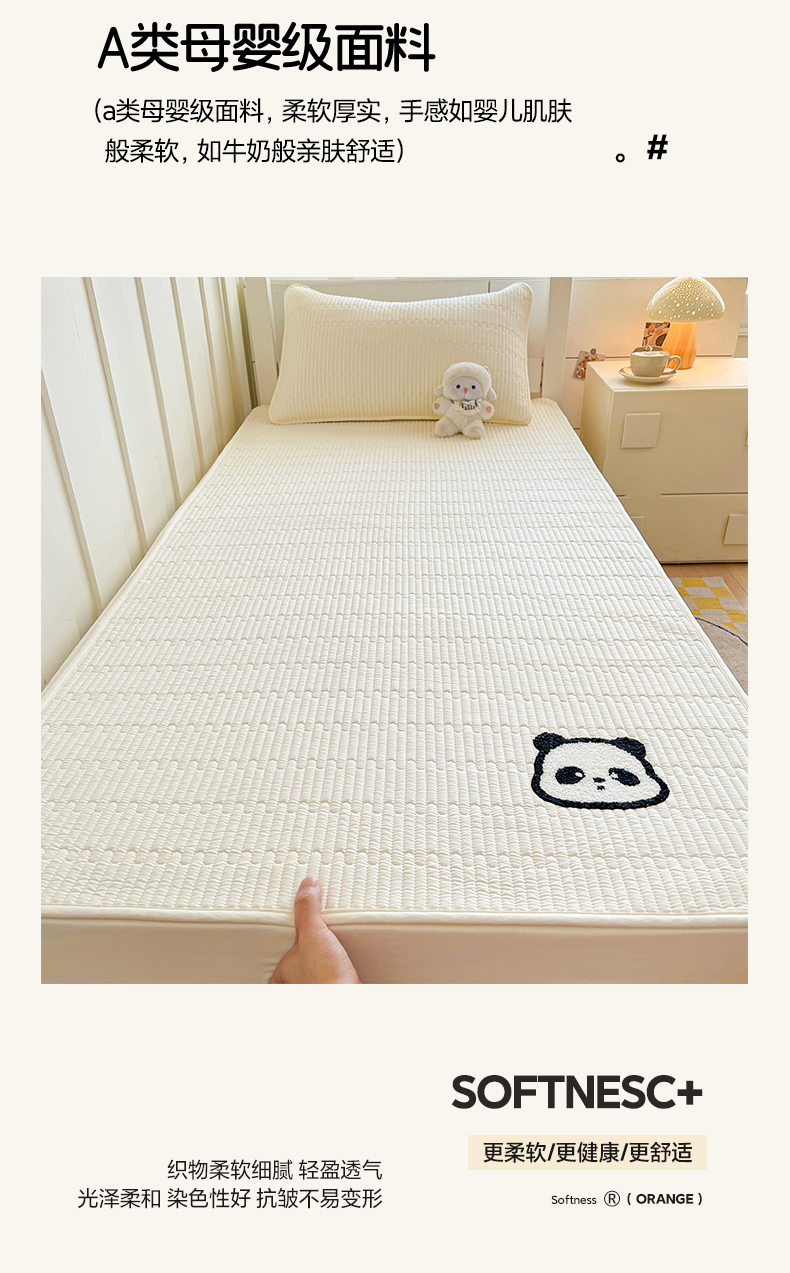 芬晴家纺 2024新款A类母婴级毛巾绣夹棉床笠-萌猫-学生款 萌猫-米白
