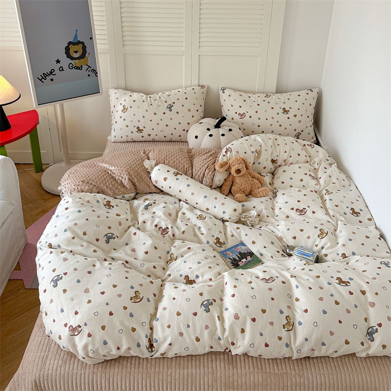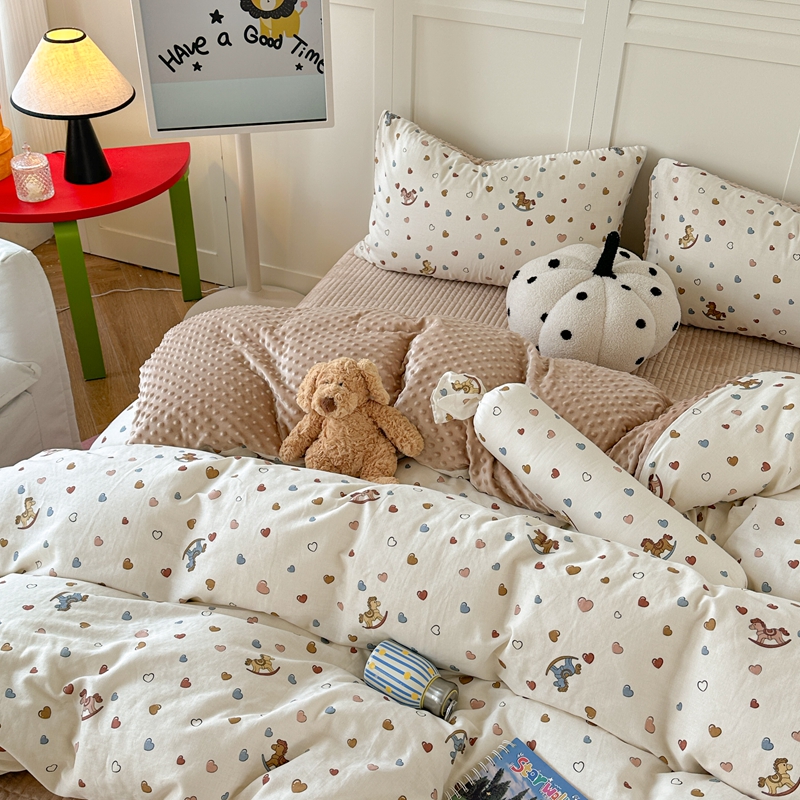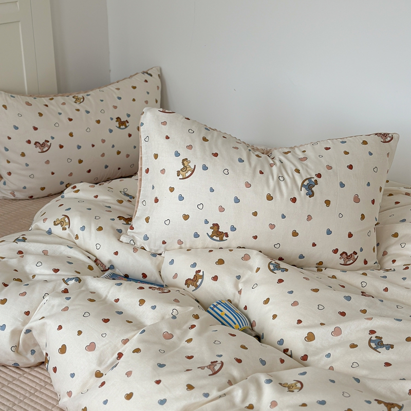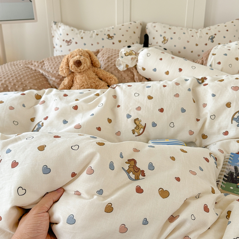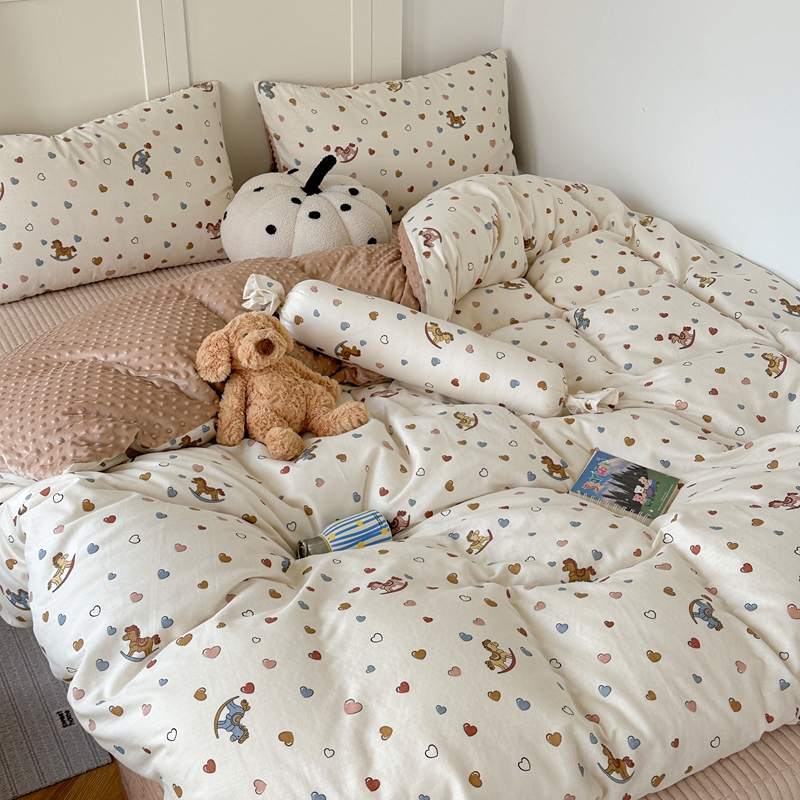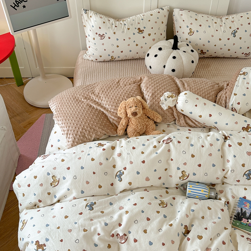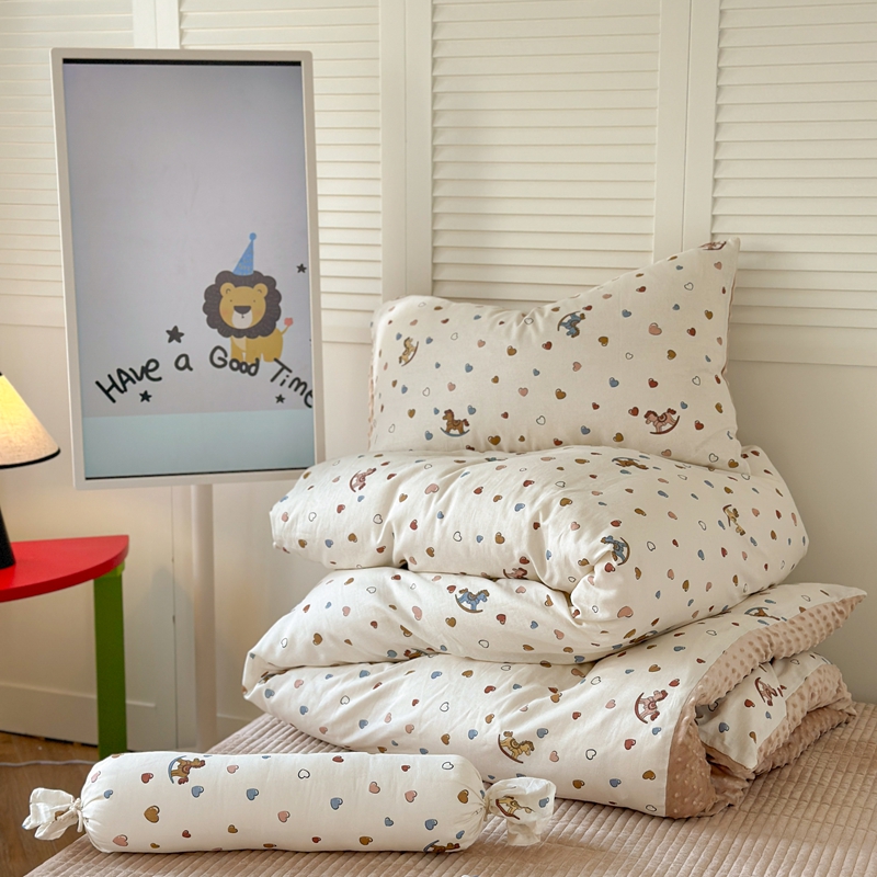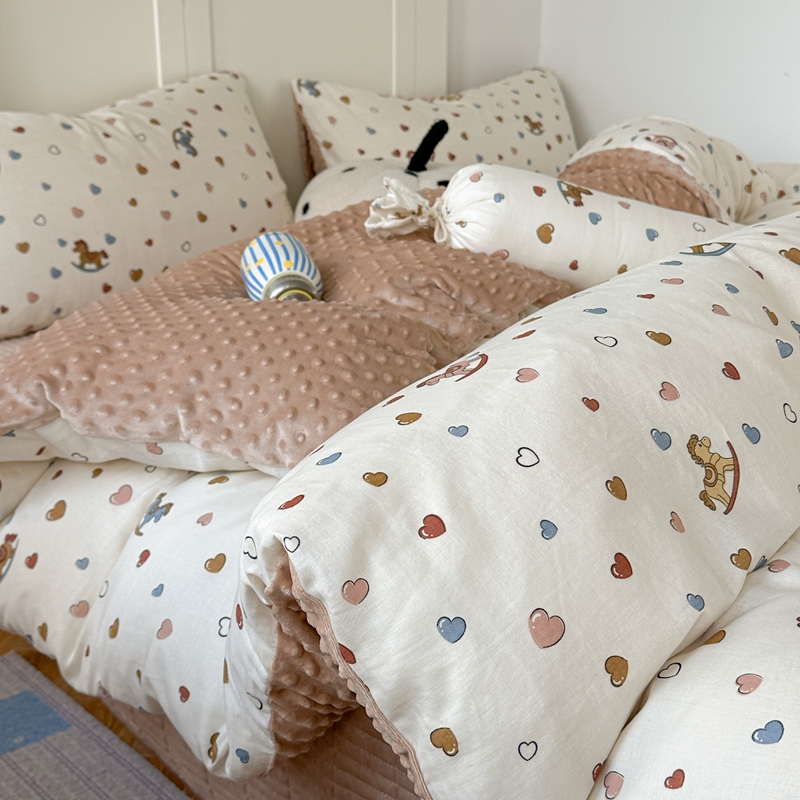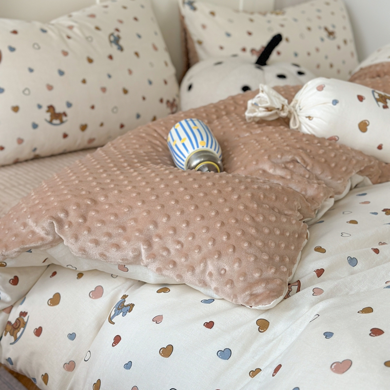 商品名称:柚子YOUTH 2024新款全棉双层纱豆豆婴儿绒床盖四件套 梦幻木马