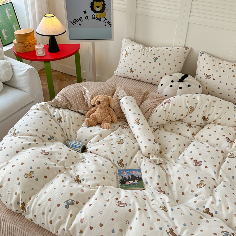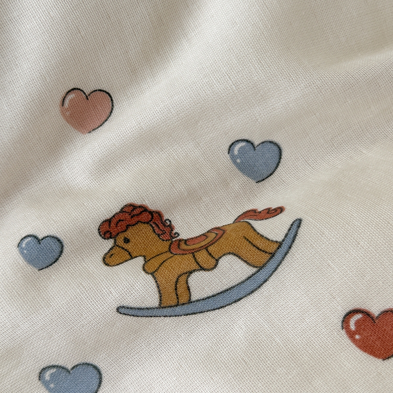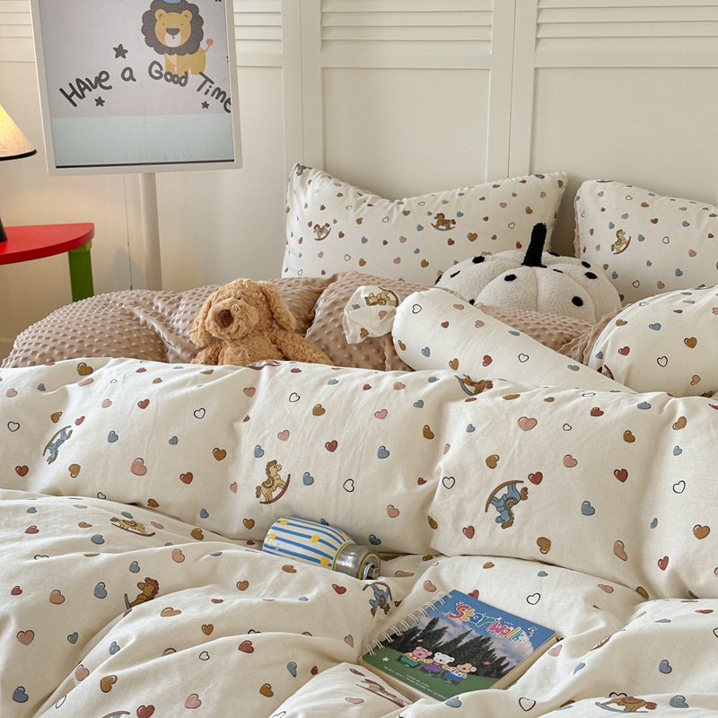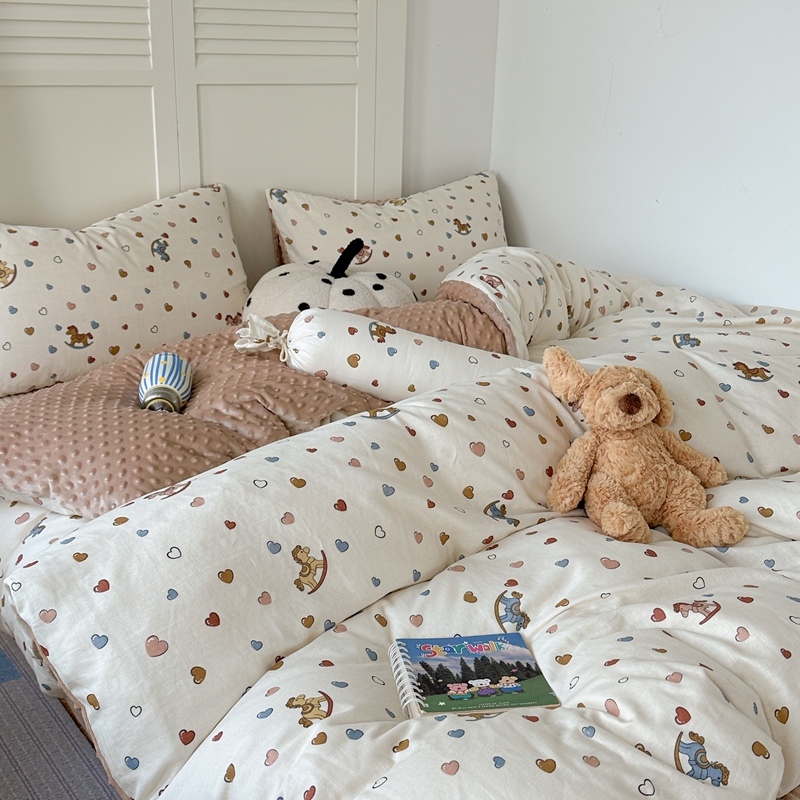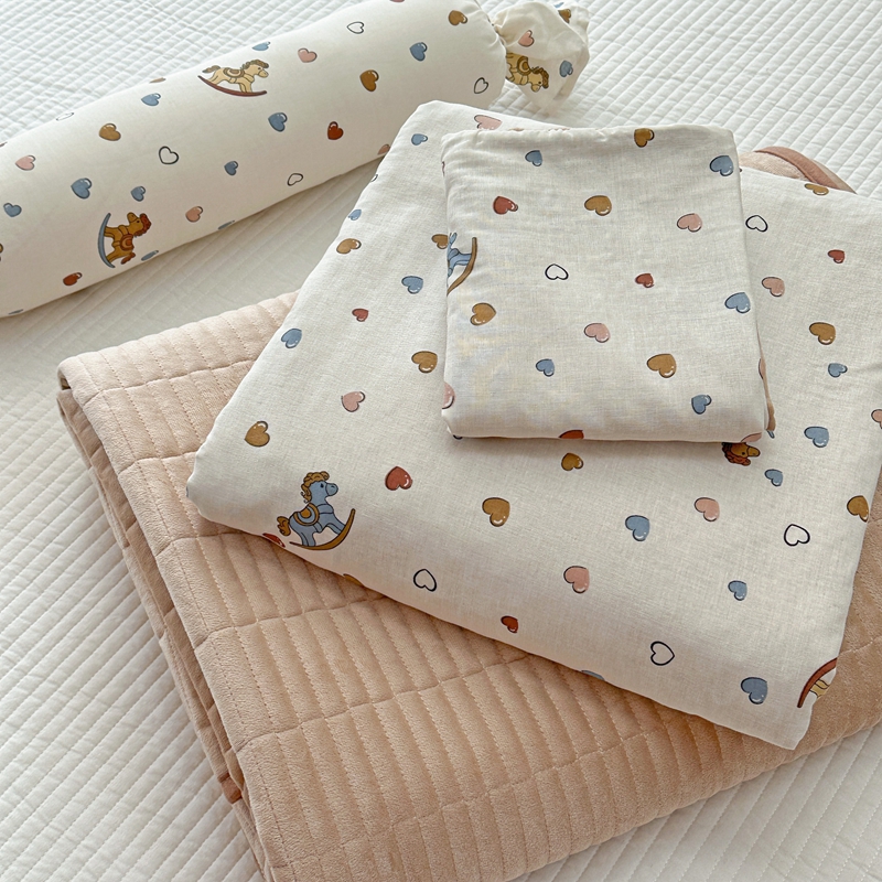 柚子YOUTH 2024新款全棉双层纱豆豆婴儿绒床盖四件套 梦幻木马