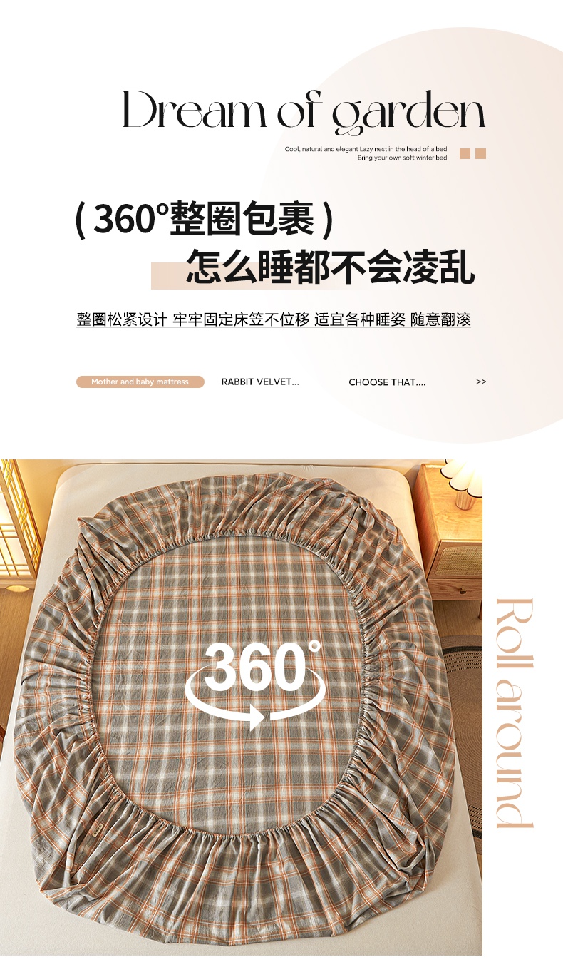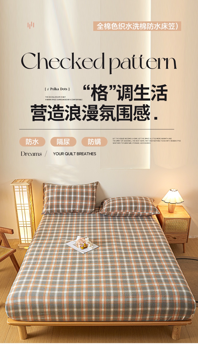 芬晴家纺 2024新款全棉色织防水床笠大床款 防水-洛卡