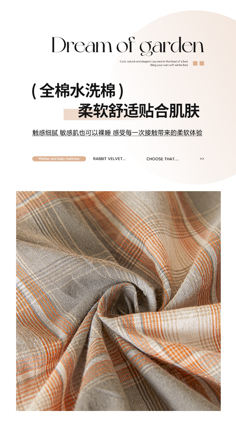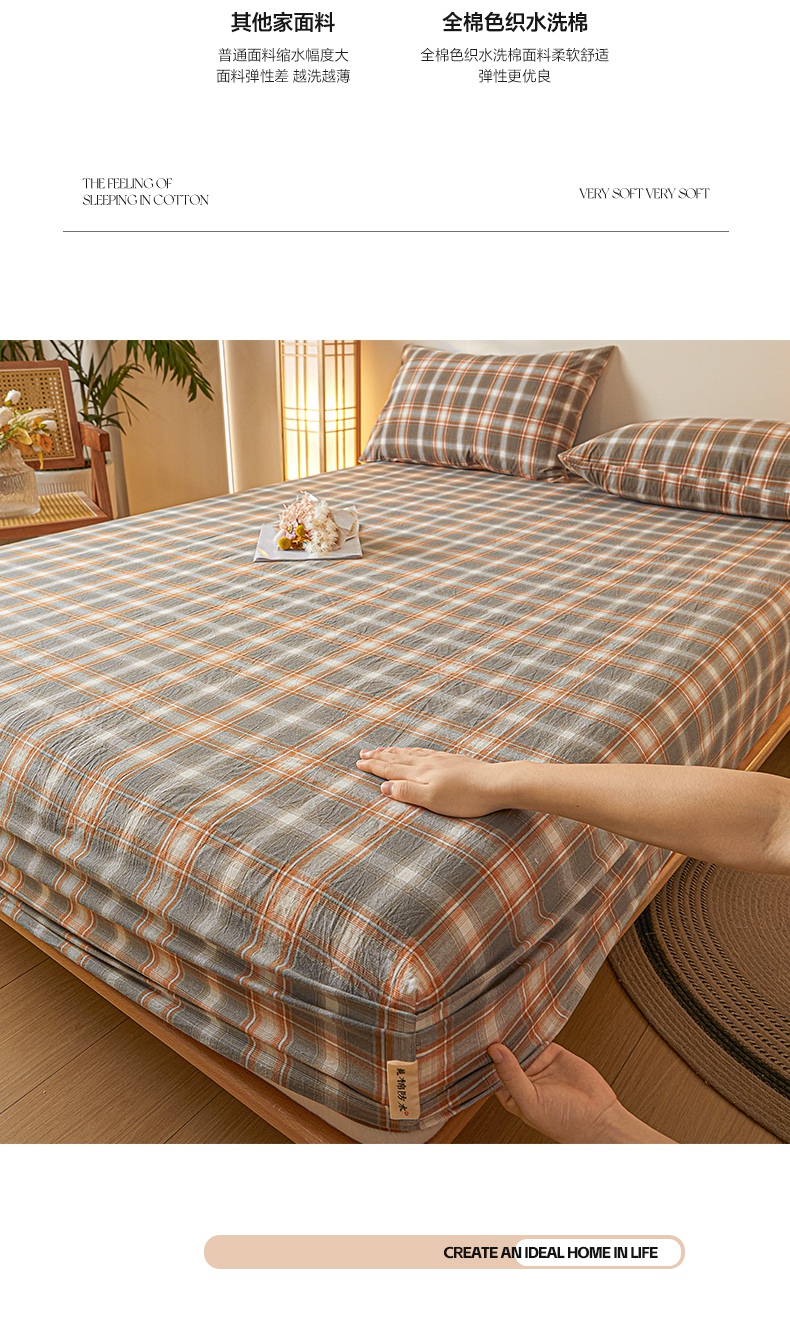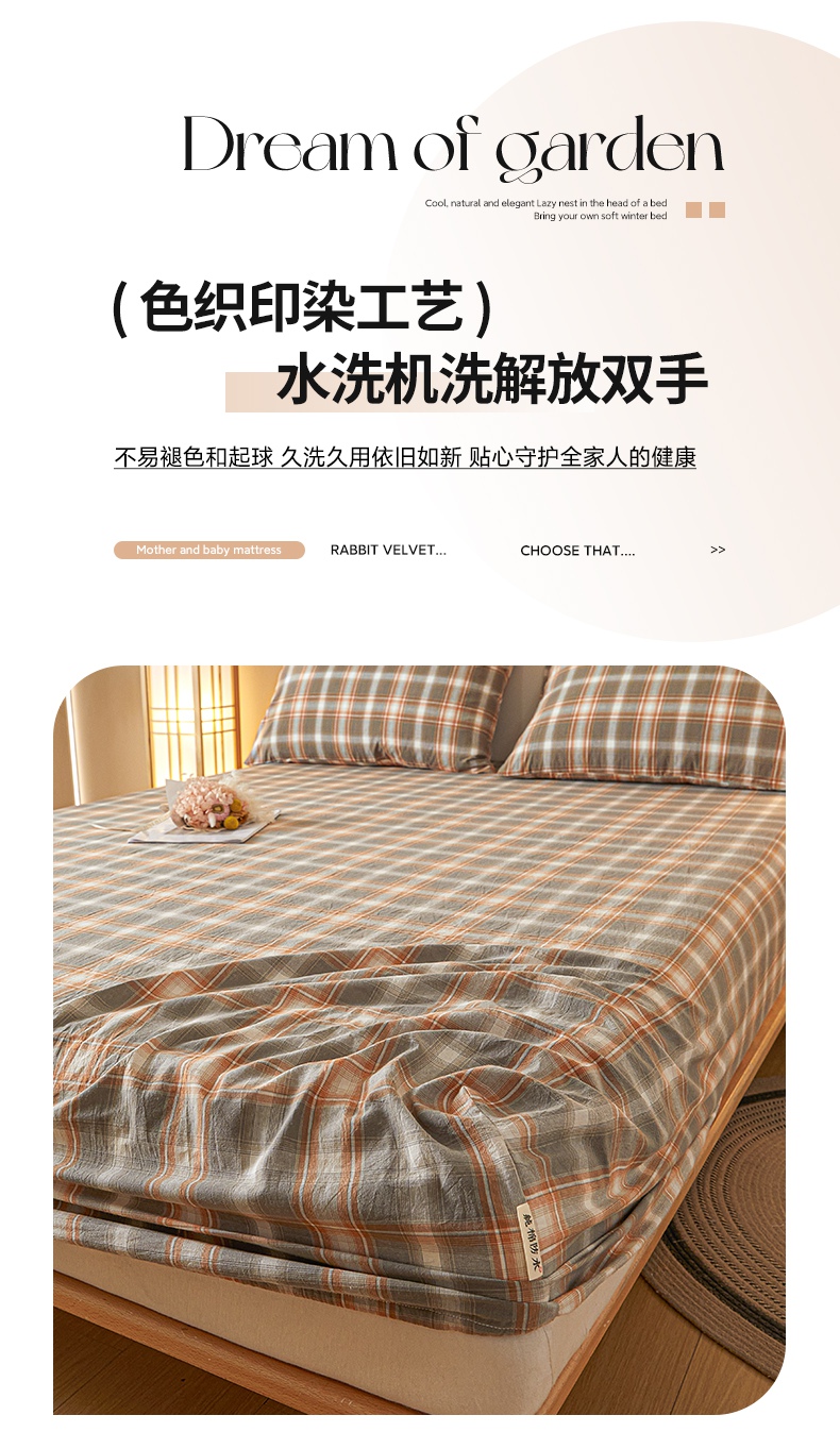 (总)芬晴家纺 2025新款色织全棉棉花床笠,本色,经典格,诺卡,清风-粉,清风-灰,清风-兰,日常