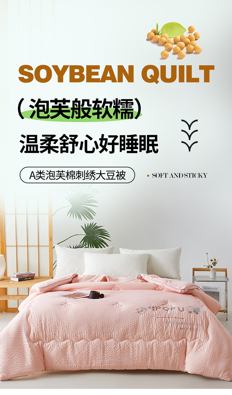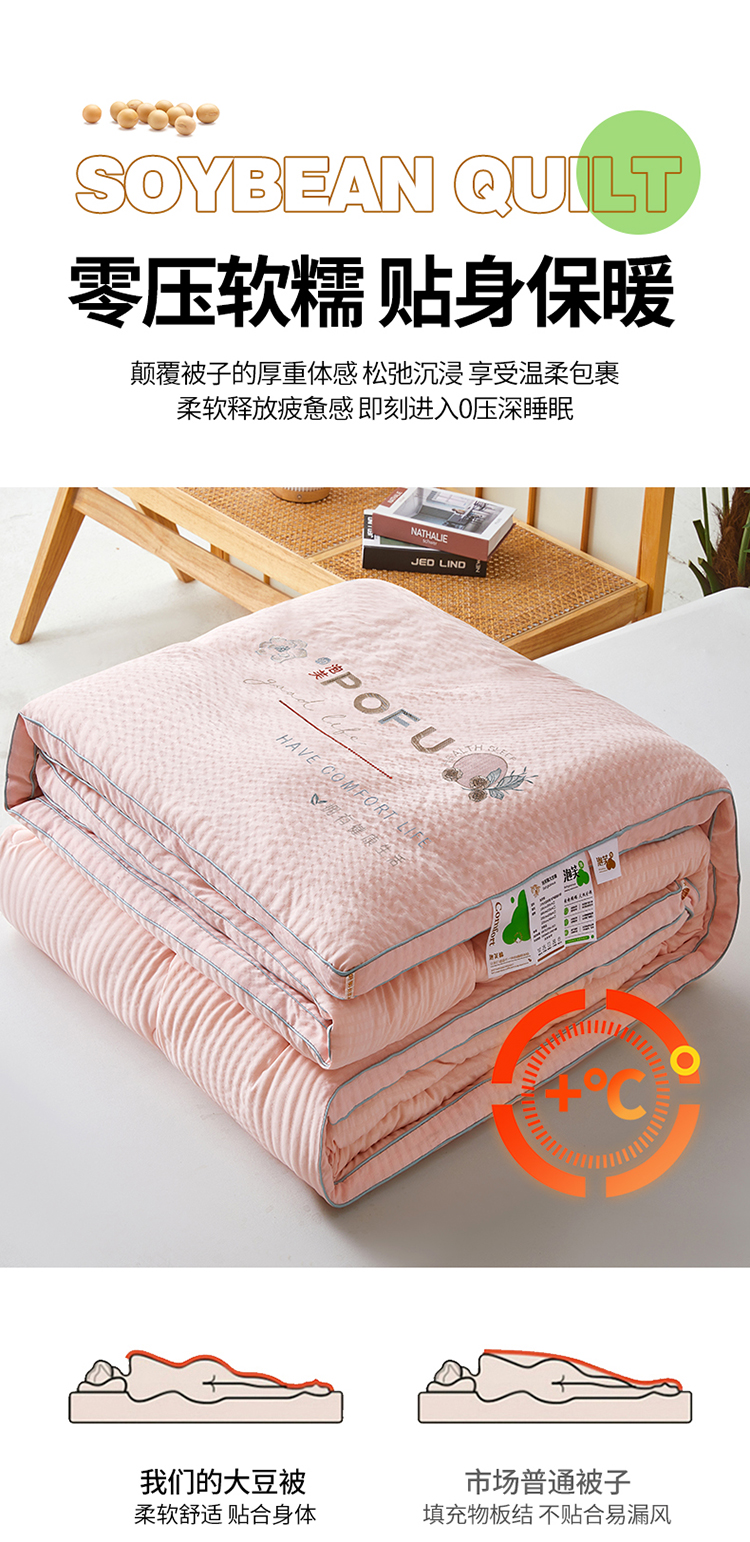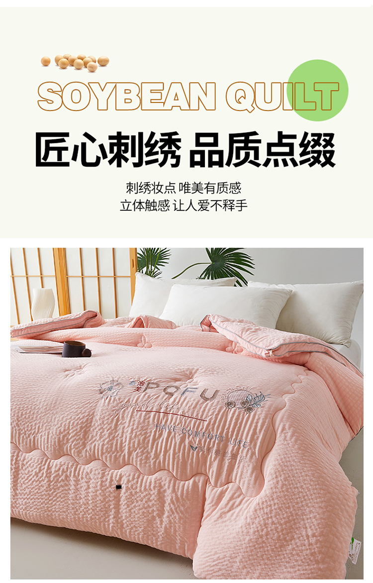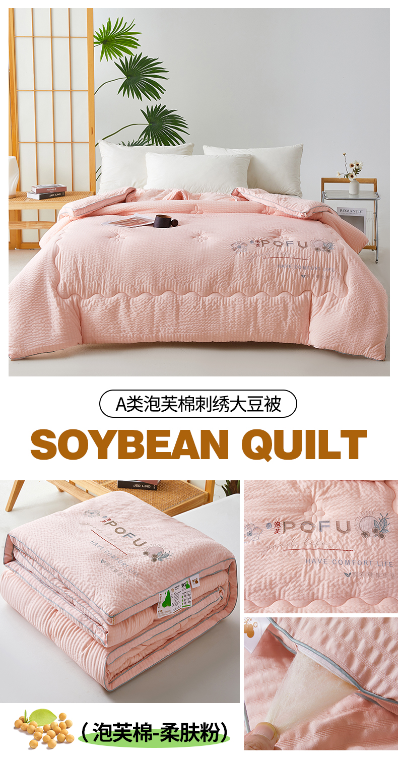 • 91家纺网 家纺一手货源 找家纺 买家秀 爆款花色不断货)A类母婴级泡芙刺绣大豆被子春秋被秋冬被大豆纤维被子被芯空调被水洗棉大豆被子纯 泡芙棉-柔肤粉
