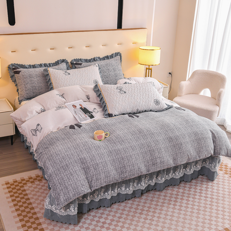 当前位置: 91家纺网 > 商品网购 > 床品套件 > 四件套 > 牛奶绒四件套 > (买家秀 爆款不断货)A类母婴级双层蕾丝花边床裙床盖三件套牛奶绒床盖三件套萱花绒床护垫牛奶绒床褥卡通 花边-蝴蝶结