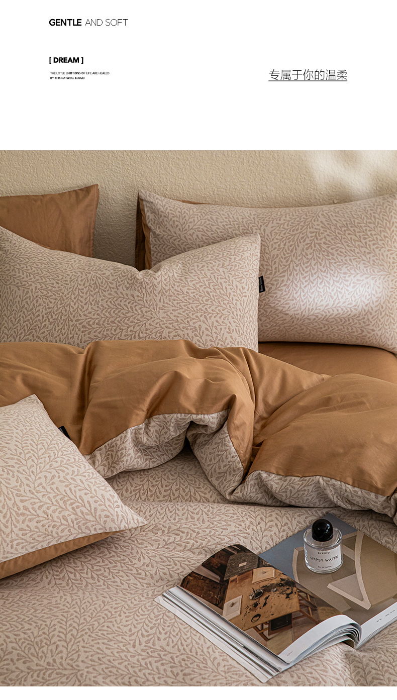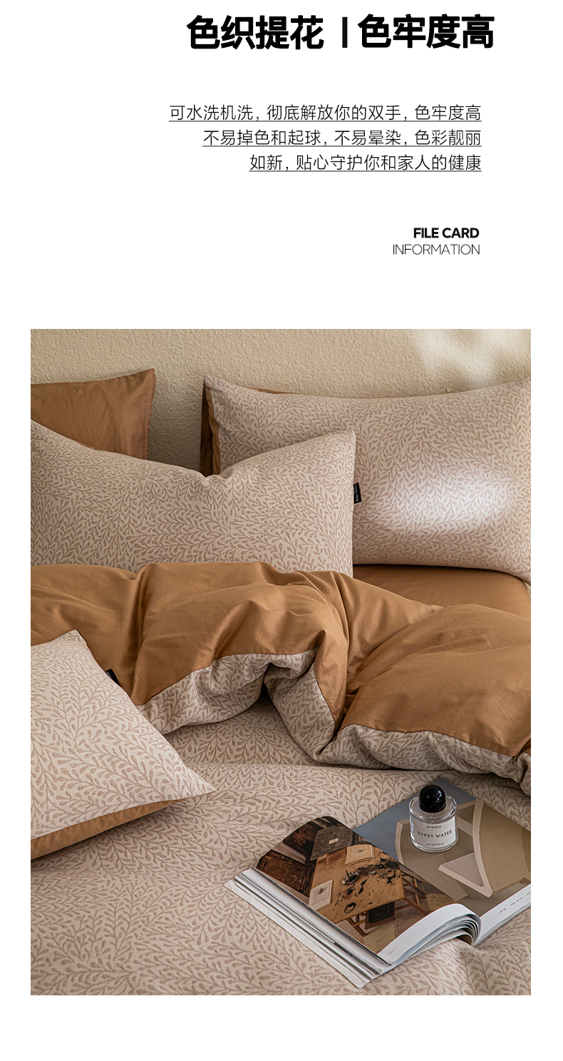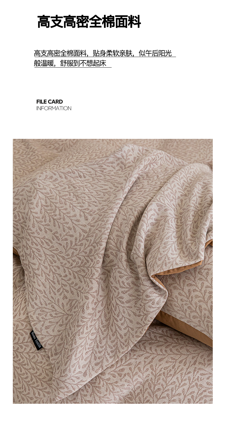 商品名称:2025新款全棉A类三层纱大提花纯棉四件套 翠枝玉露-咖