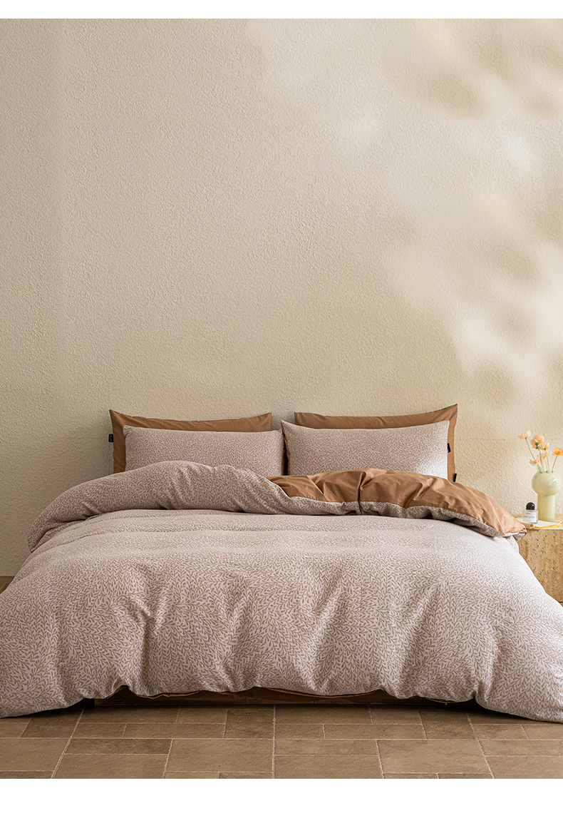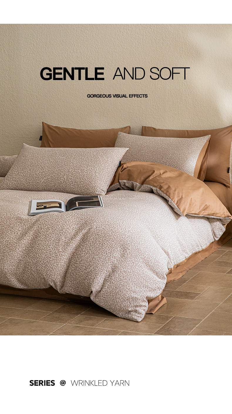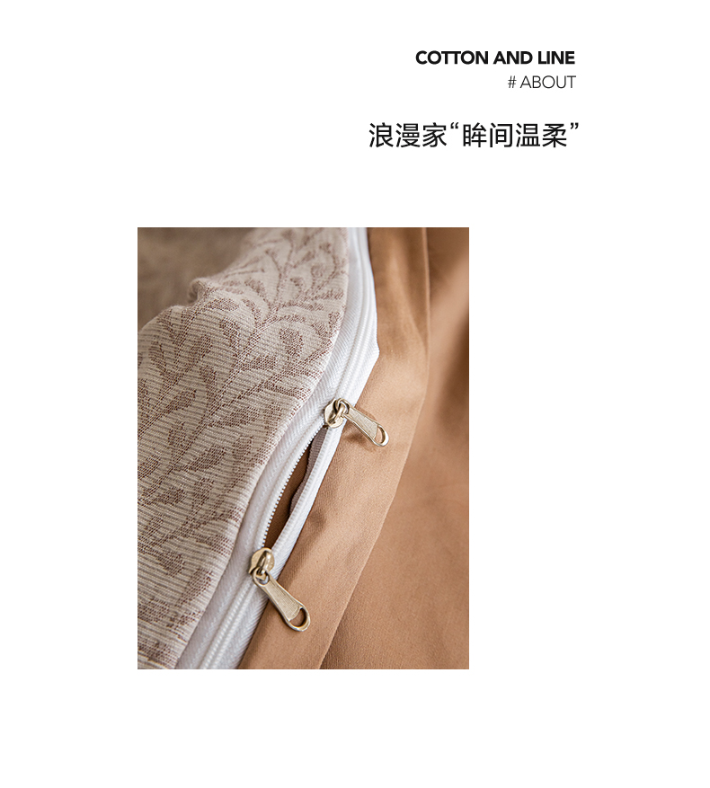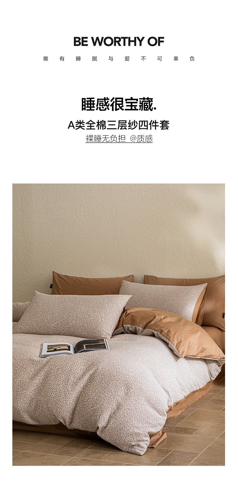 商品名称:2025新款全棉A类三层纱大提花纯棉四件套 翠枝玉露-咖