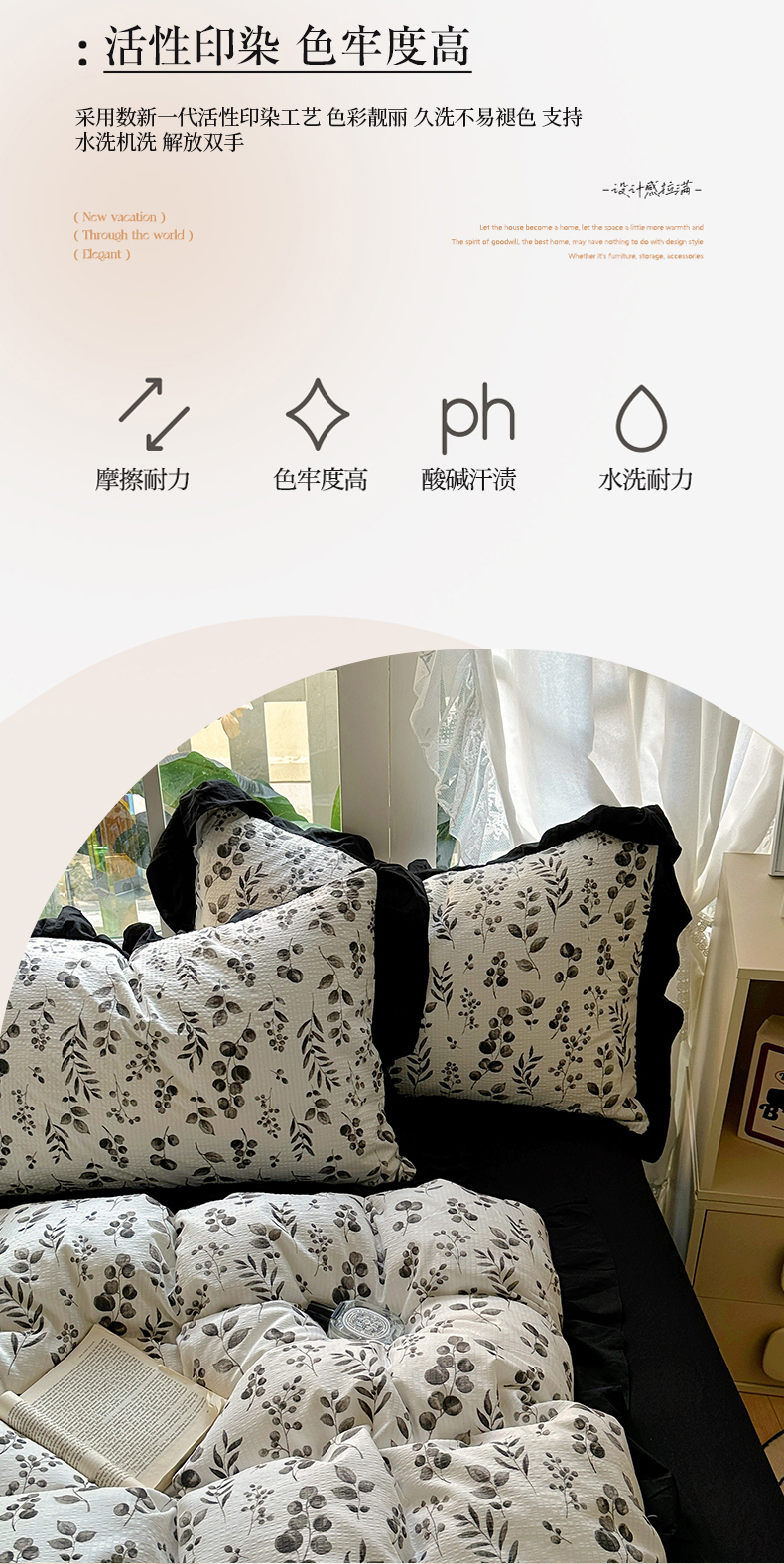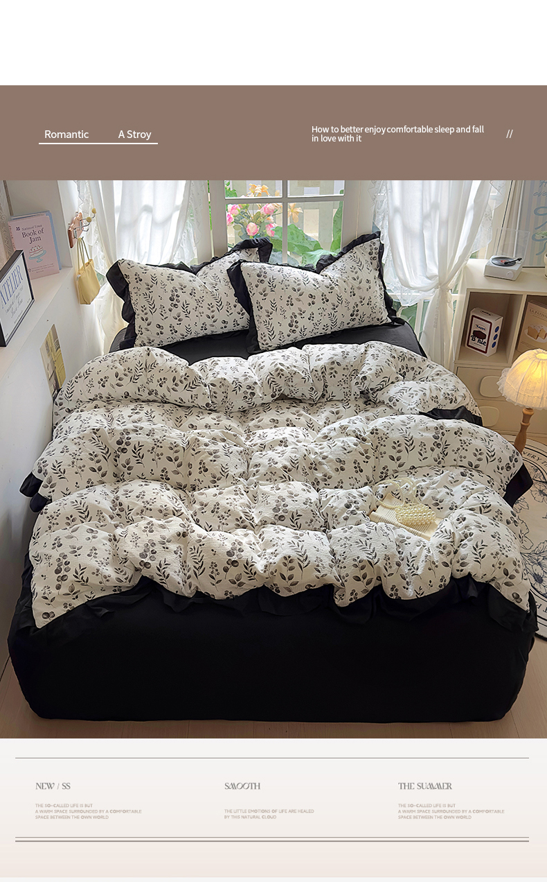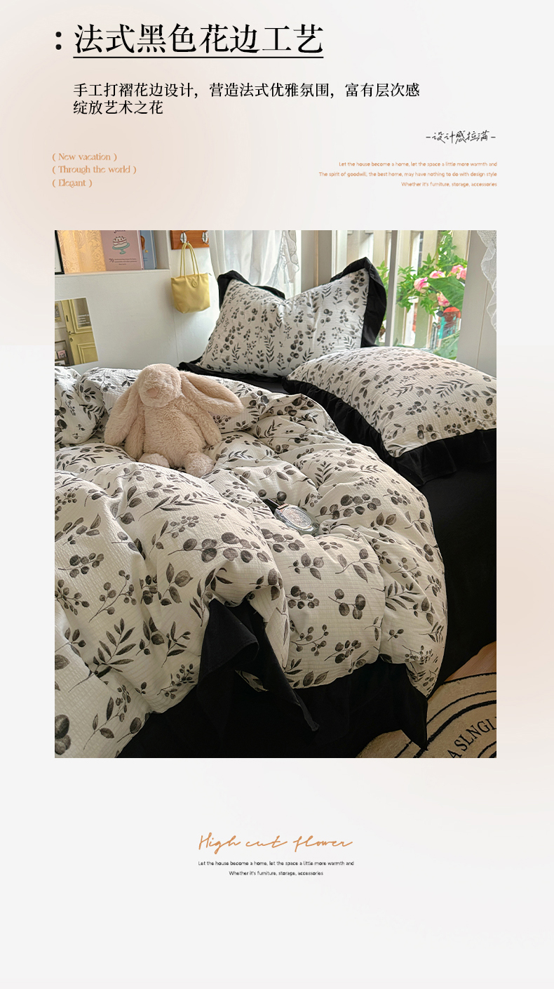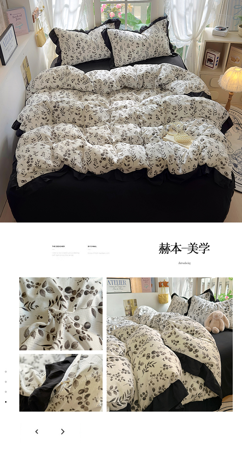 当前位置: 91家纺网 > 商品网购 > 床品套件 > 四件套 > 其它四件套 > 2025年新款法式韩式浪漫赫本风黑色花边水洗m印花四件套 赫本-美学