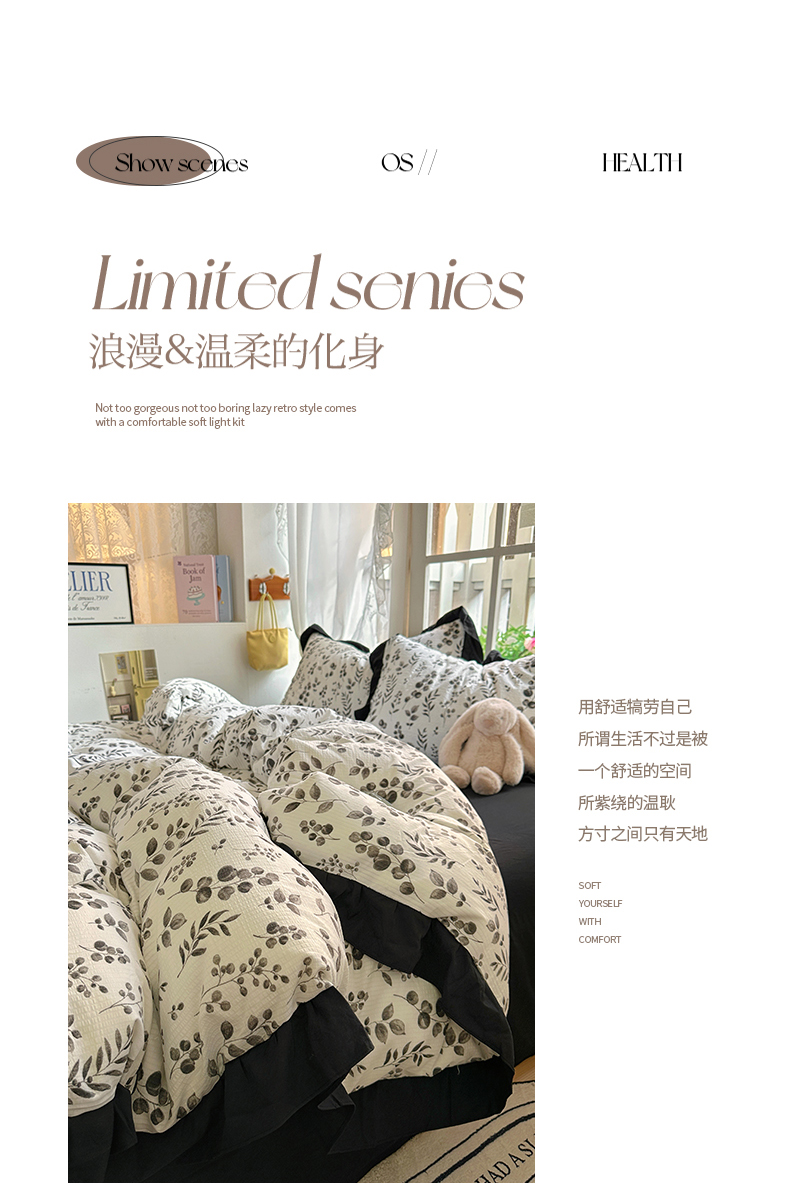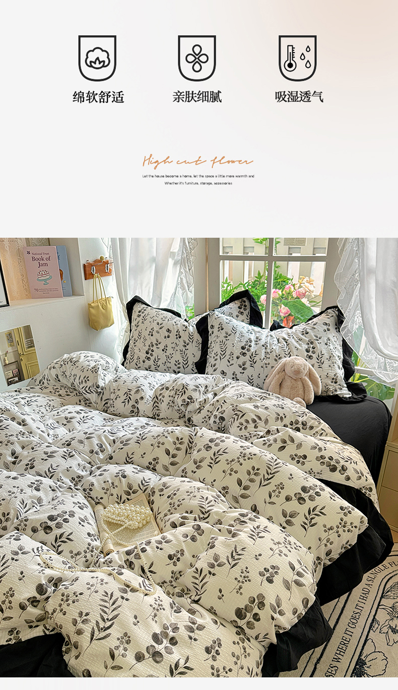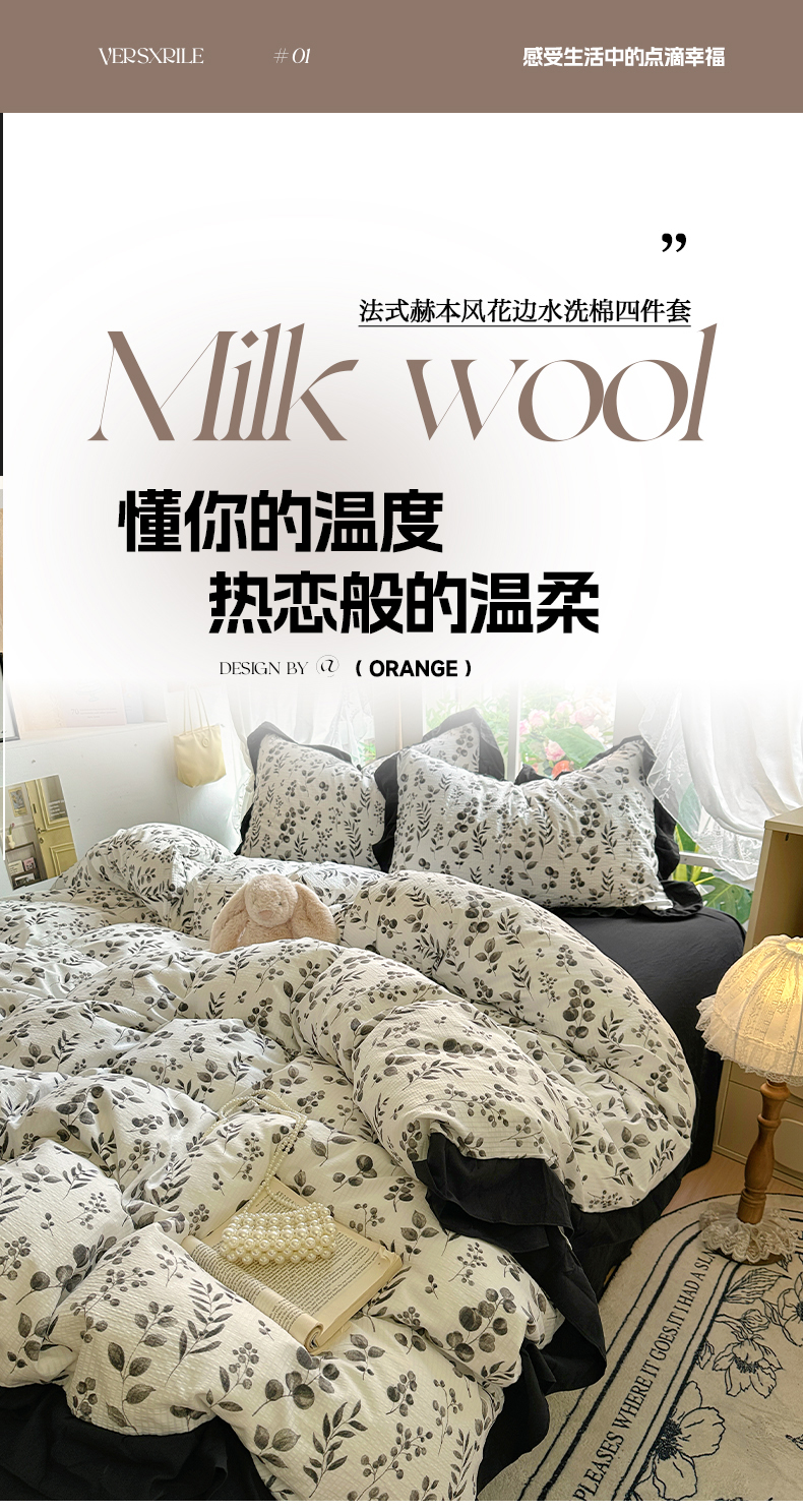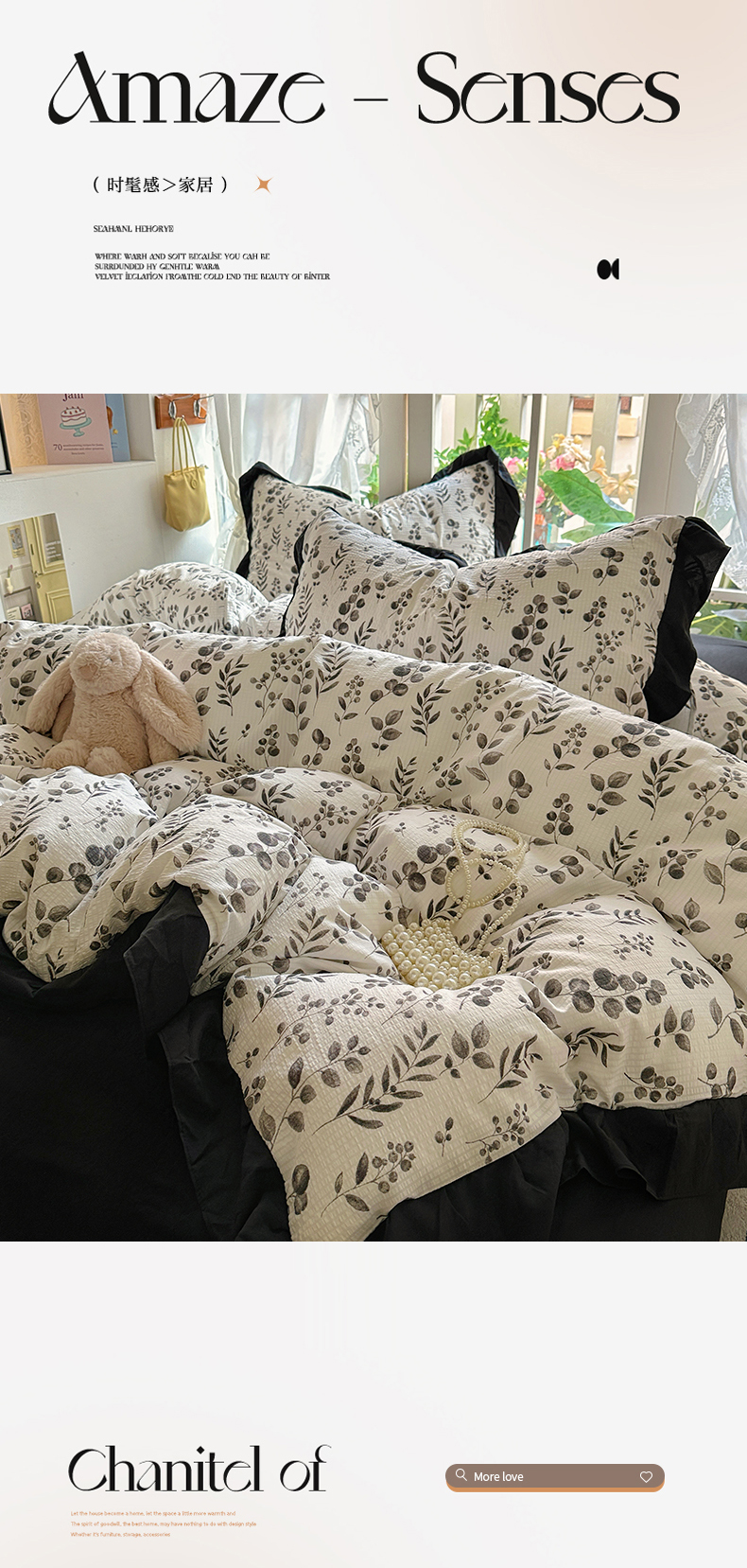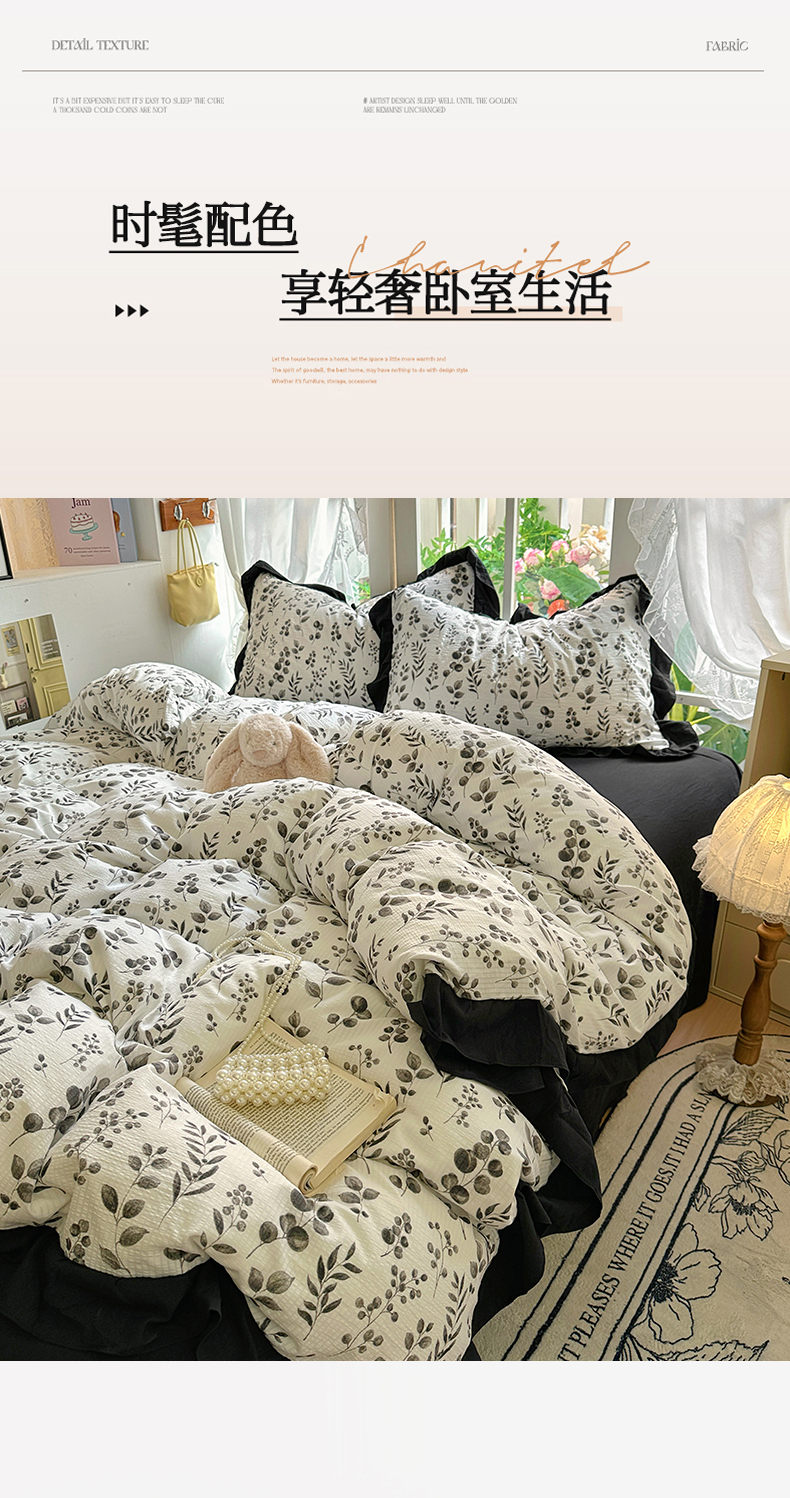 当前位置: 91家纺网 > 商品网购 > 床品套件 > 四件套 > 其它四件套 > 2025年新款法式韩式浪漫赫本风黑色花边水洗m印花四件套 赫本-美学