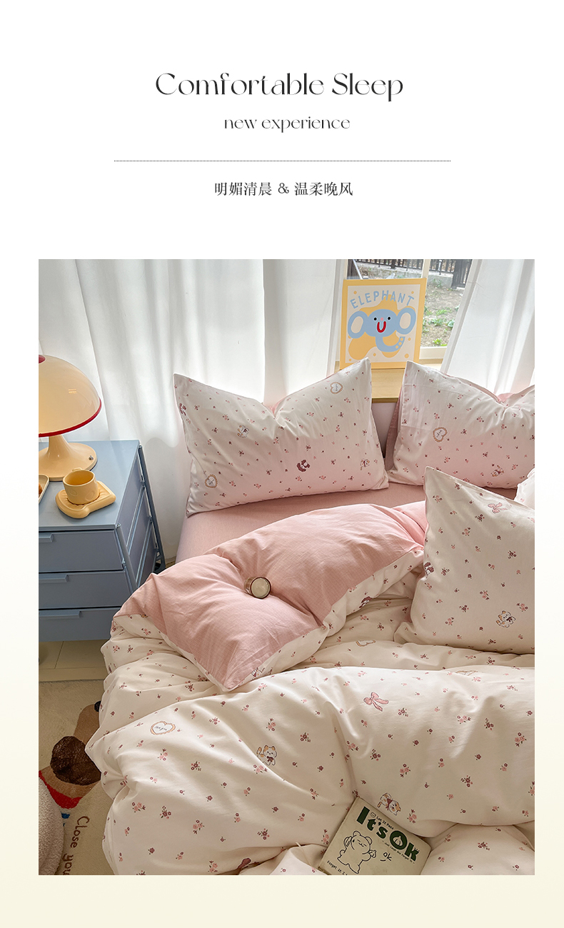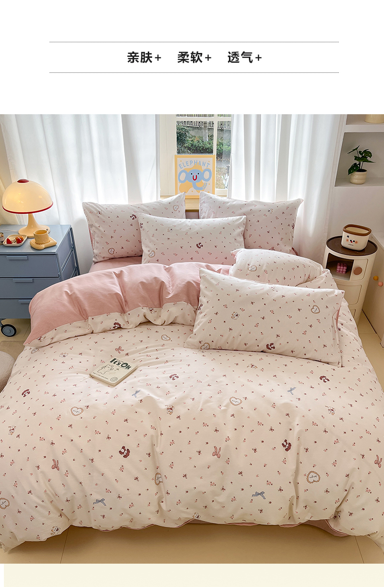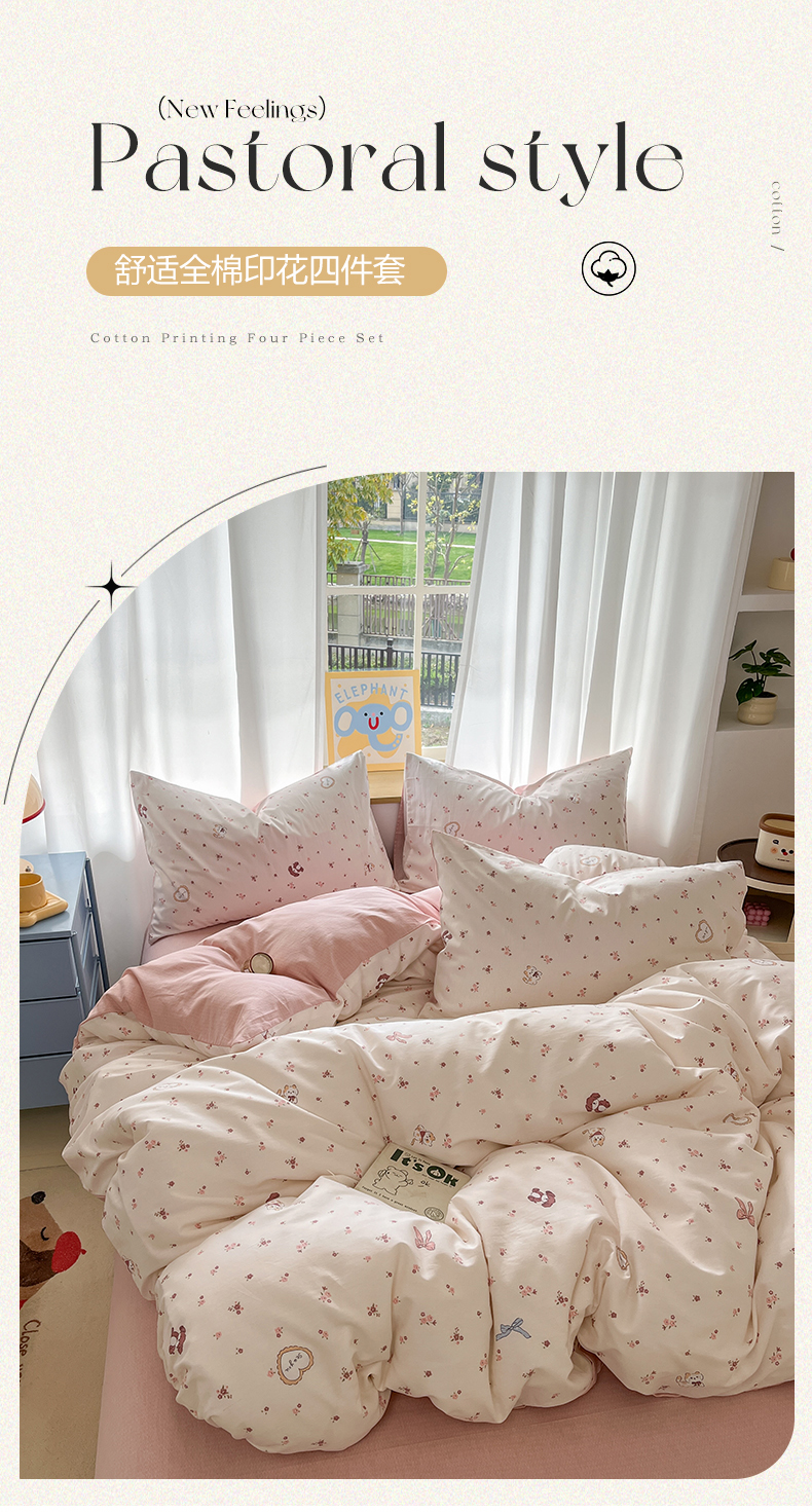 (总)捌月 2026新款奶油风全棉印花四件套,布丁,好朋友,花间小兔,花屿,露丝,蘑菇屋,奶芙,奶酪小羊,甜蜜,汐薇,小朵朵,幸运狗
