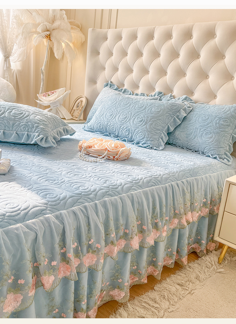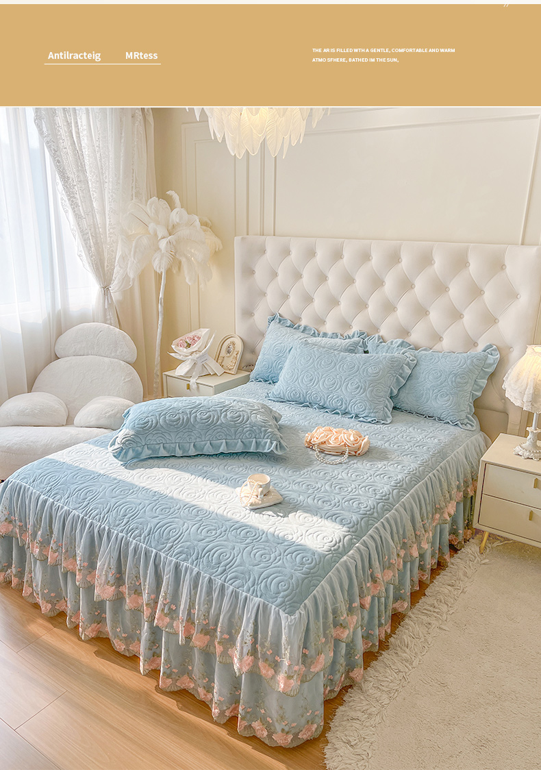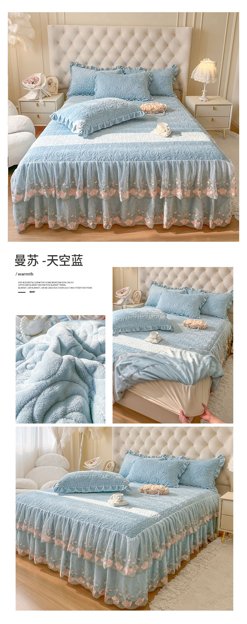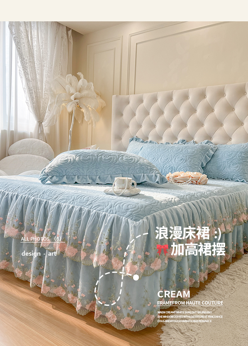 恋尚 2025新款牛奶绒夹棉床笠裙-曼苏 曼苏-天空蓝