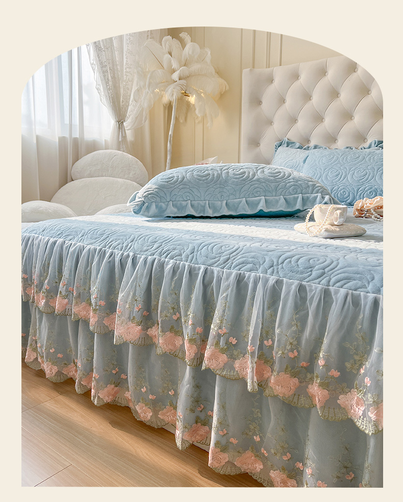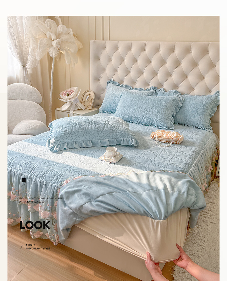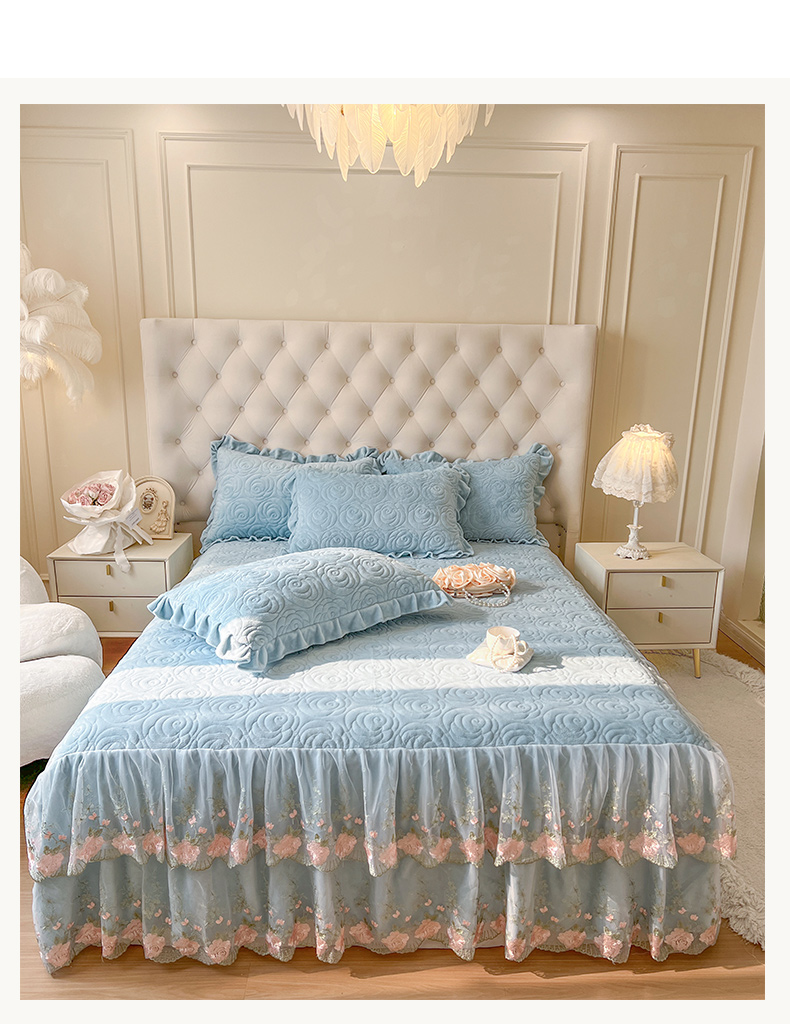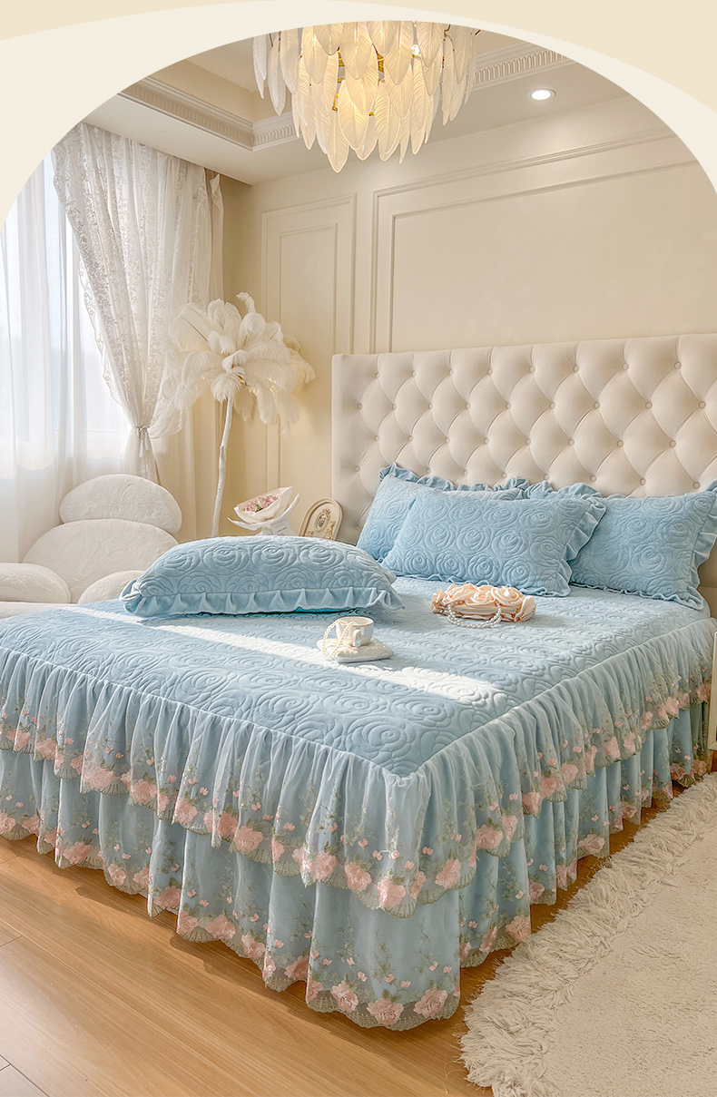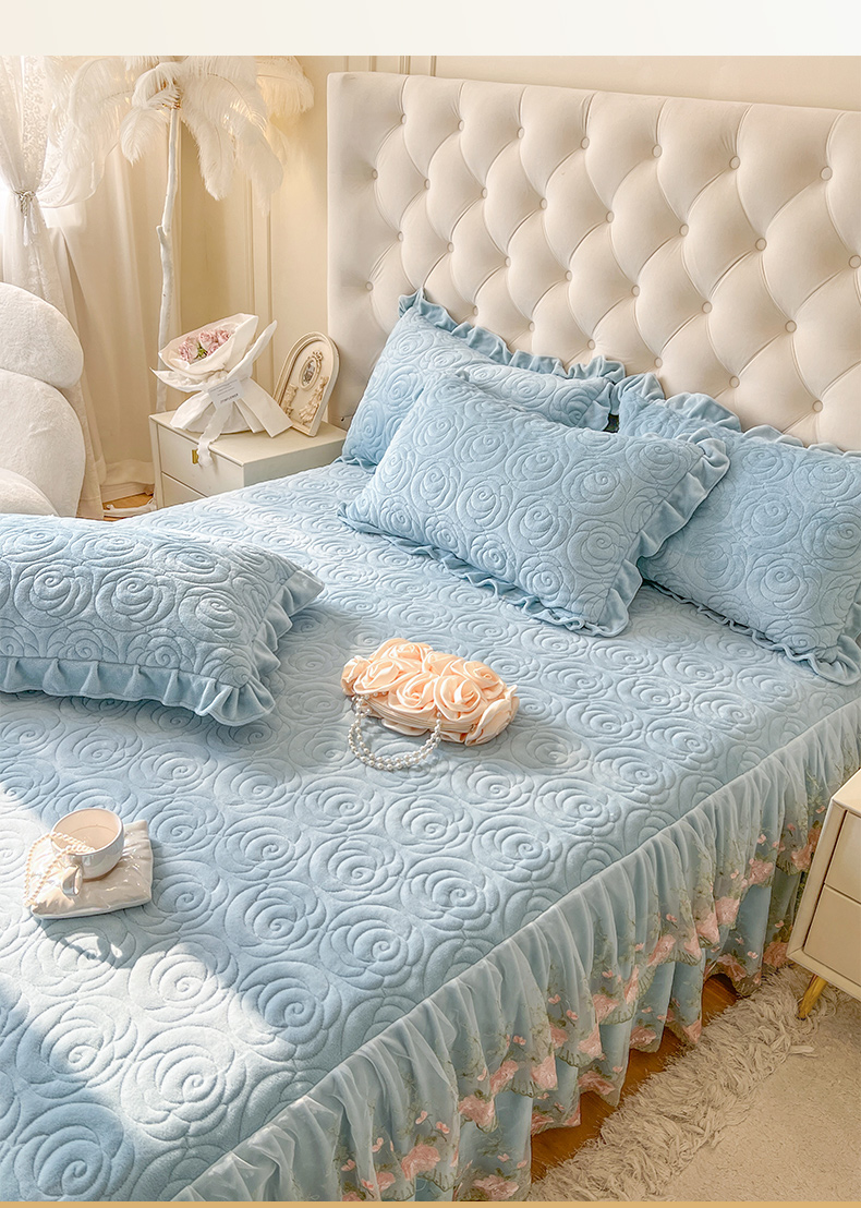 恋尚 2025新款牛奶绒夹棉床笠裙-曼苏 曼苏-天空蓝
