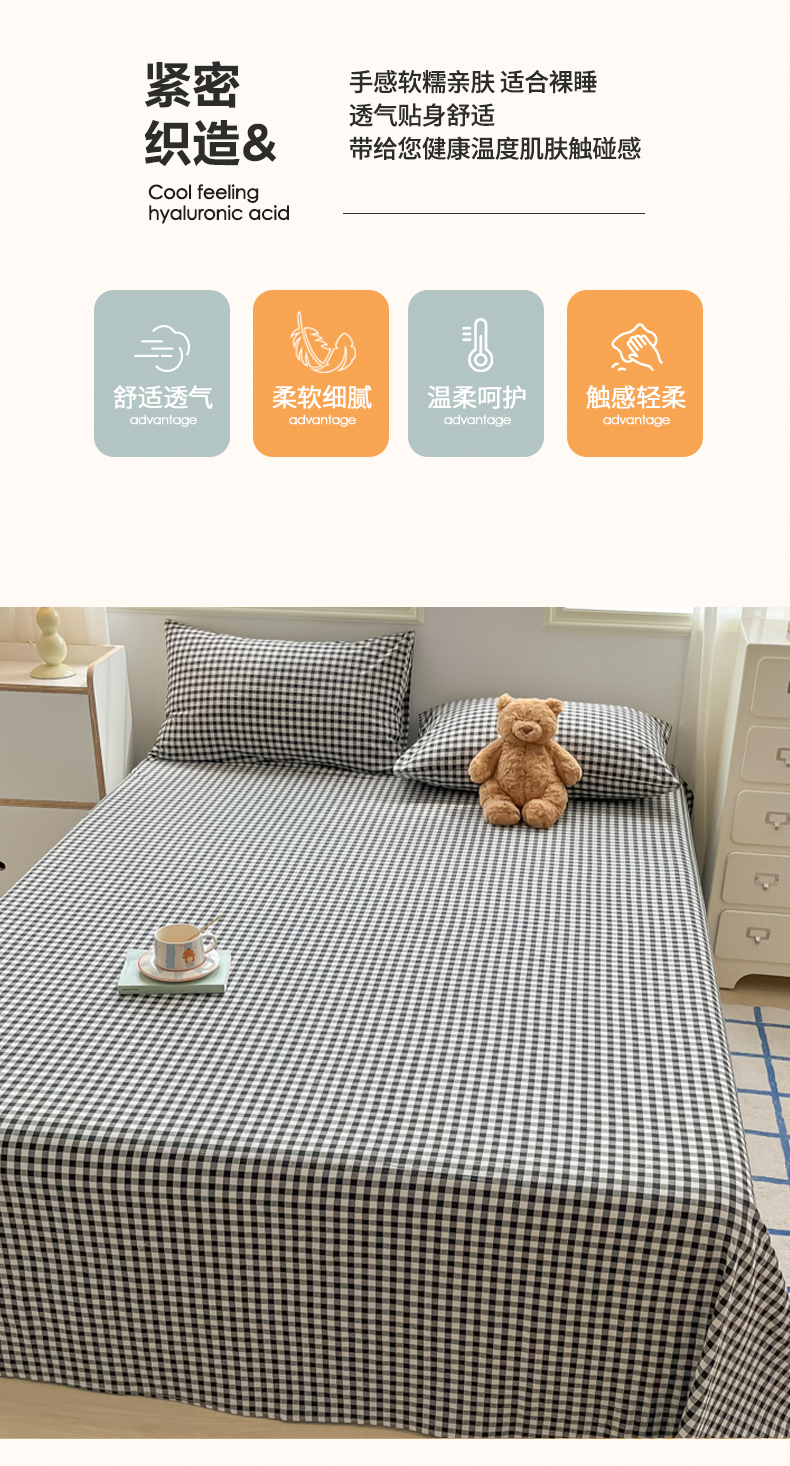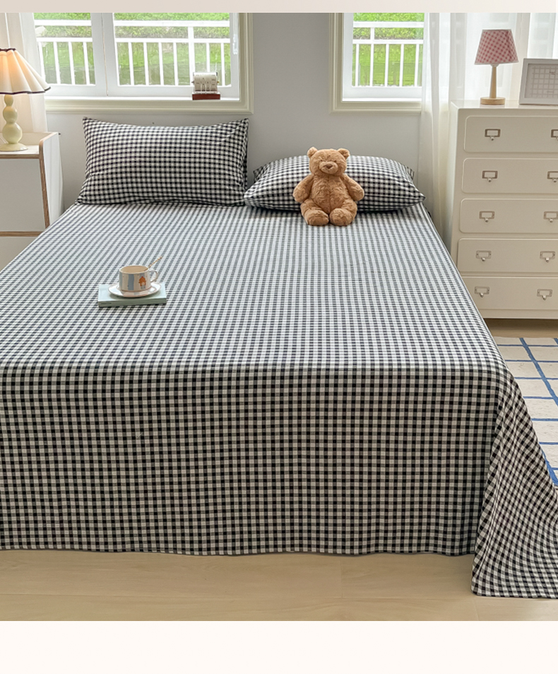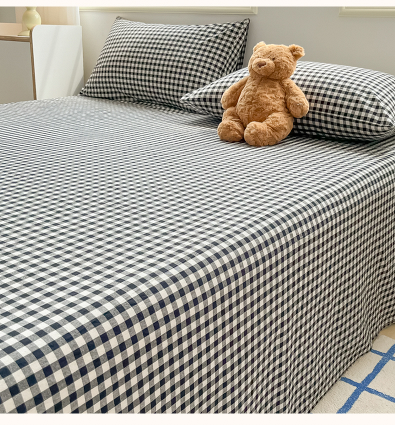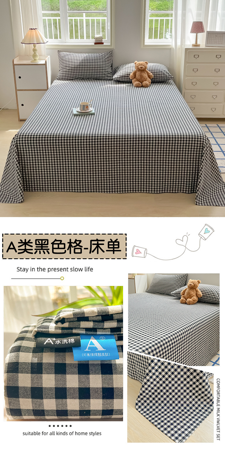商品名称:韩巢家纺 2025新款格子纯色A类水洗棉床单单件 A类黑色格-床单
