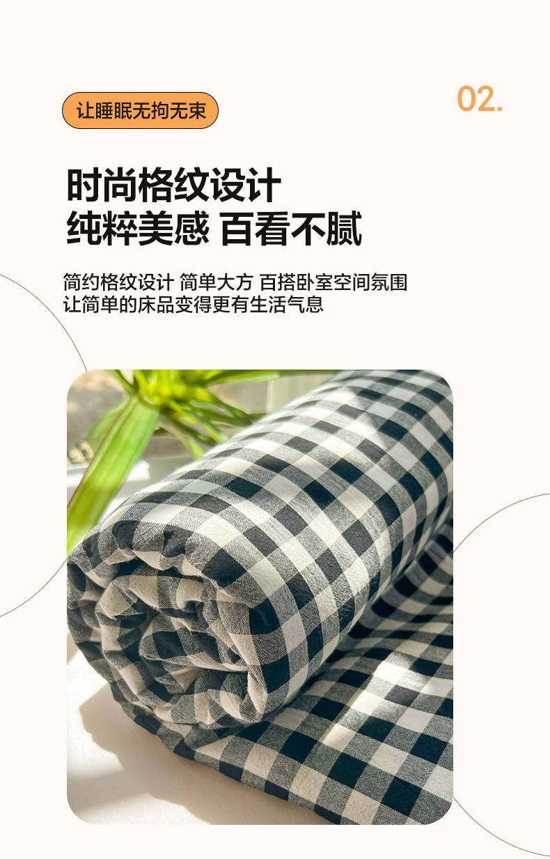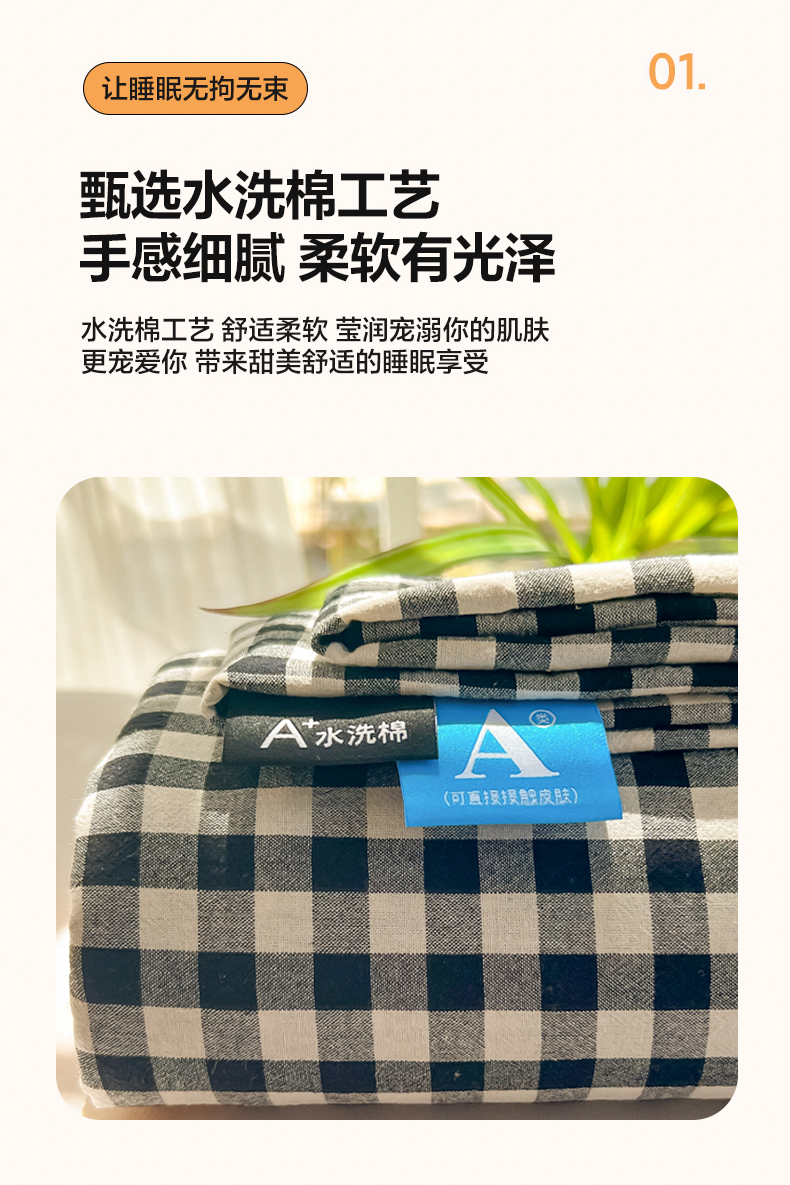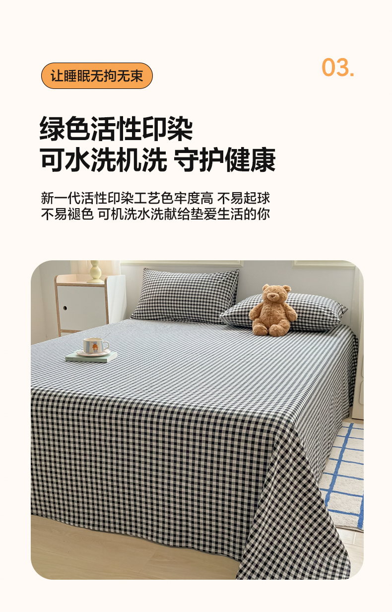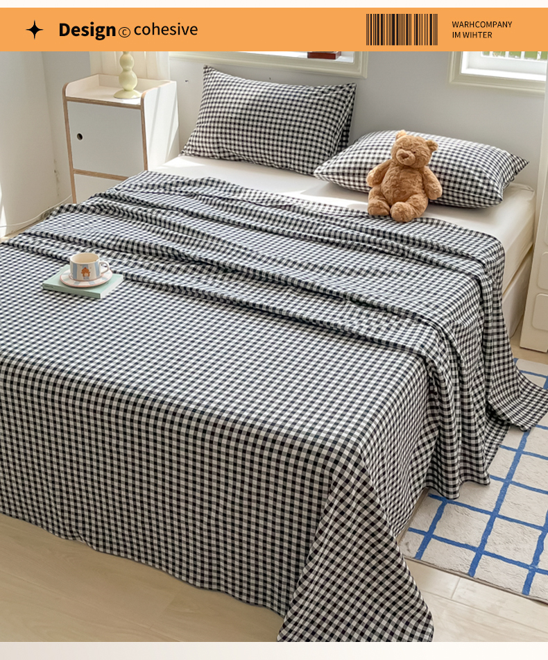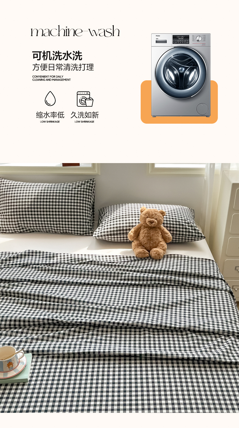 商品名称:韩巢家纺 2025新款格子纯色A类水洗棉床单单件 A类黑色格-床单