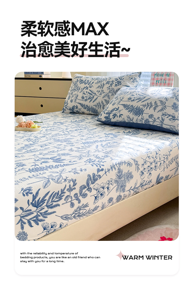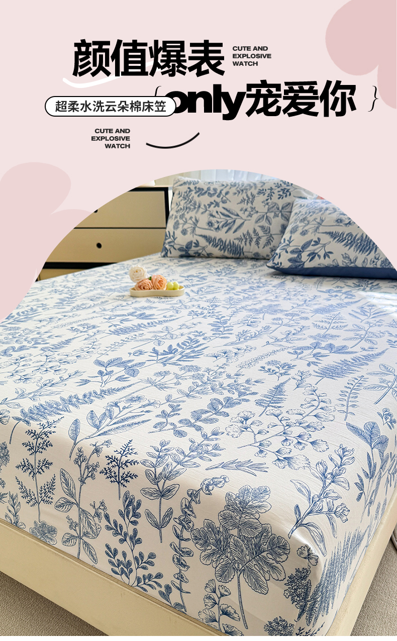 • 91家纺网 家纺一手货源 找家纺 多品家纺 2025新款超柔水洗云朵棉单品床笠 幽兰