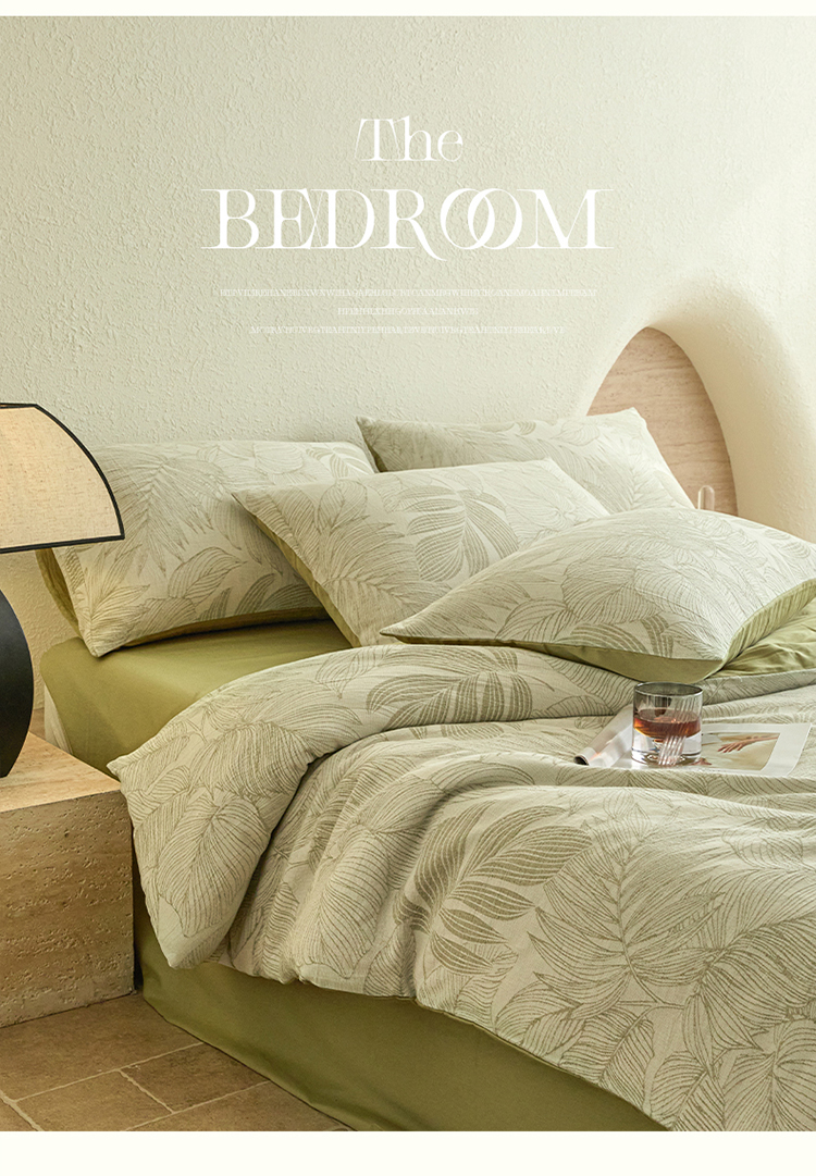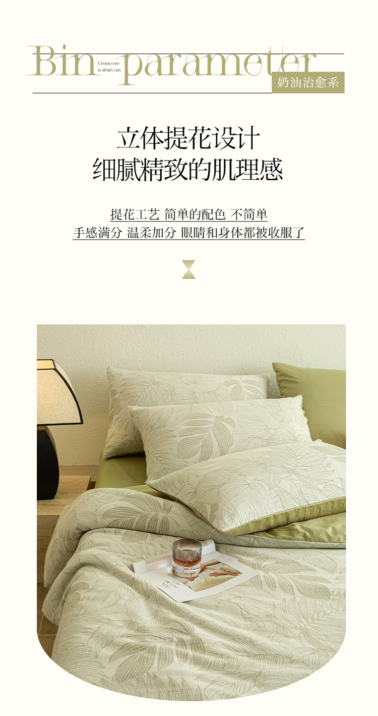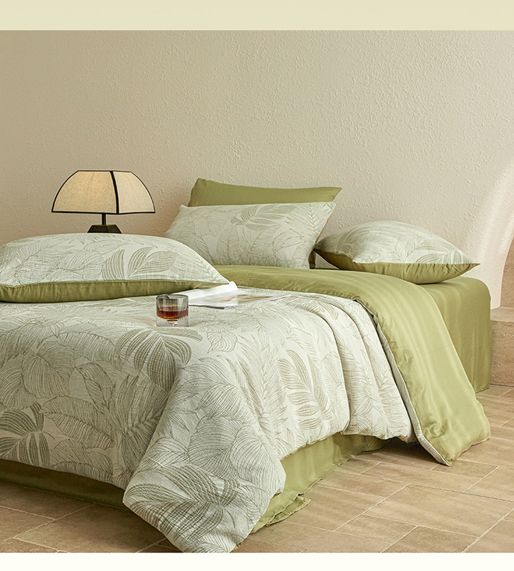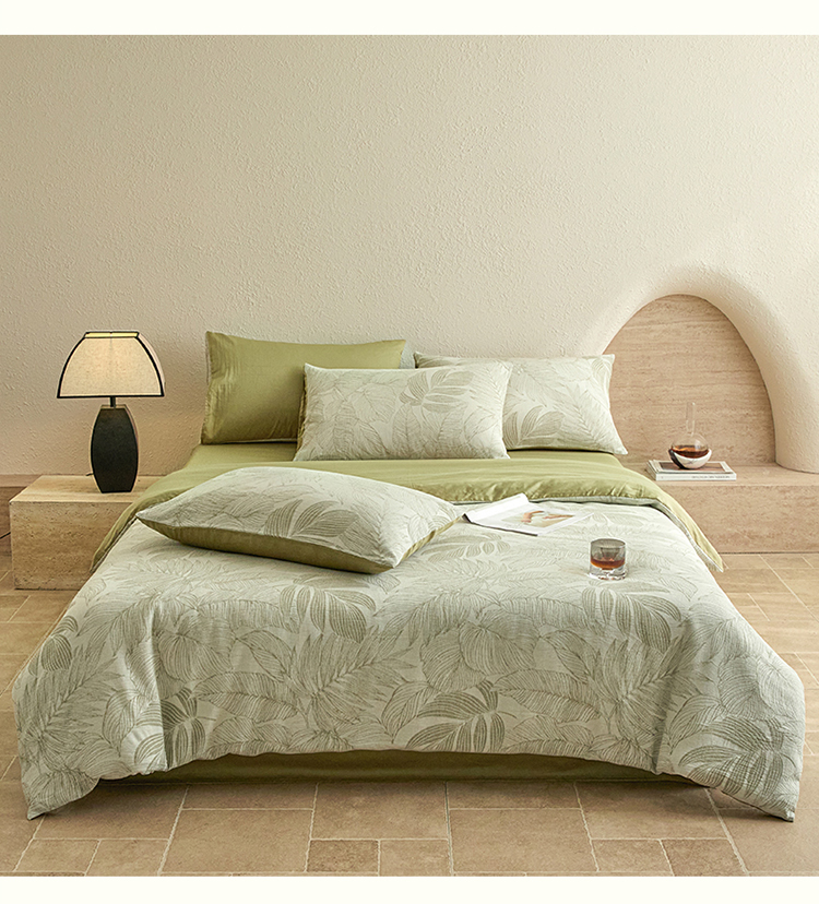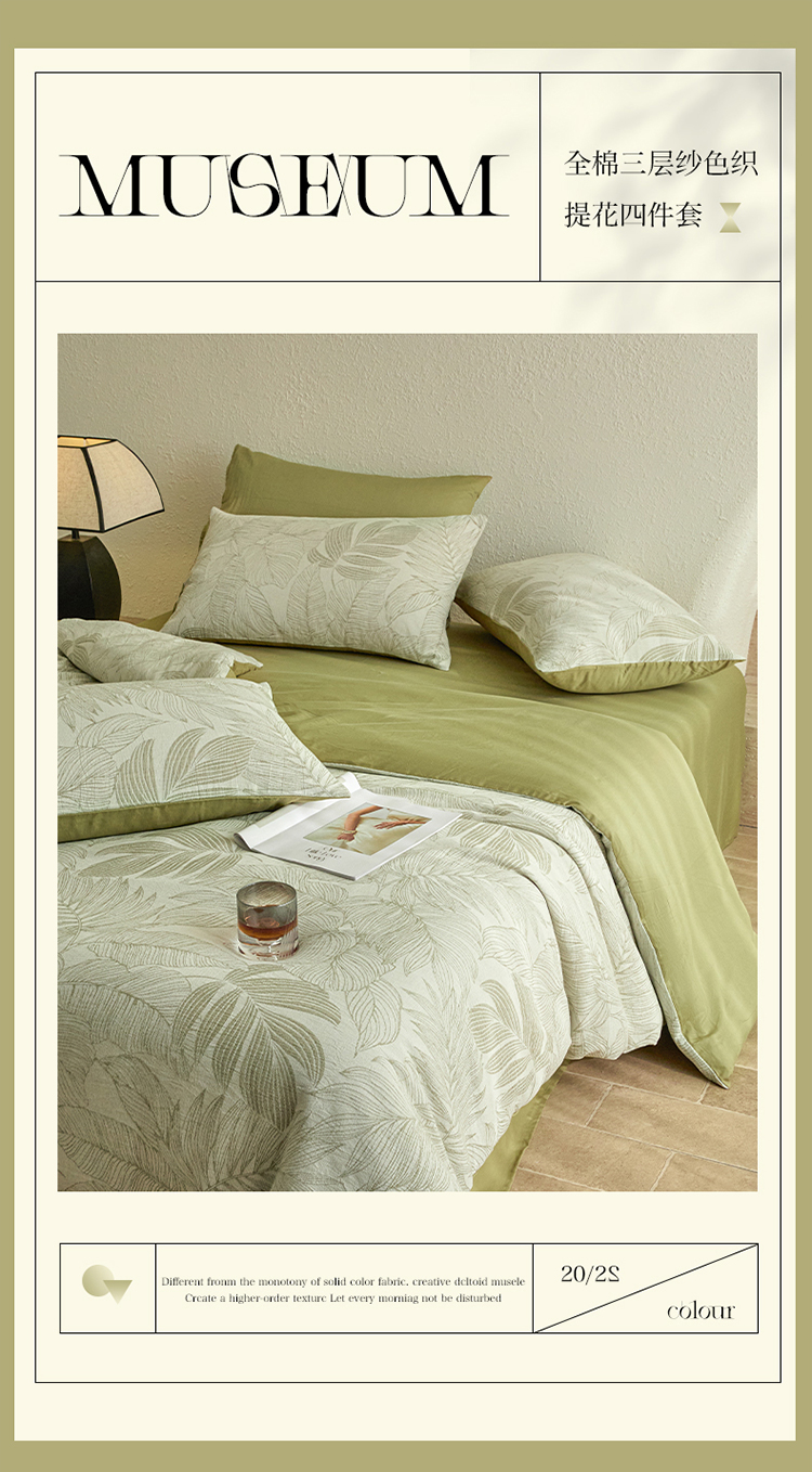 当前位置: 91家纺网 > 商品网购 > 床品套件 > 四件套 > 全棉普通四件套 > 2025新款全棉三层纱色织大提花四件套系列 满葵-果绿
