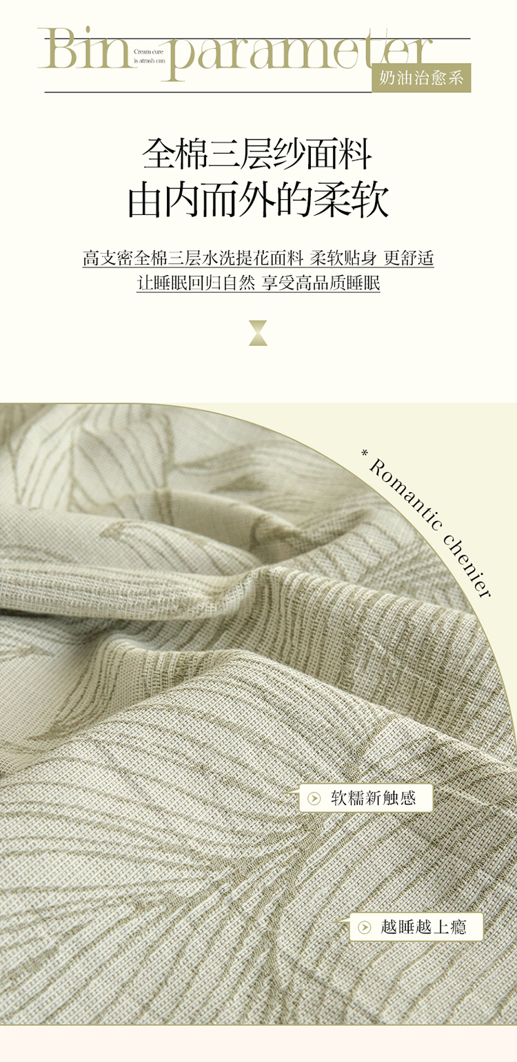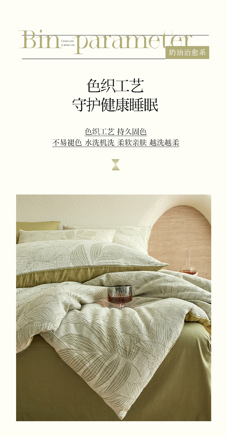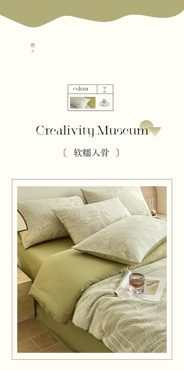 当前位置: 91家纺网 > 商品网购 > 床品套件 > 四件套 > 全棉普通四件套 > 2025新款全棉三层纱色织大提花四件套系列 满葵-果绿