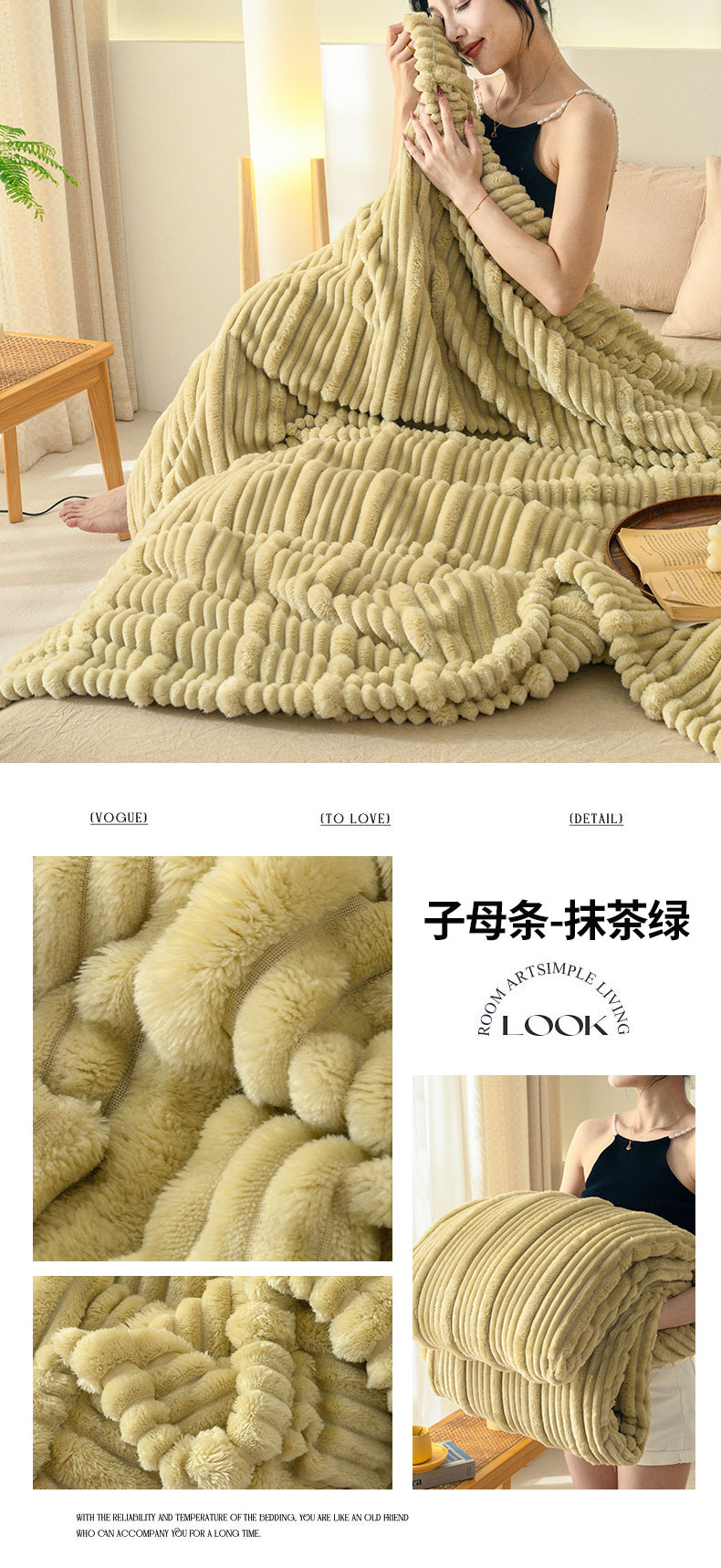 (买家秀不断货)A类母婴级兔兔绒毛毯北极绒毛毯双层毯子牛奶绒毛毯兔兔绒毯子午睡毯珊瑚绒毛毯羊羔绒毛毯 子母条-抹茶绿
