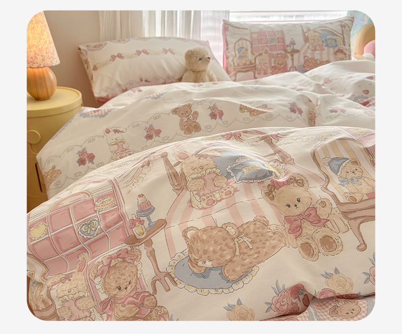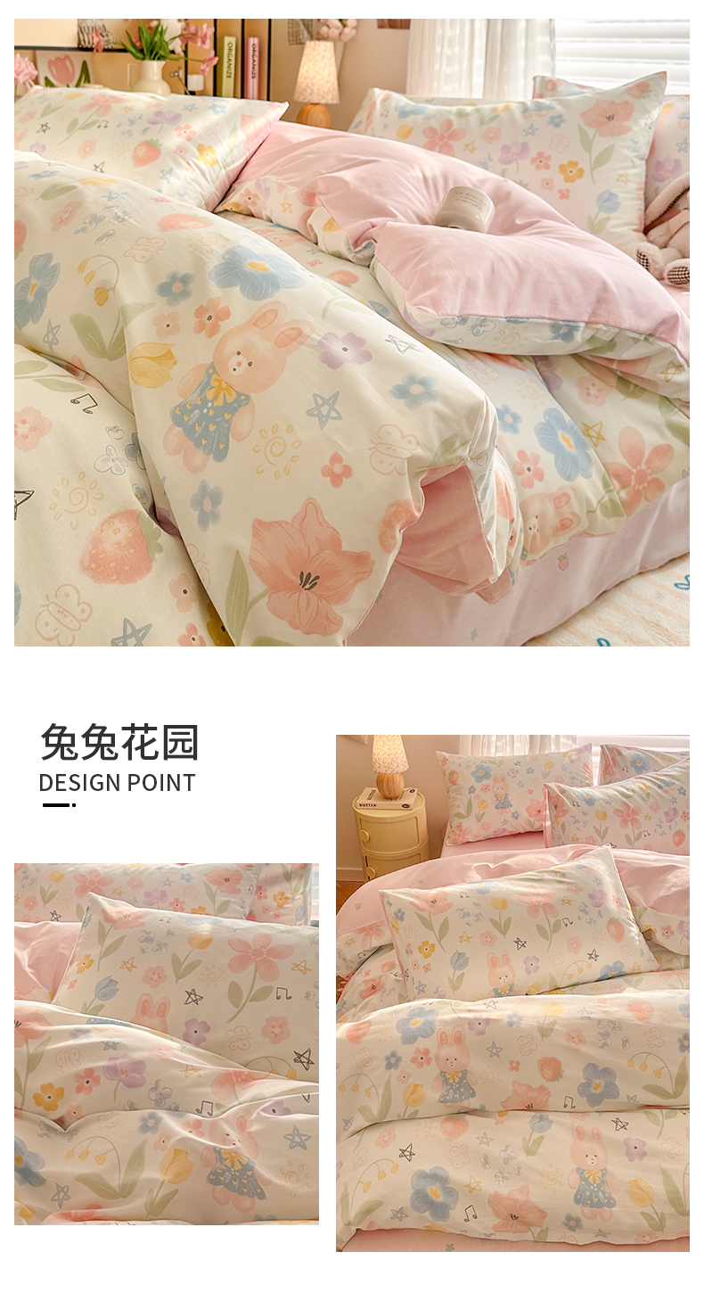 (总)名兮 2023新款全棉印花卡通风四件套,抱抱熊,波波熊,菲菲兔,机器小新,可爱萌宠,可爱兔