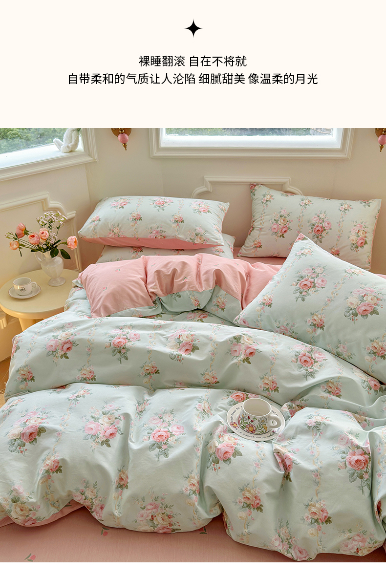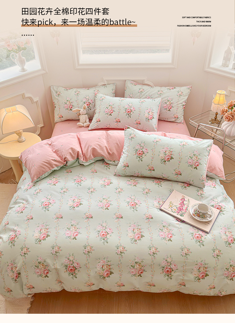 (总)名兮 2023新款全棉印花小清新四件套,爱莲娜,春暖花开,少女梦,小确幸,星辰入梦,幸运花,幽幽仙草,致青春