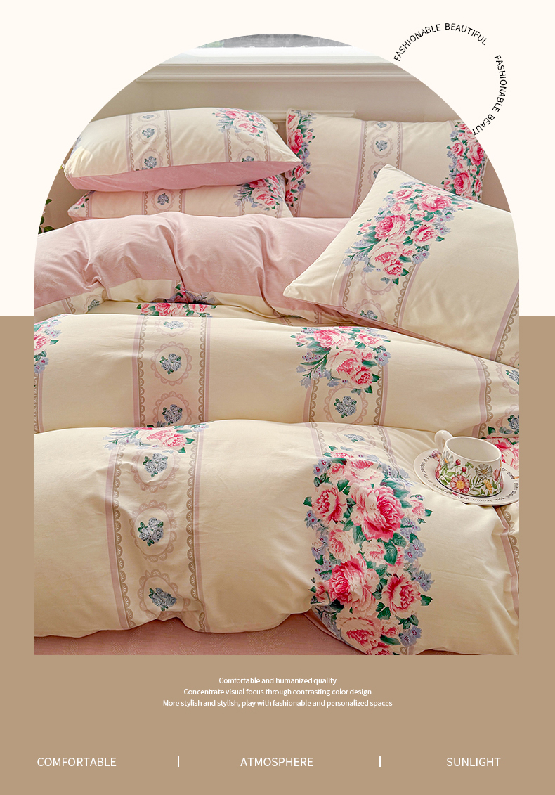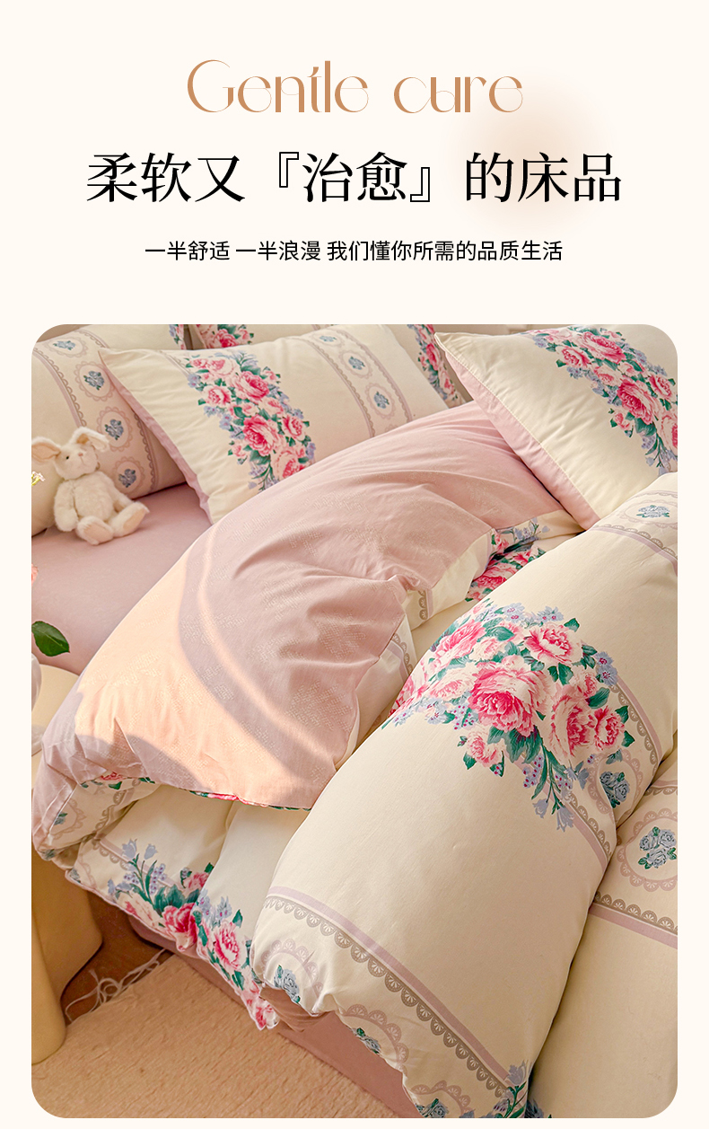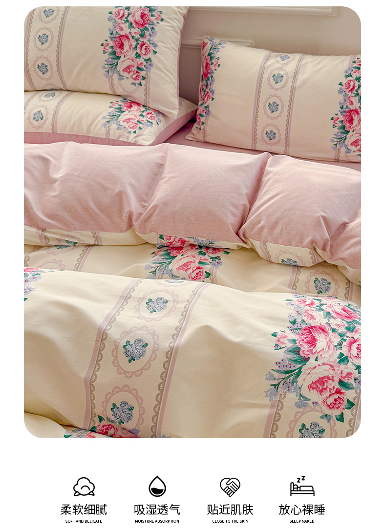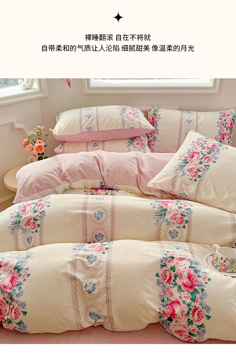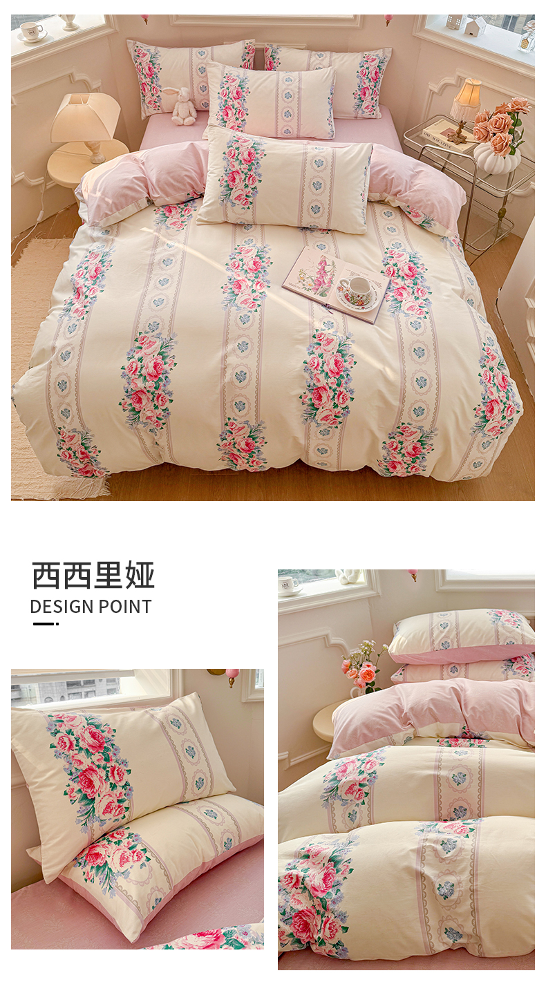 商品名称:名兮家居 2025新款13372全棉四件套-大花卉系列 西西里娅