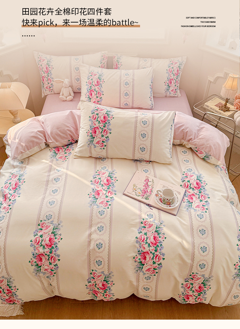 (总)名兮 2023新款全棉印花小清新四件套,爱莲娜,春暖花开,少女梦,小确幸,星辰入梦,幸运花,幽幽仙草,致青春