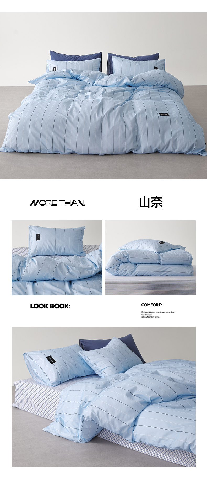商品名称:怡家居 2025新款极简黑标系列蓝色条纹四件套 山奈