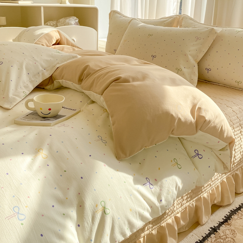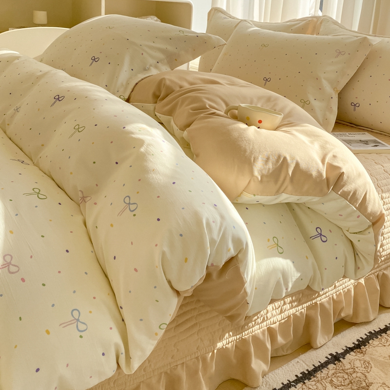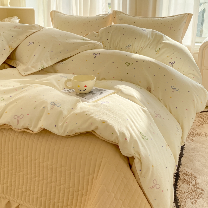 尚美 2025新款小碎花针织棉床盖四件套 波点蝴蝶