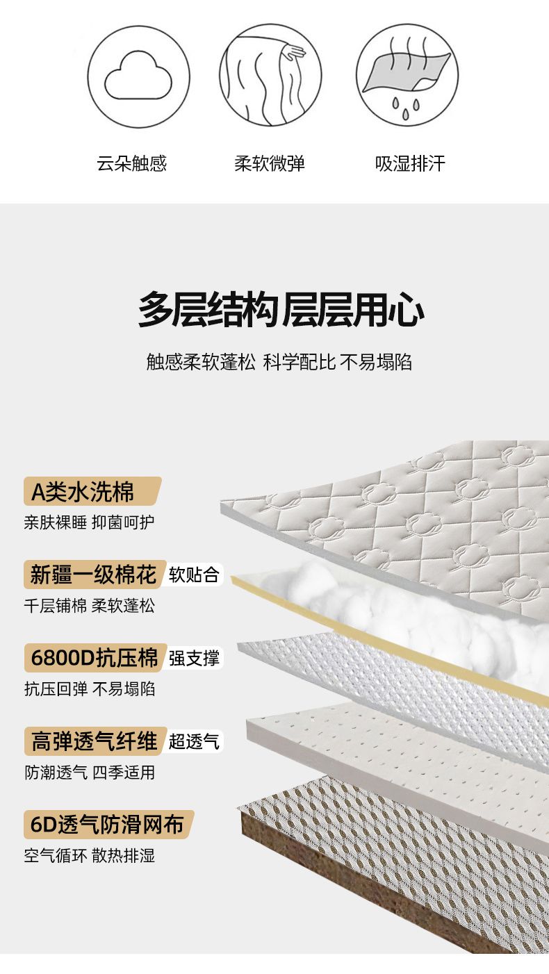 (总)暖季家纺 2025新款零压深睡眠学生记忆棉针织棉提花床垫,凌悦,清韵,云逸,素致