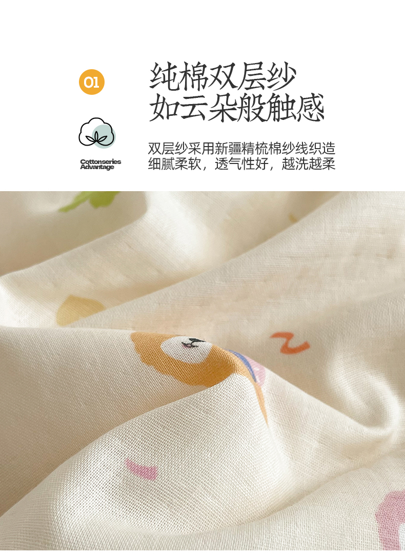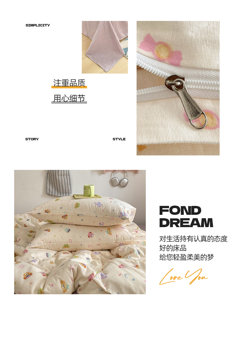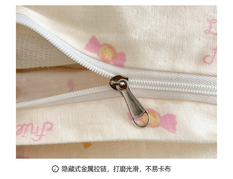 商品名称:桃子家居2025新款A类纯棉有氧双层纱小清新可爱少女系列四件套 棉双层纱-露琳