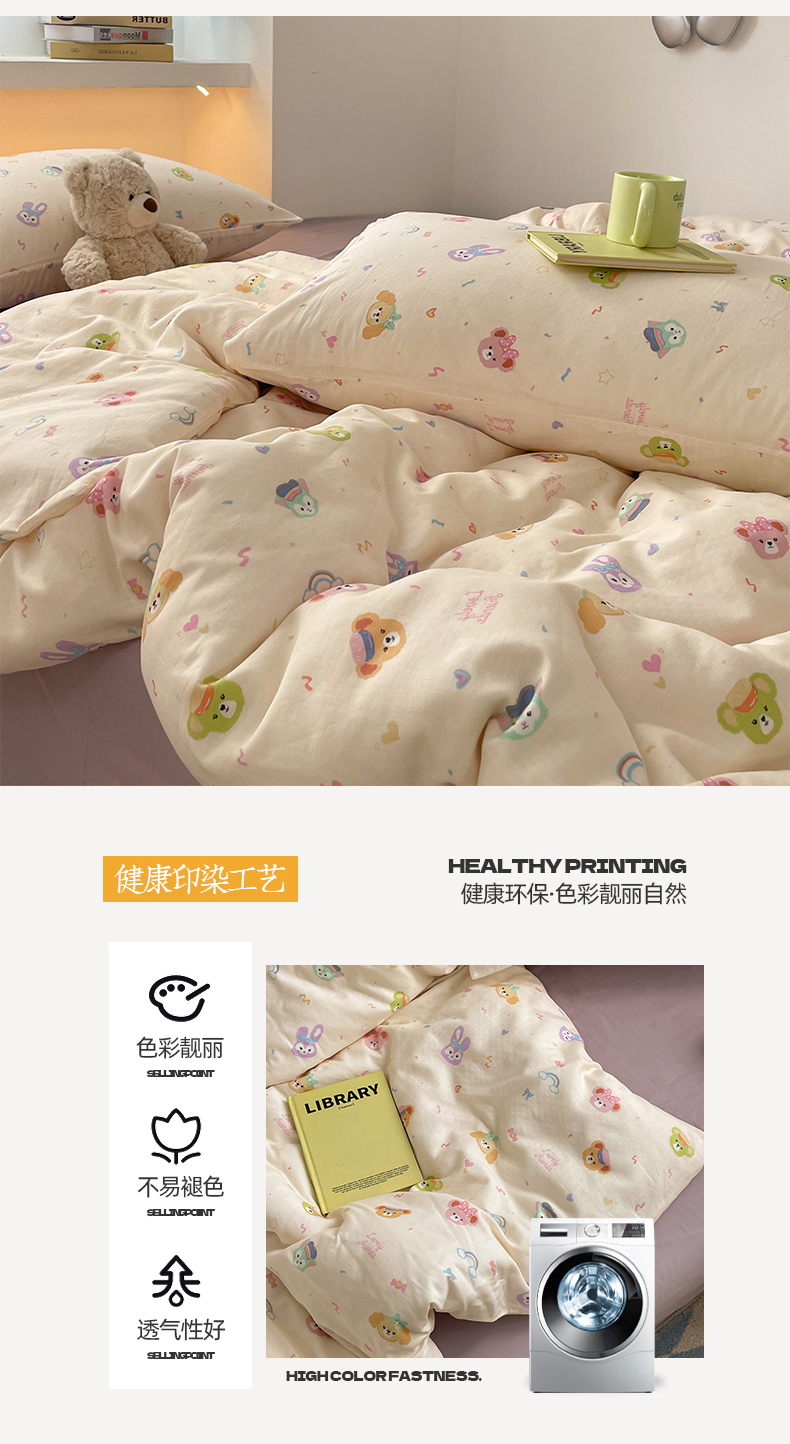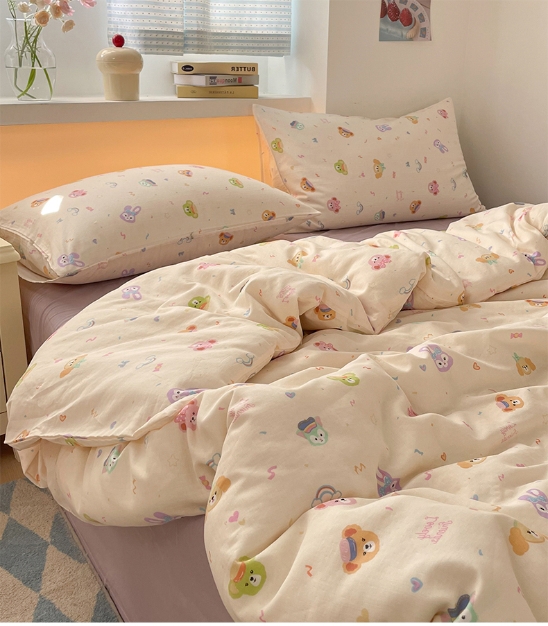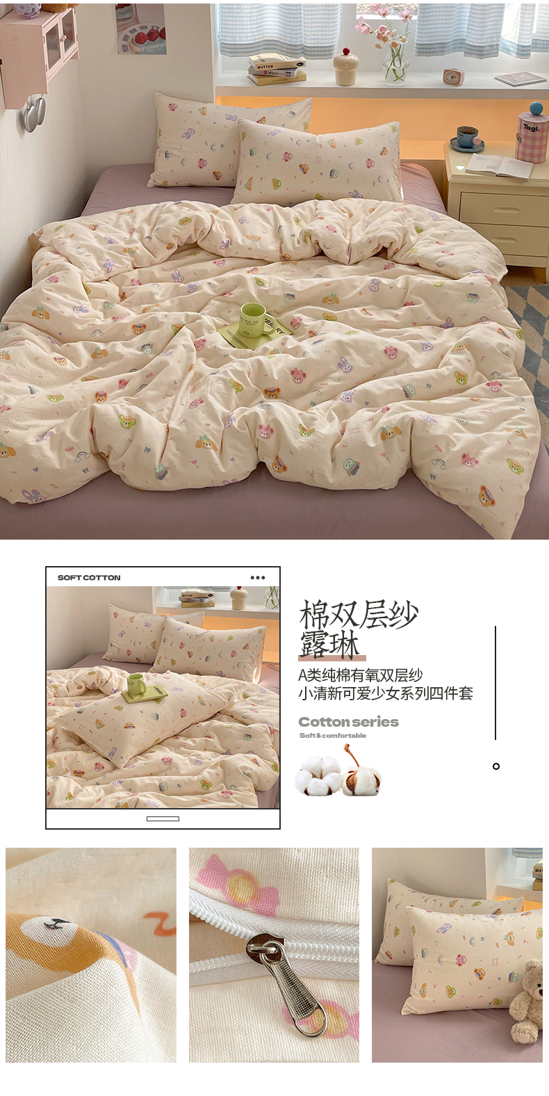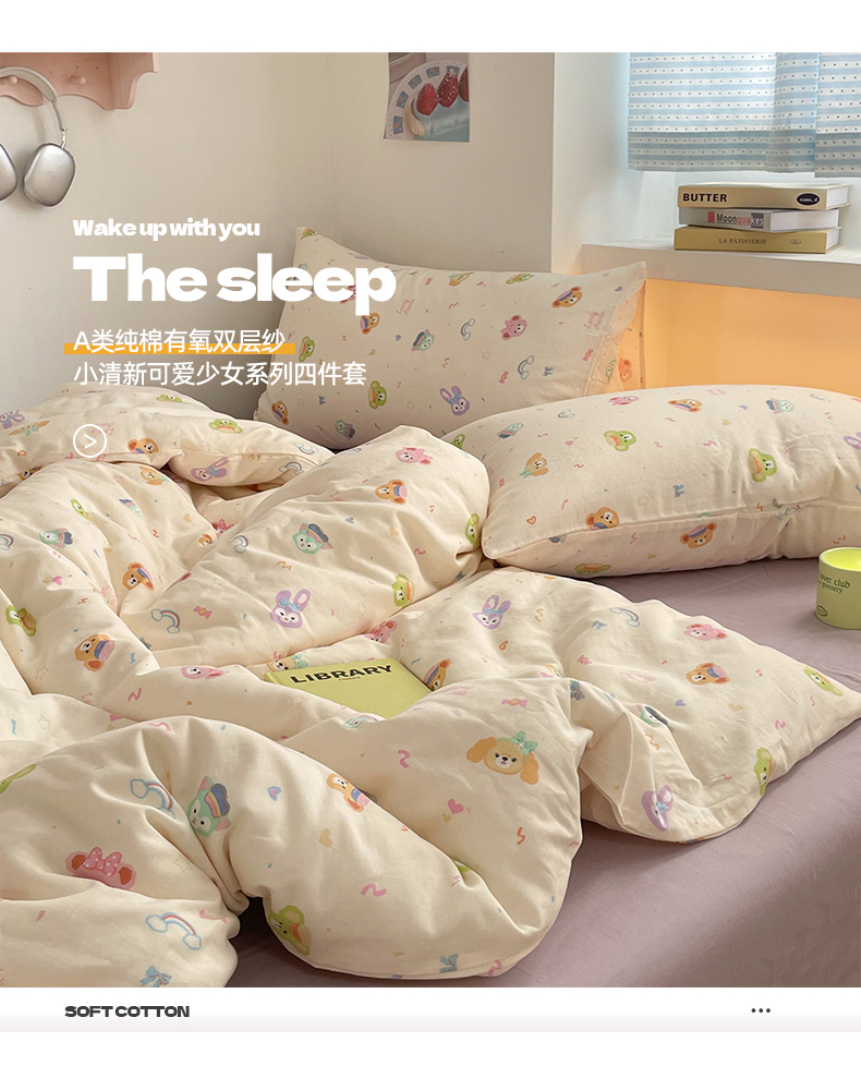 桃子家居2025新款A类纯棉有氧双层纱小清新可爱少女系列四件套 棉双层纱-露琳