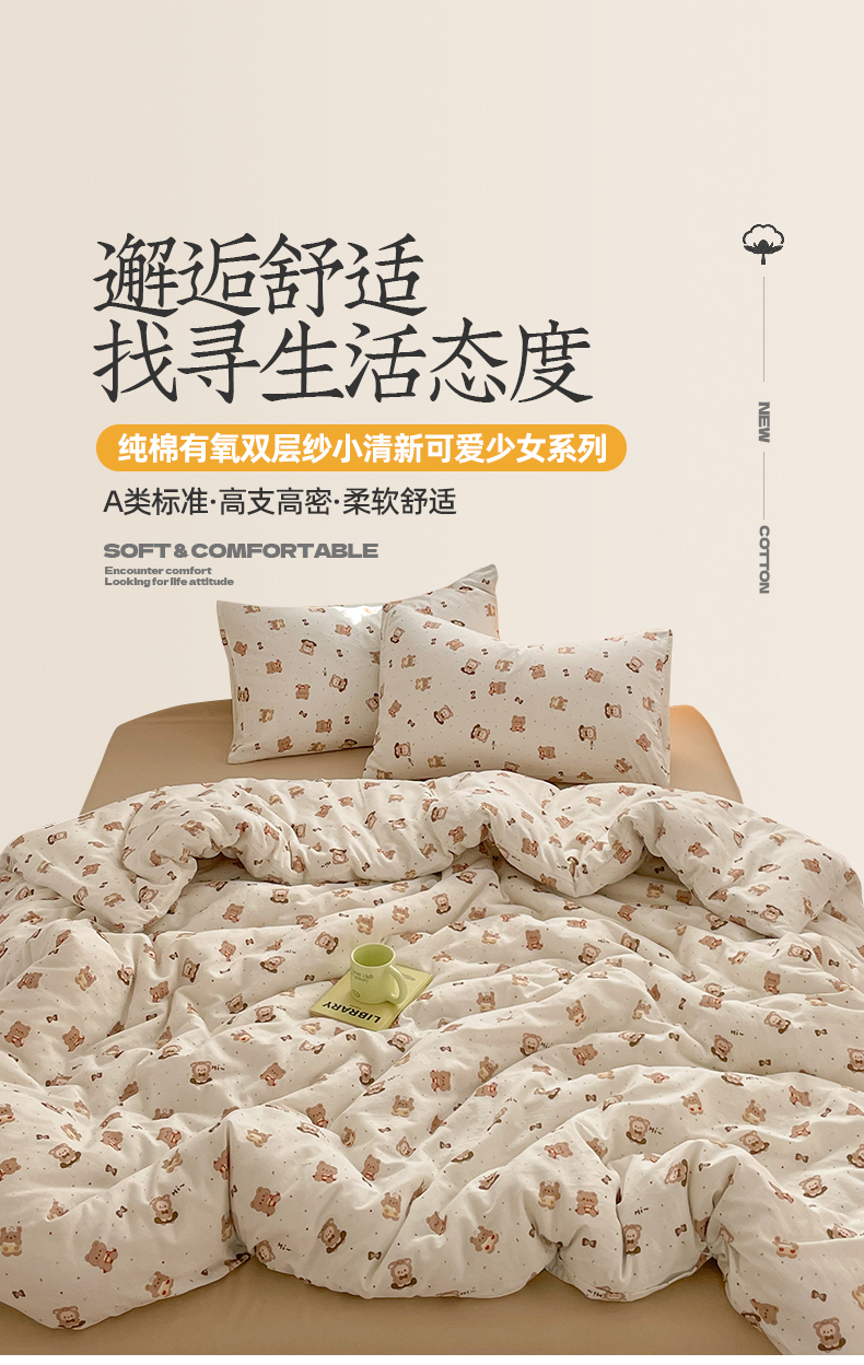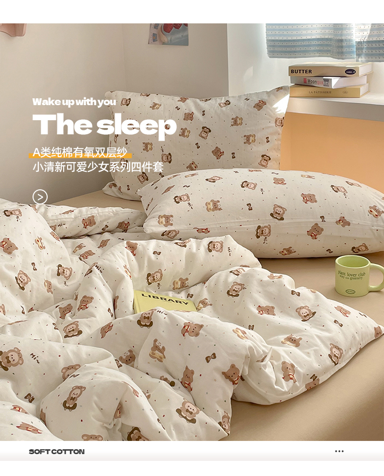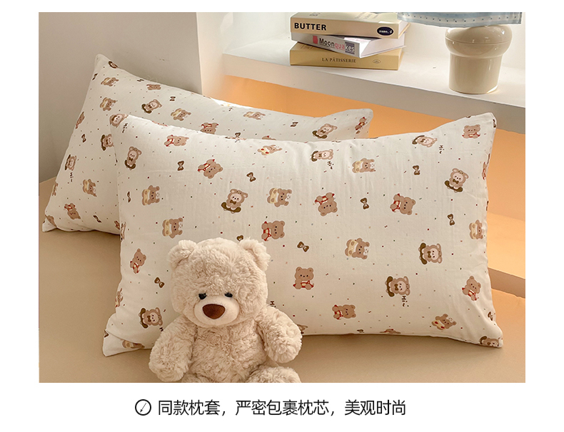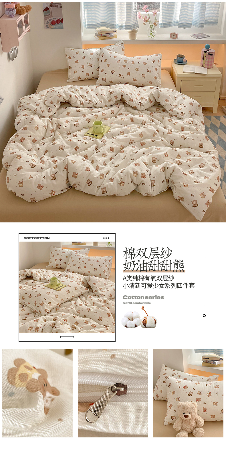 当前位置: 91家纺网 > 商品网购 > 床品套件 > 四件套 > 全棉普通四件套 > 桃子家居2025新款A类纯棉有氧双层纱小清新可爱少女系列四件套 棉双层纱-奶油甜甜熊