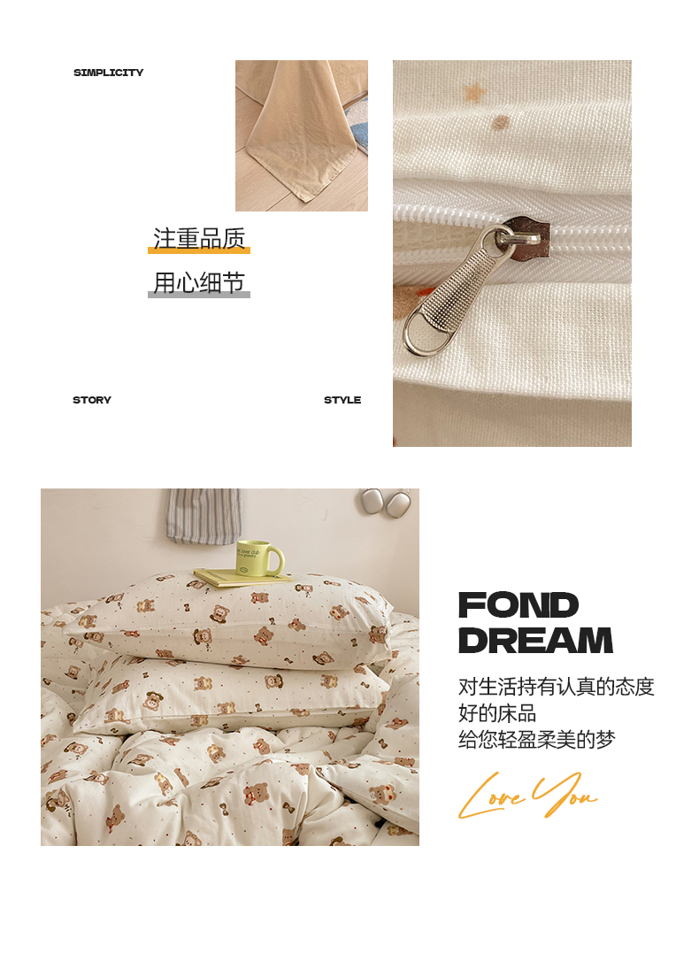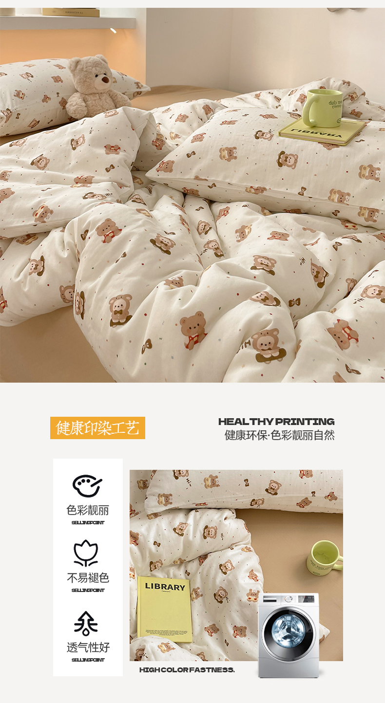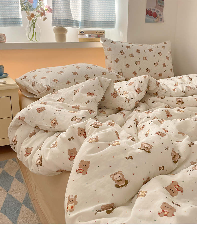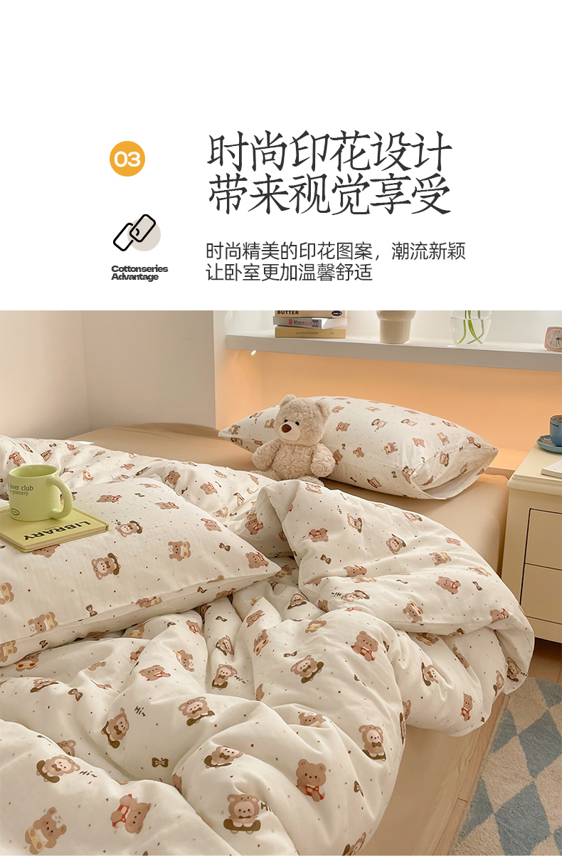 当前位置: 91家纺网 > 商品网购 > 床品套件 > 四件套 > 全棉普通四件套 > 桃子家居2025新款A类纯棉有氧双层纱小清新可爱少女系列四件套 棉双层纱-奶油甜甜熊