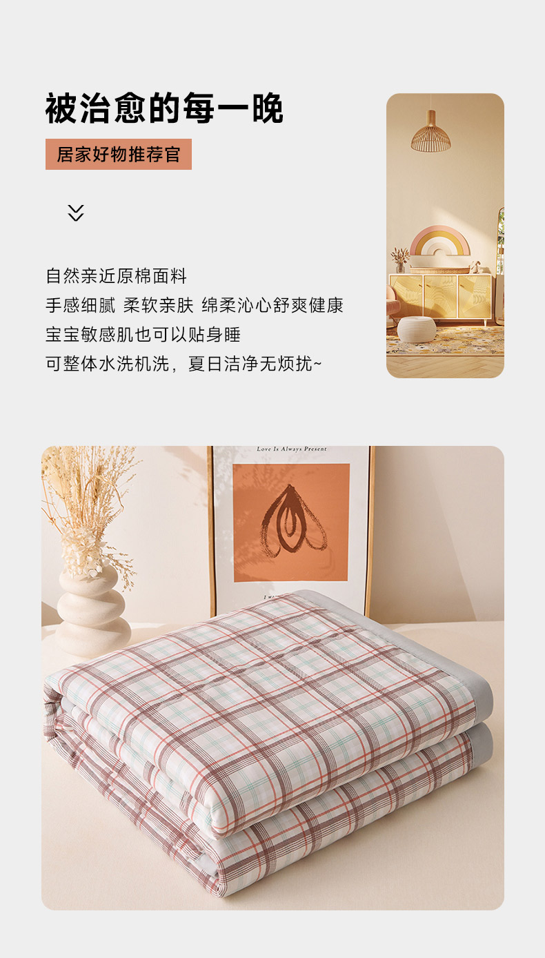 商品名称:艾兜坊 2025新款亲肤原棉夏被 6豆沙格