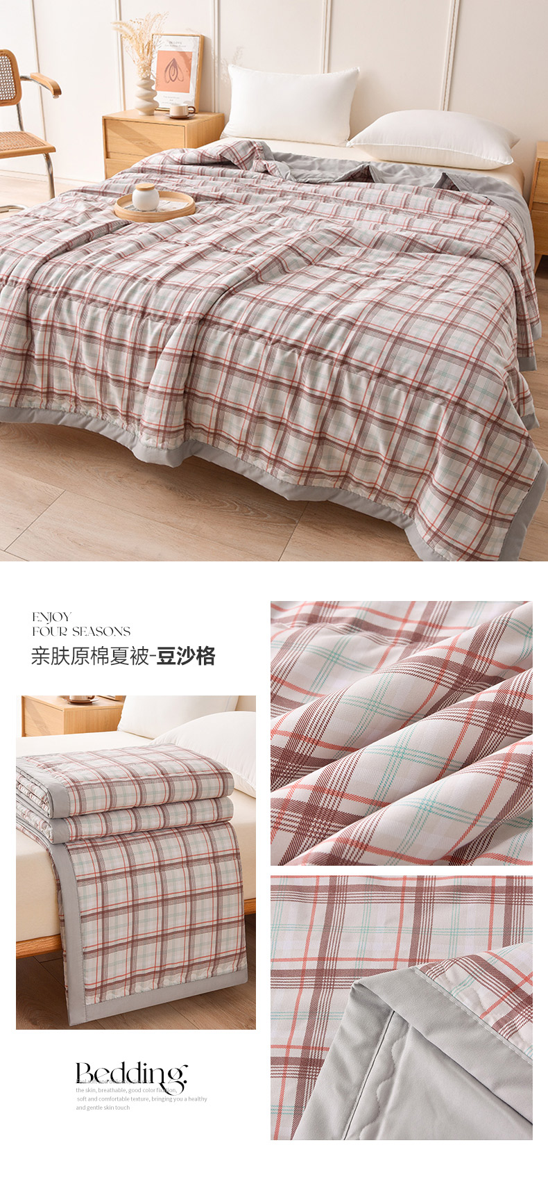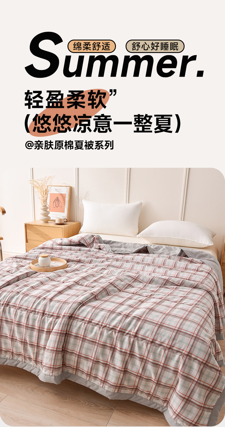 艾兜坊 2025新款亲肤原棉夏被 6豆沙格