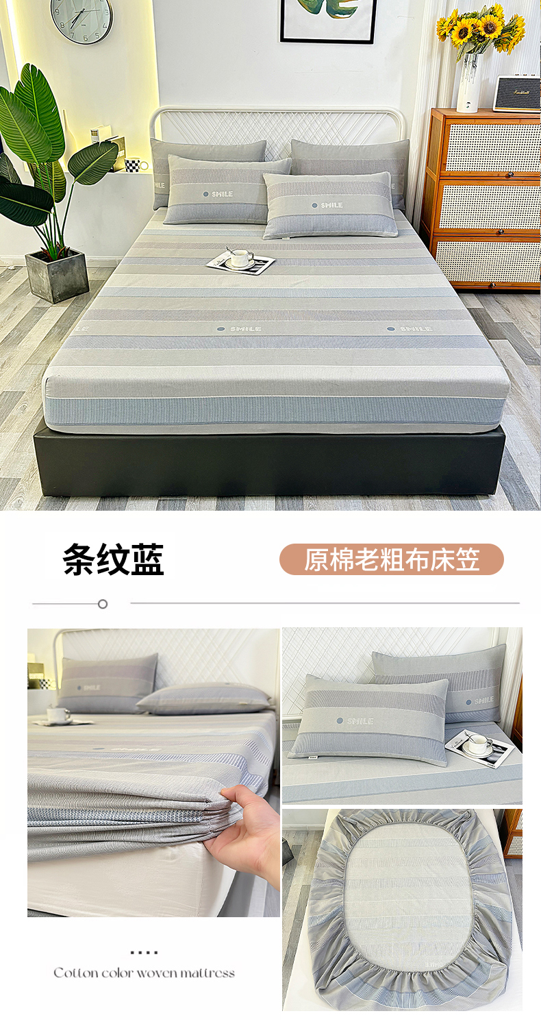 • 91家纺网 家纺一手货源 找家纺 伊而梦蚊帐 2025新款原棉老粗布床笠 条纹蓝