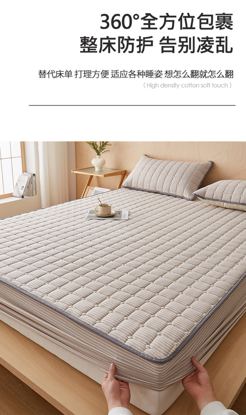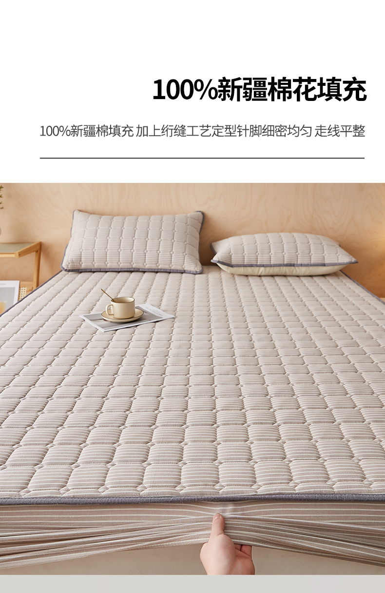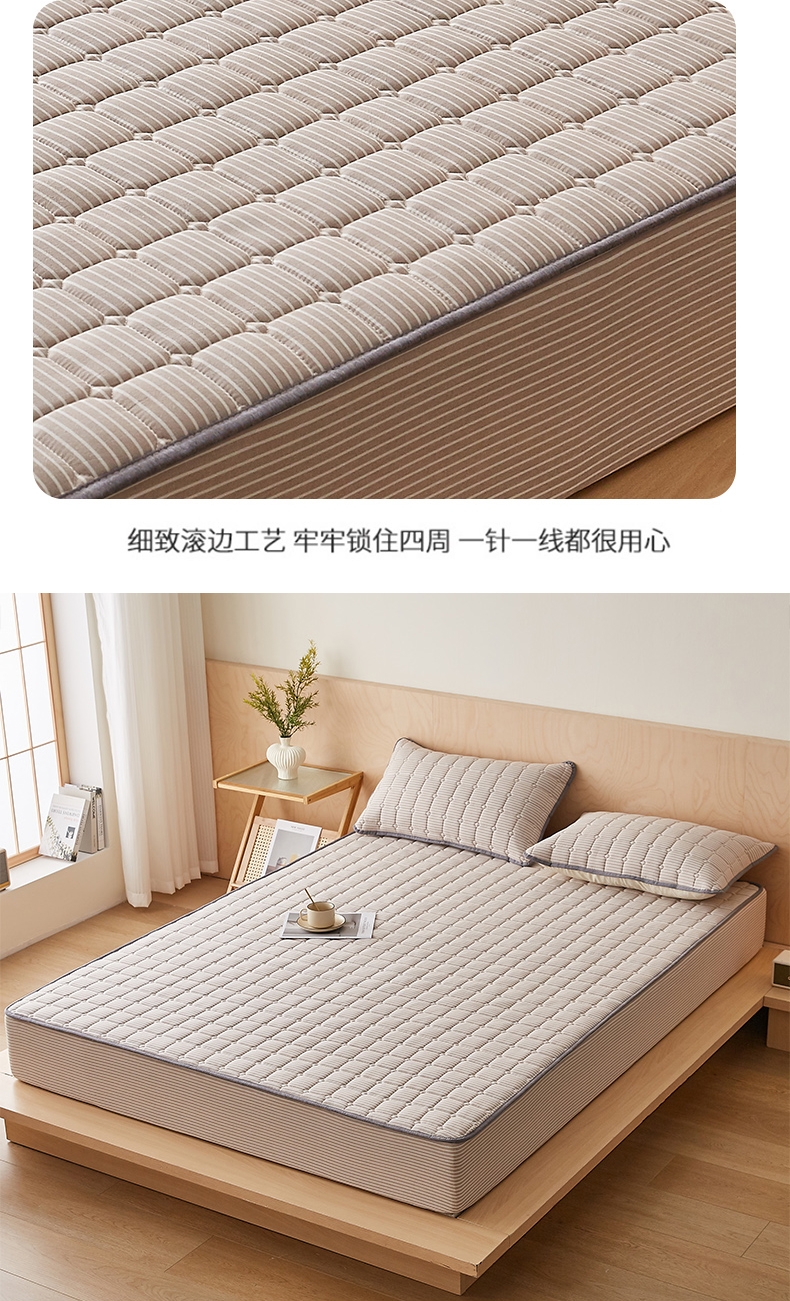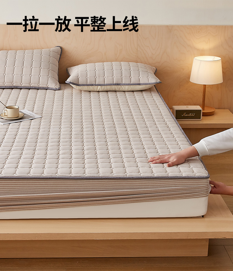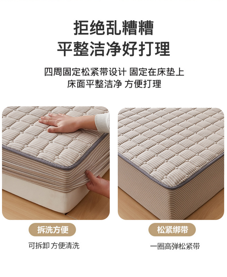 • 91家纺网 家纺一手货源 找家纺 暖季家纺 2025新款水洗棉夹棉床笠无印风棉花款 棉花床笠咖细条
