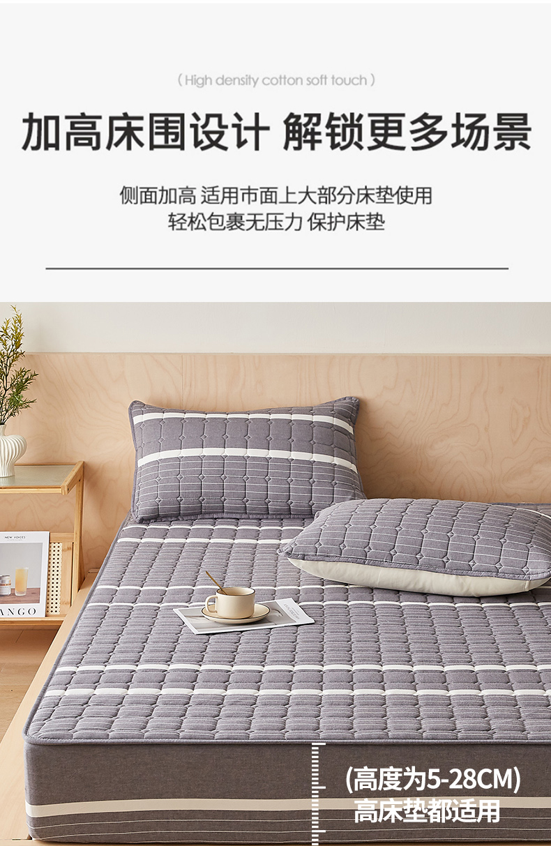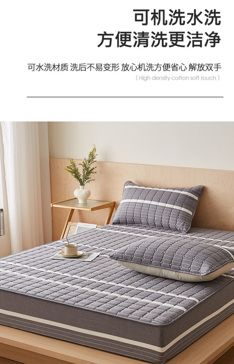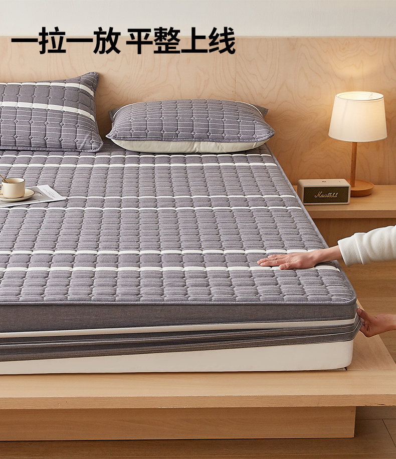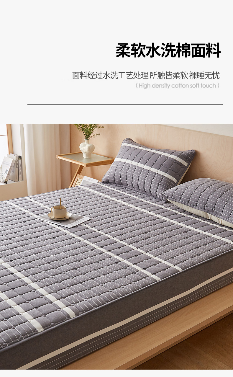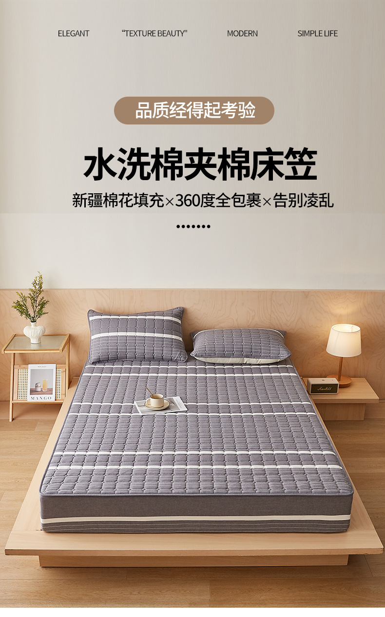 • 91家纺网 家纺一手货源 找家纺 暖季家纺 2025新款水洗棉夹棉床笠无印风棉花款 棉花床笠英伦灰