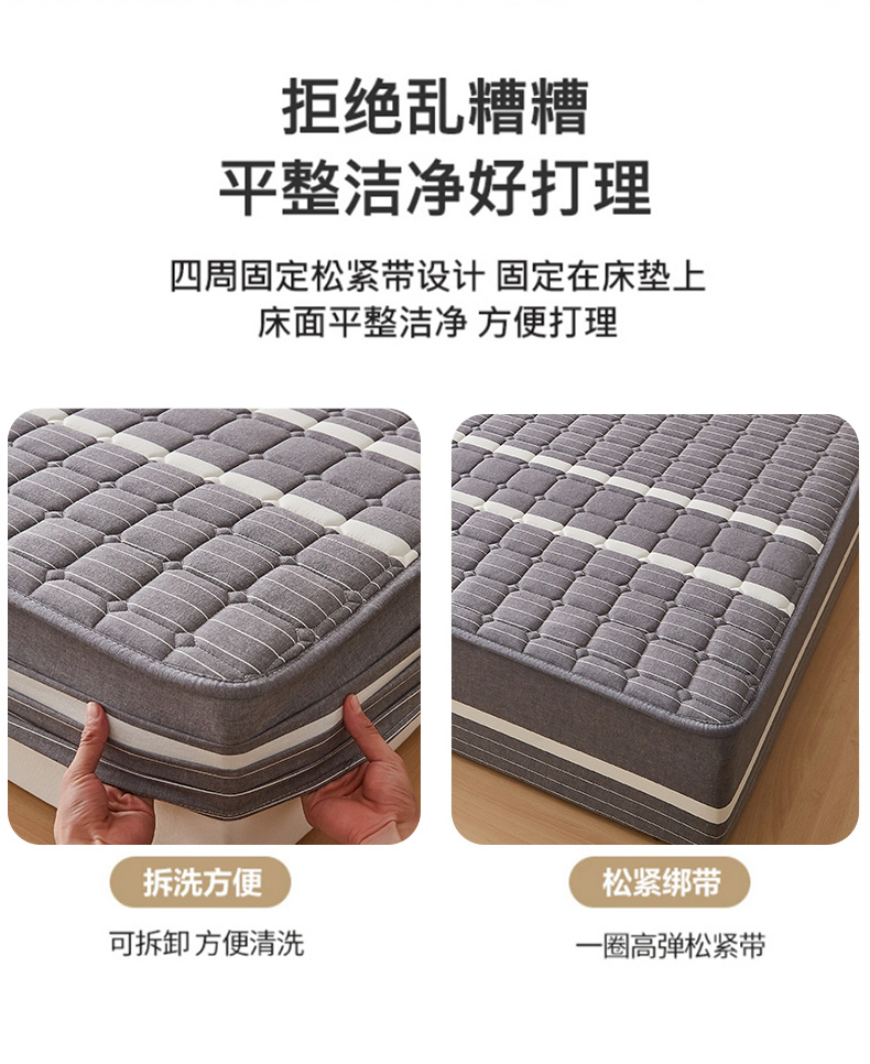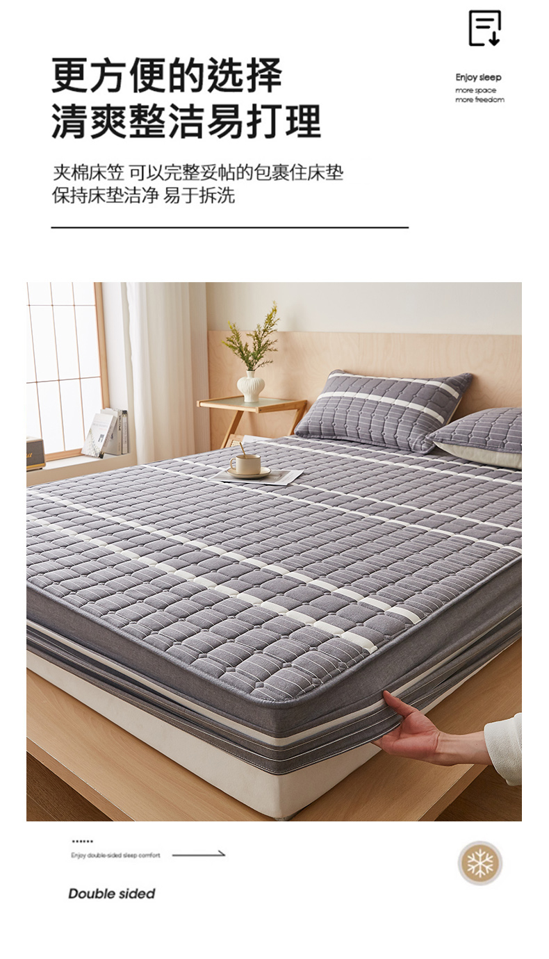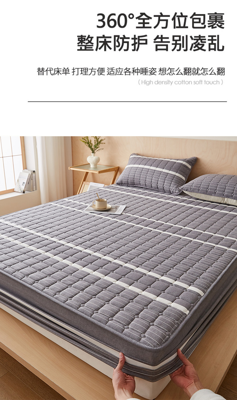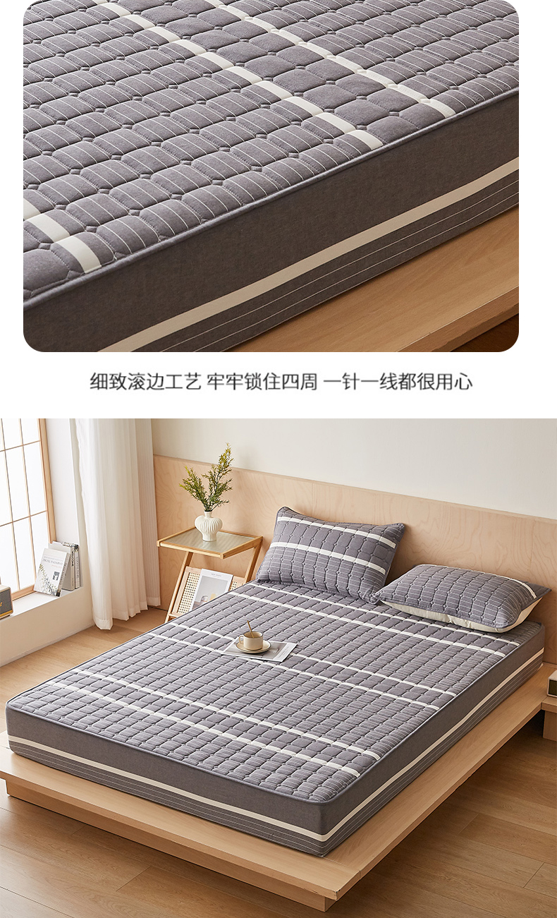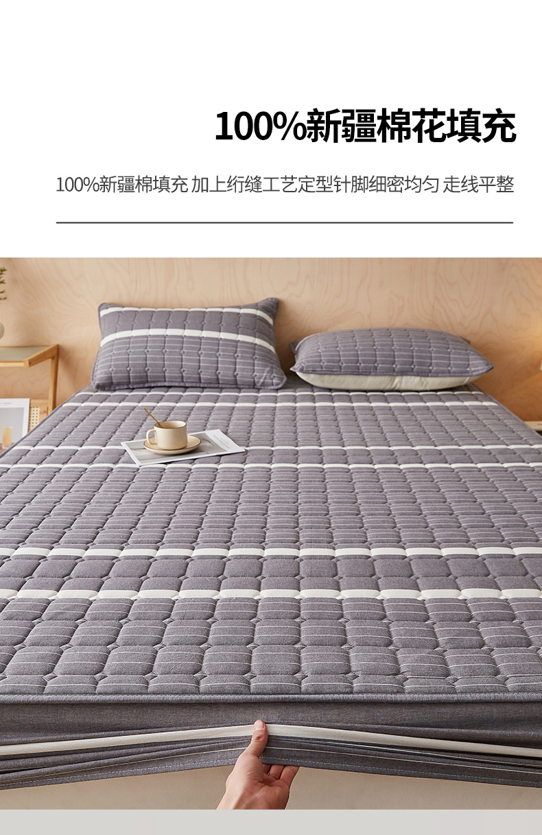 • 91家纺网 家纺一手货源 找家纺 暖季家纺 2025新款水洗棉夹棉床笠无印风棉花款 棉花床笠英伦灰