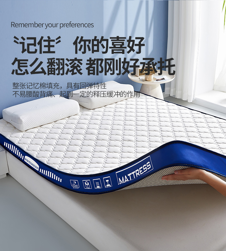 (总)暖季家纺 2025新款零压深睡眠学生记忆棉针织棉提花床垫,凌悦,清韵,云逸,素致